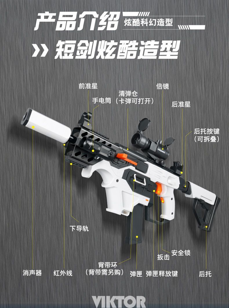 短剑维克托冲锋枪电动速发软弹枪森柏龙儿童玩具枪男孩发射器仿真