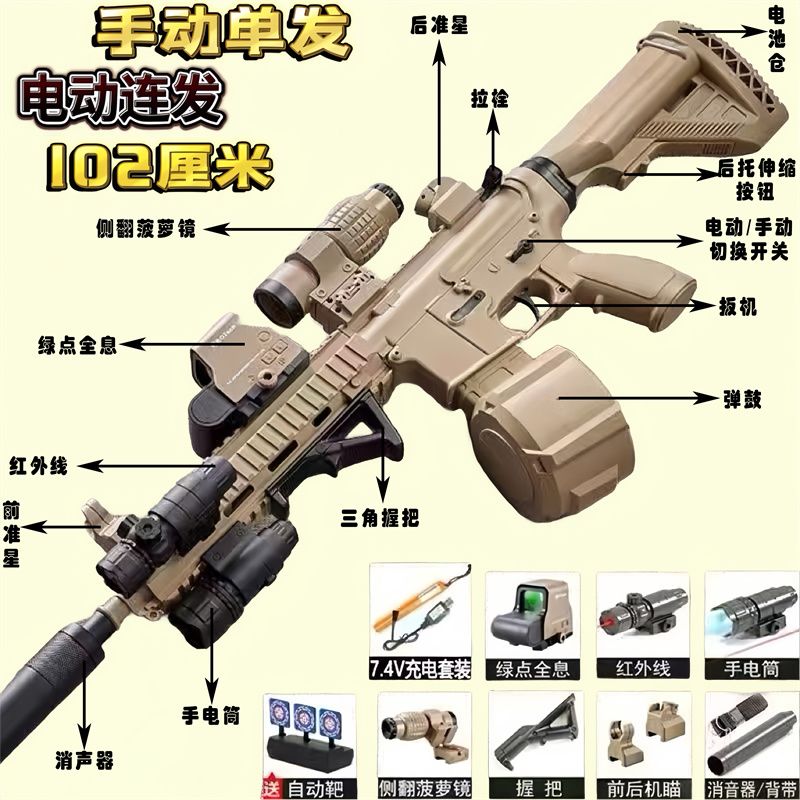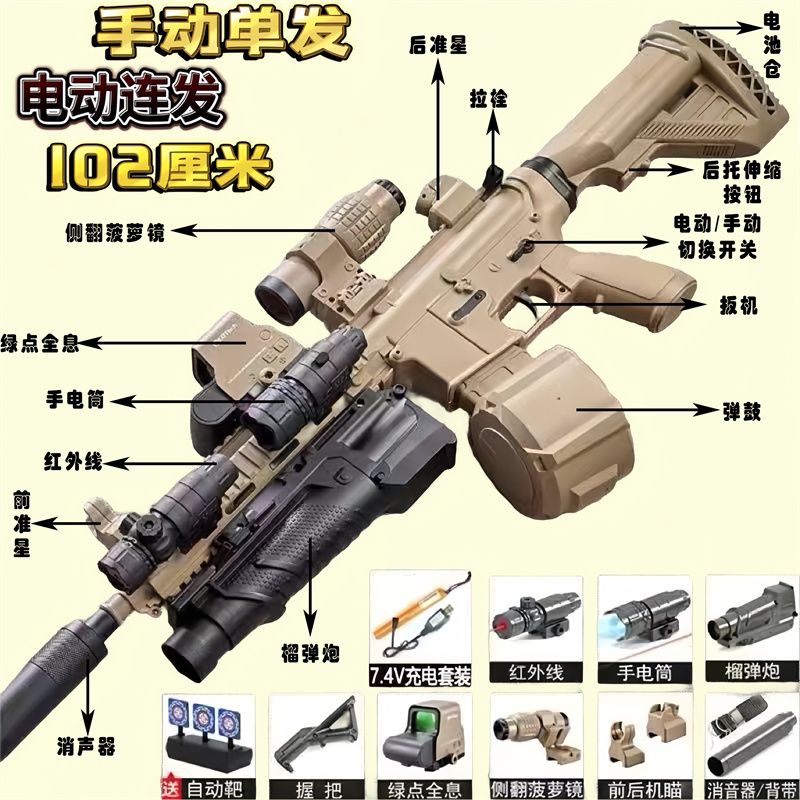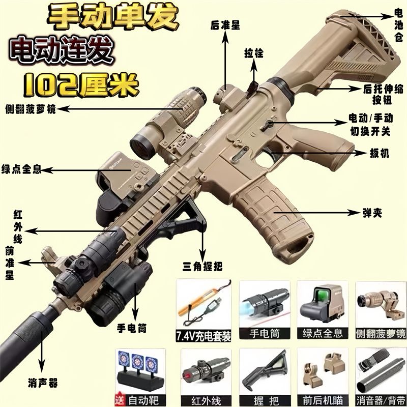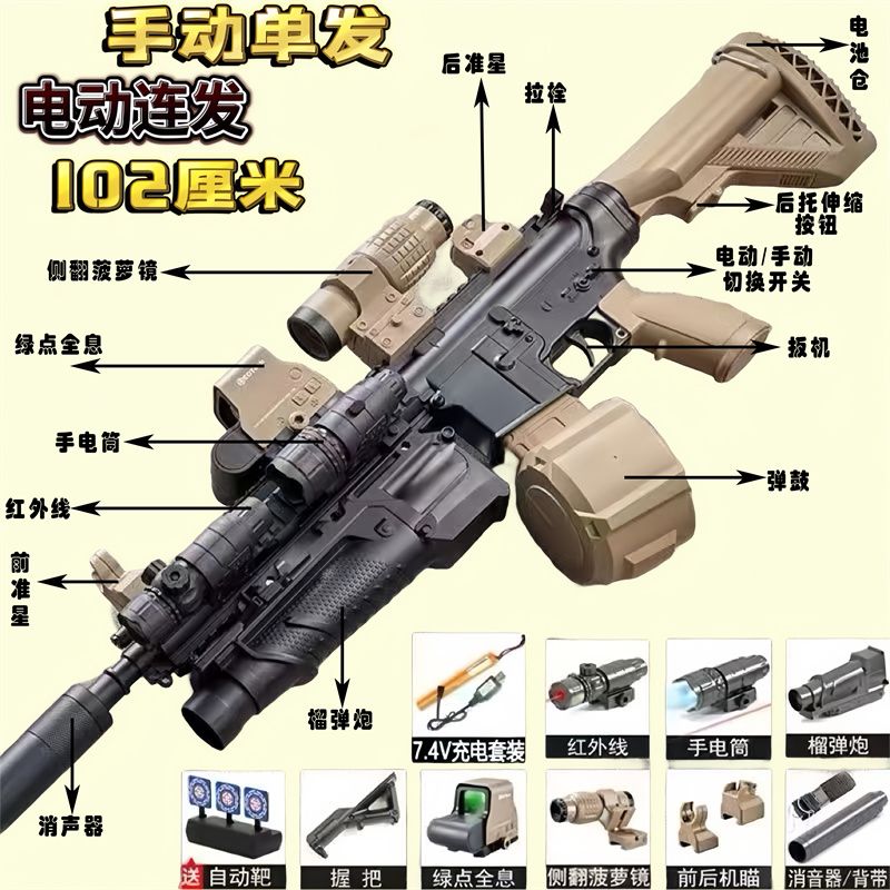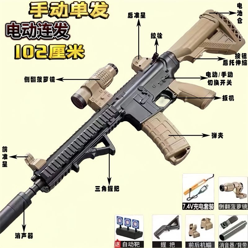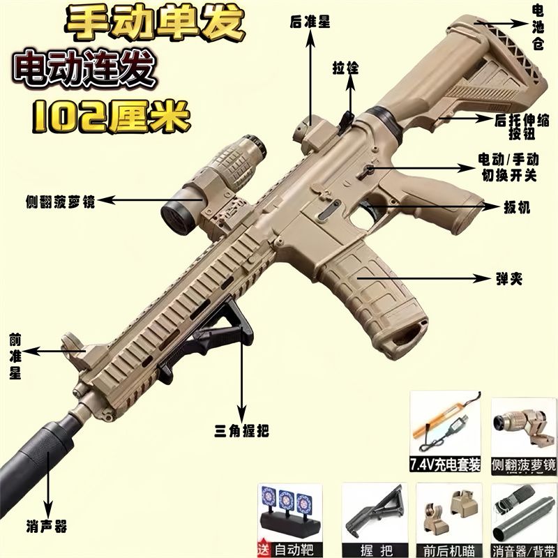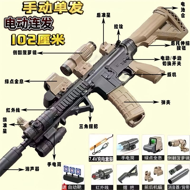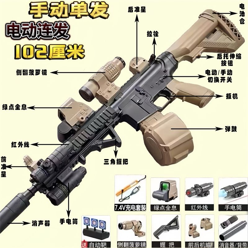 【新年礼物】手自一体m416儿童玩具自动连发突击步抢男孩吃鸡游戏