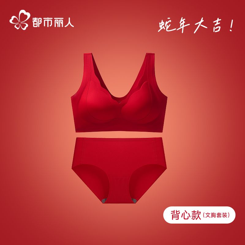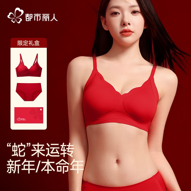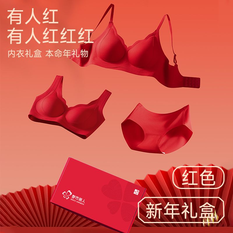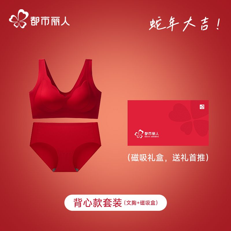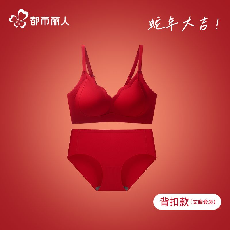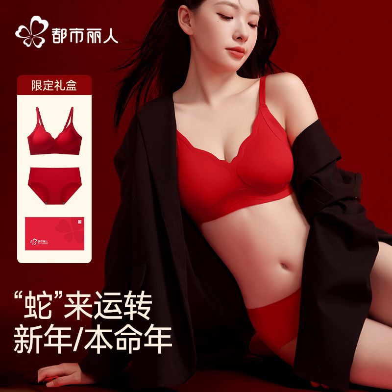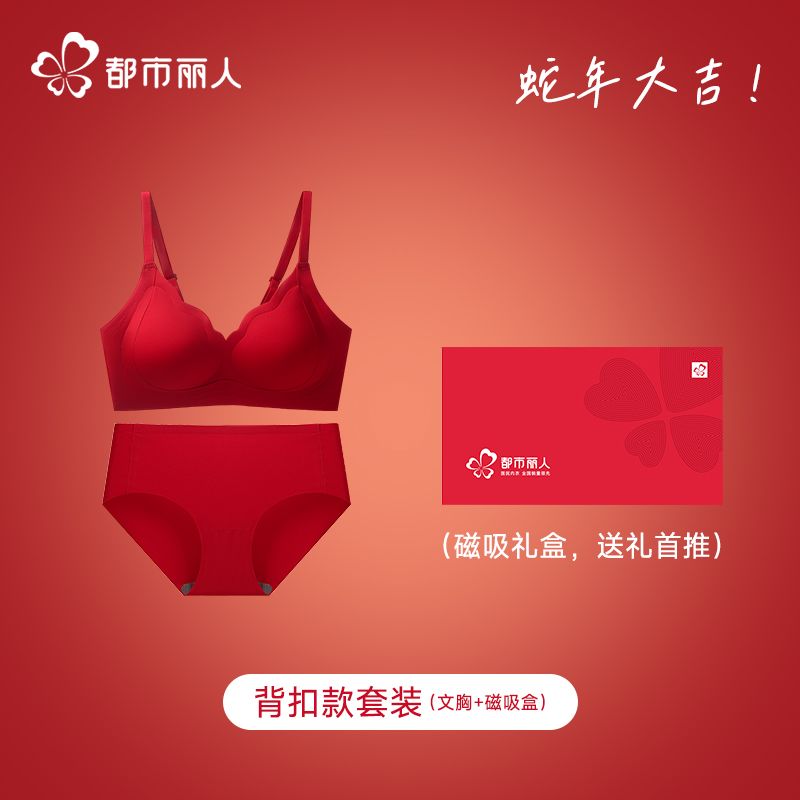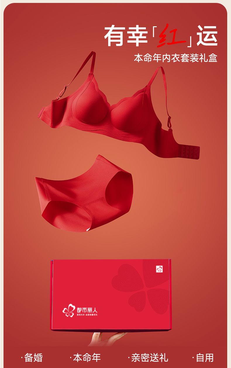 都市丽人本命年红色内衣套装女结婚新娘送礼小胸聚拢文胸罩礼盒
