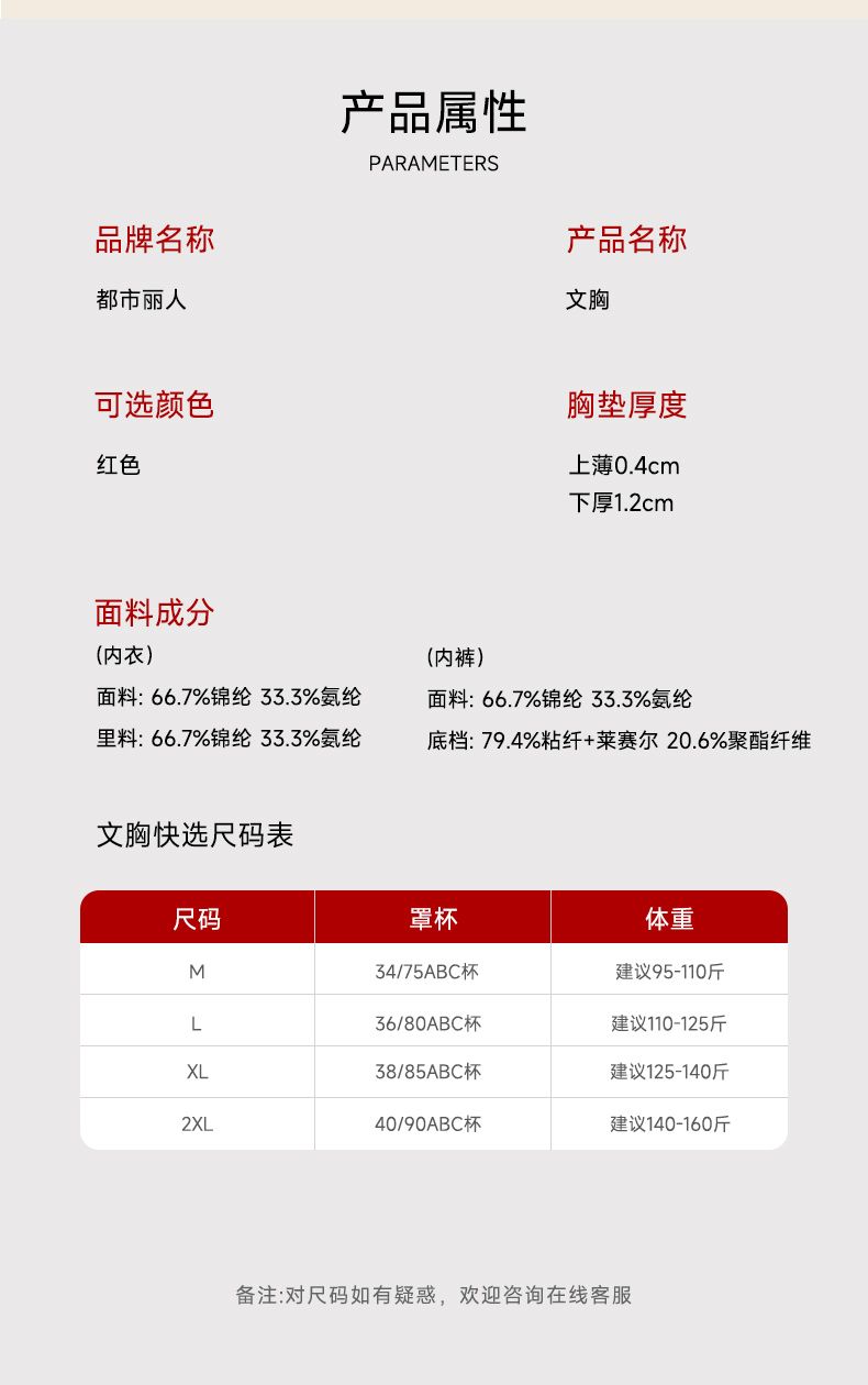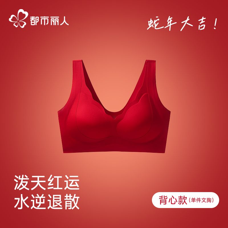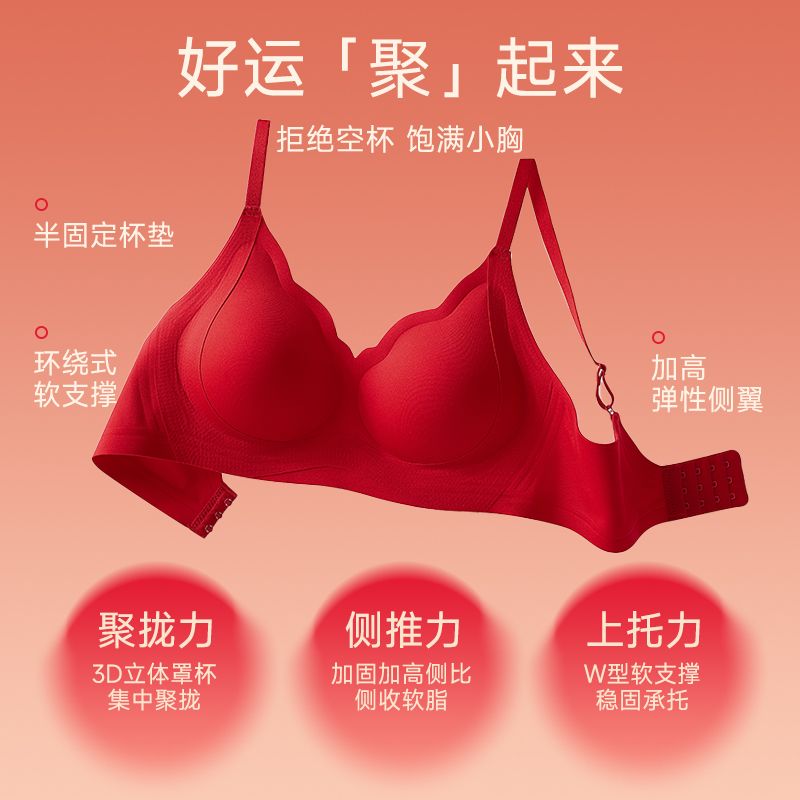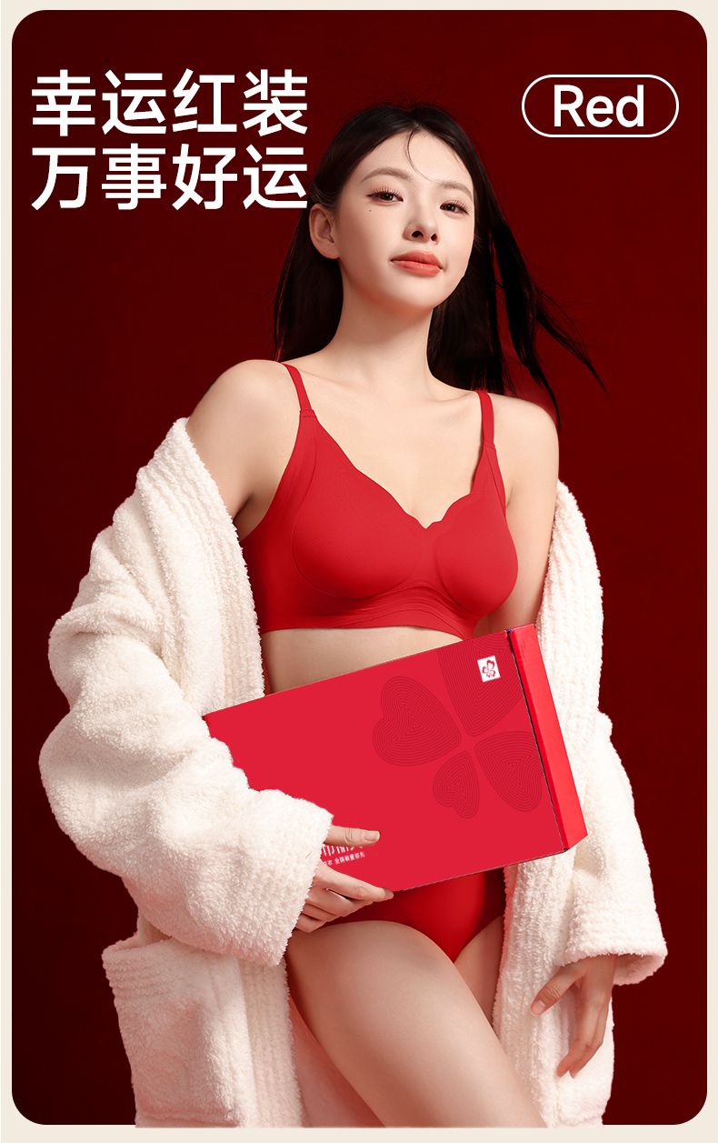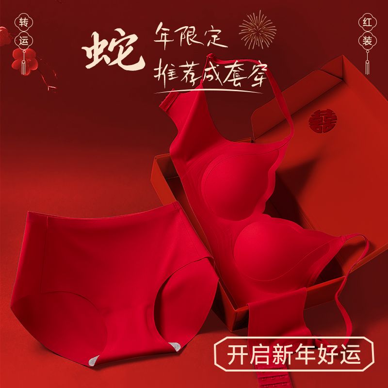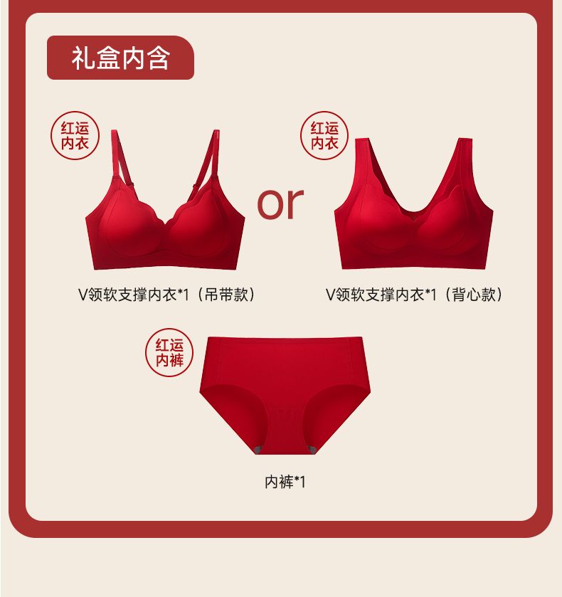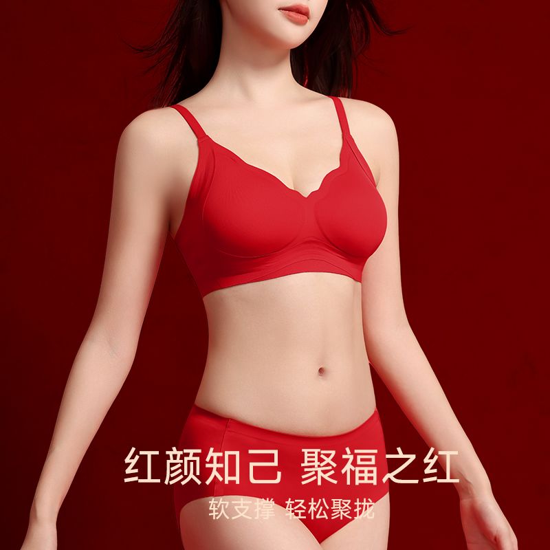 都市丽人本命年红色内衣套装女结婚新娘送礼小胸聚拢文胸罩礼盒