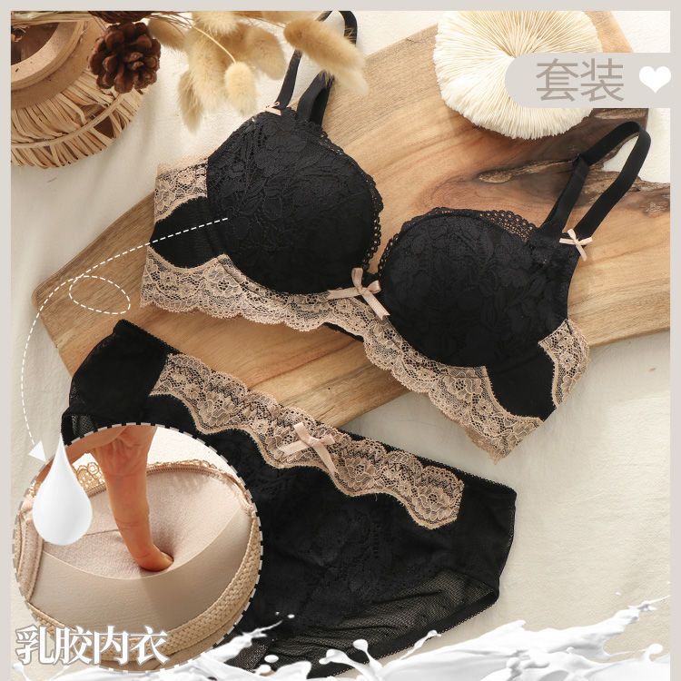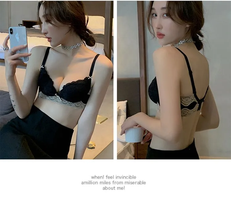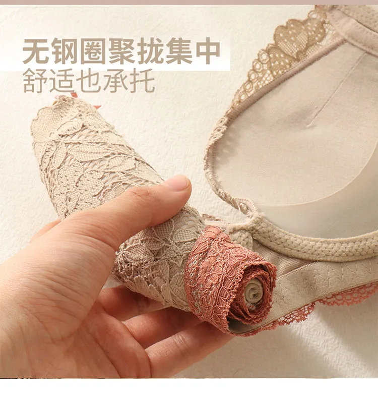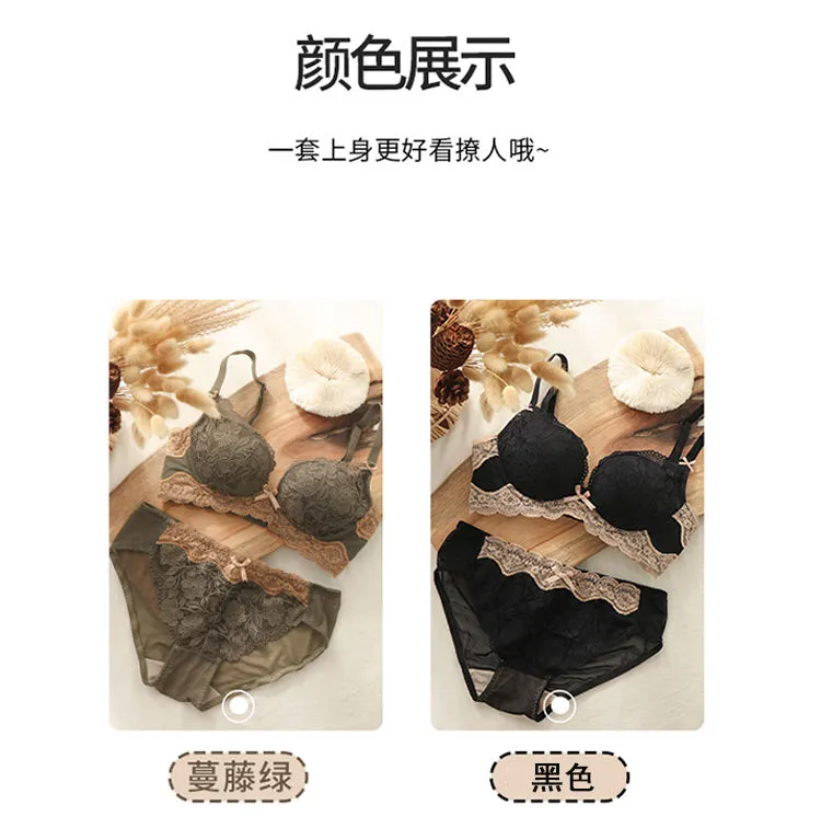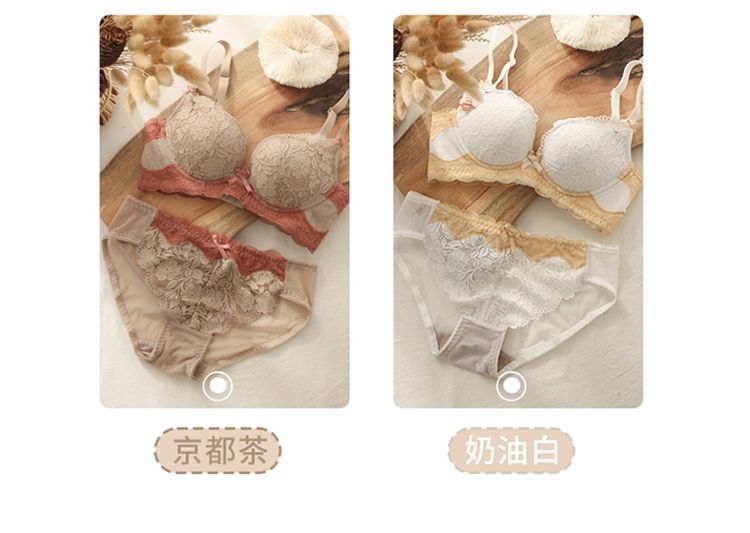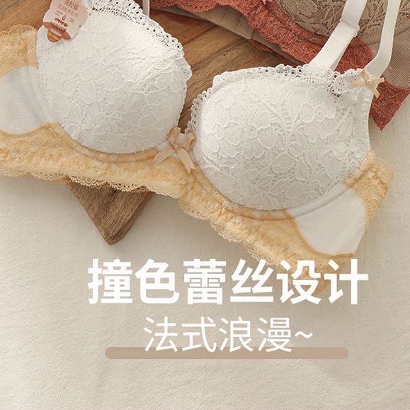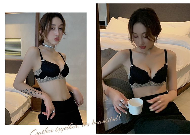 美容院专用超辣女士内衣聚拢性感防垂无钢圈蕾丝边调整型文胸套装
