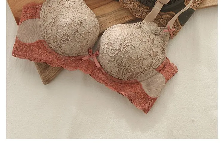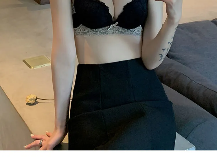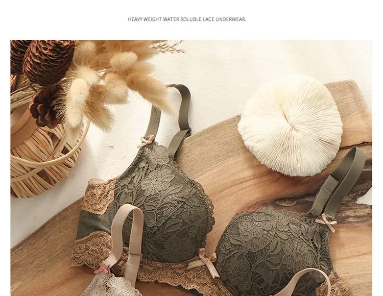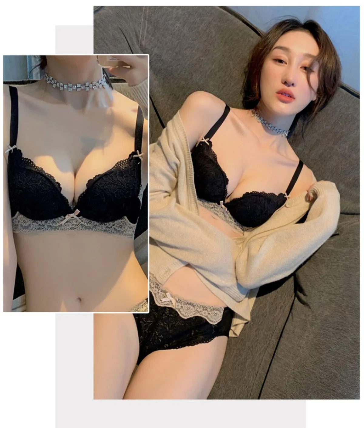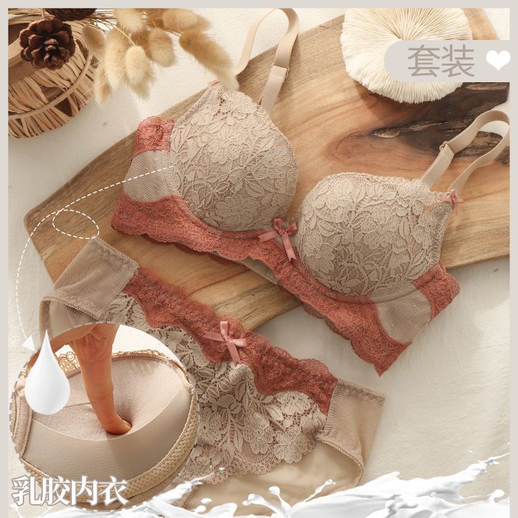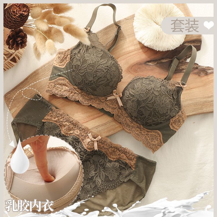 美容院专用超辣女士内衣聚拢性感防垂无钢圈蕾丝边调整型文胸套装