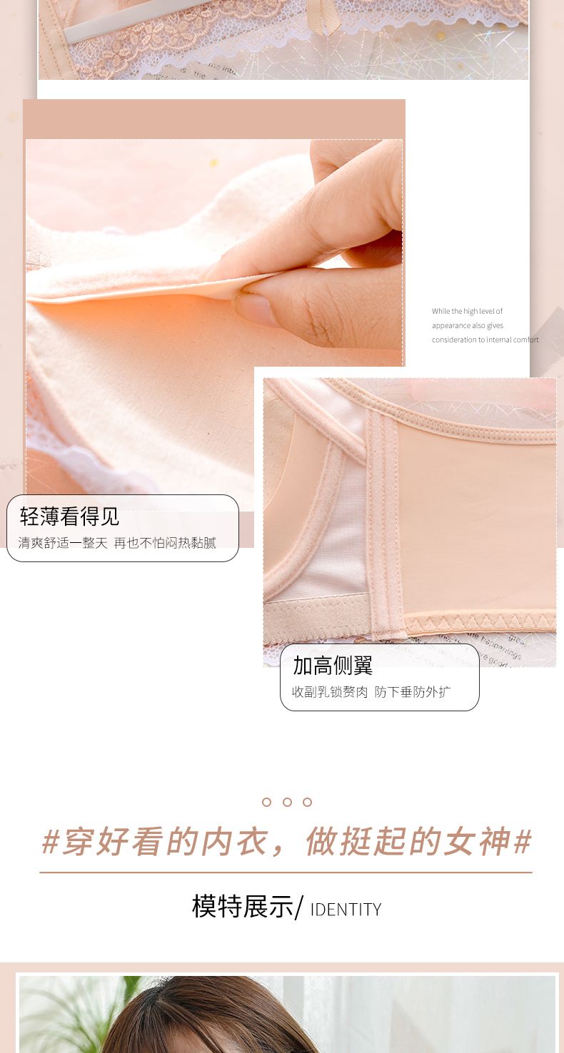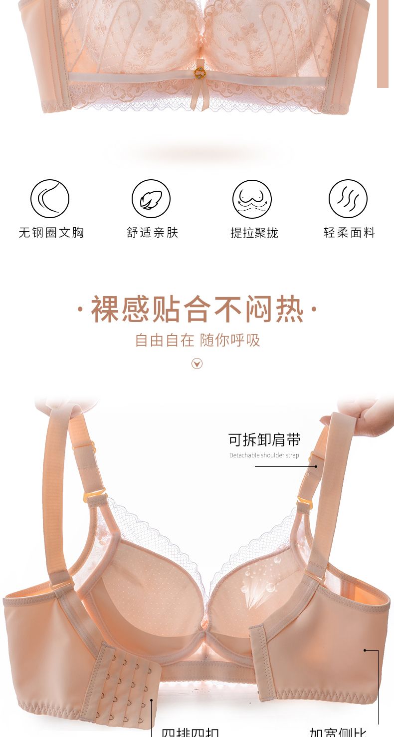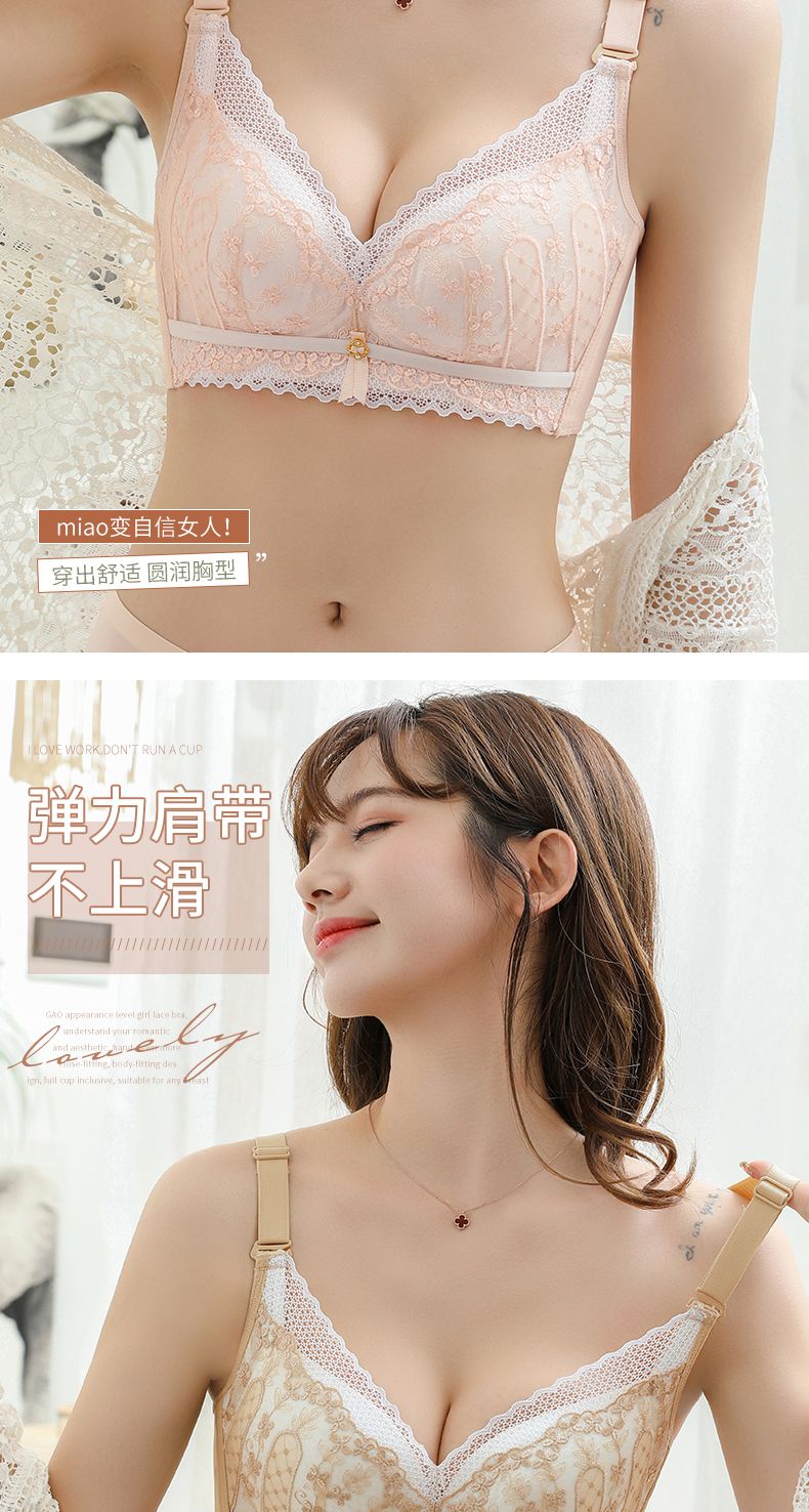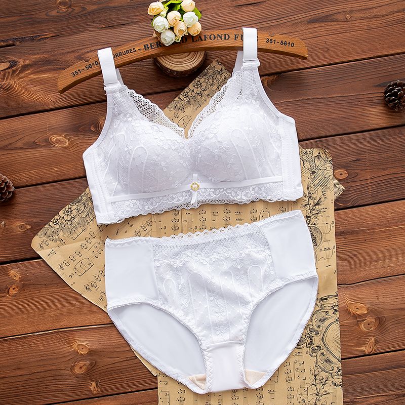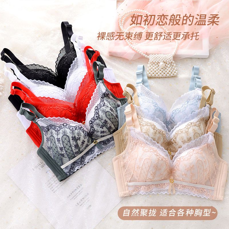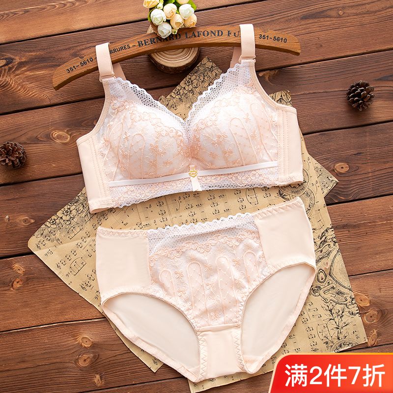 无磁内衣内裤套装女中厚薄款蕾丝无钢圈聚拢调整型文胸小胸罩上托
