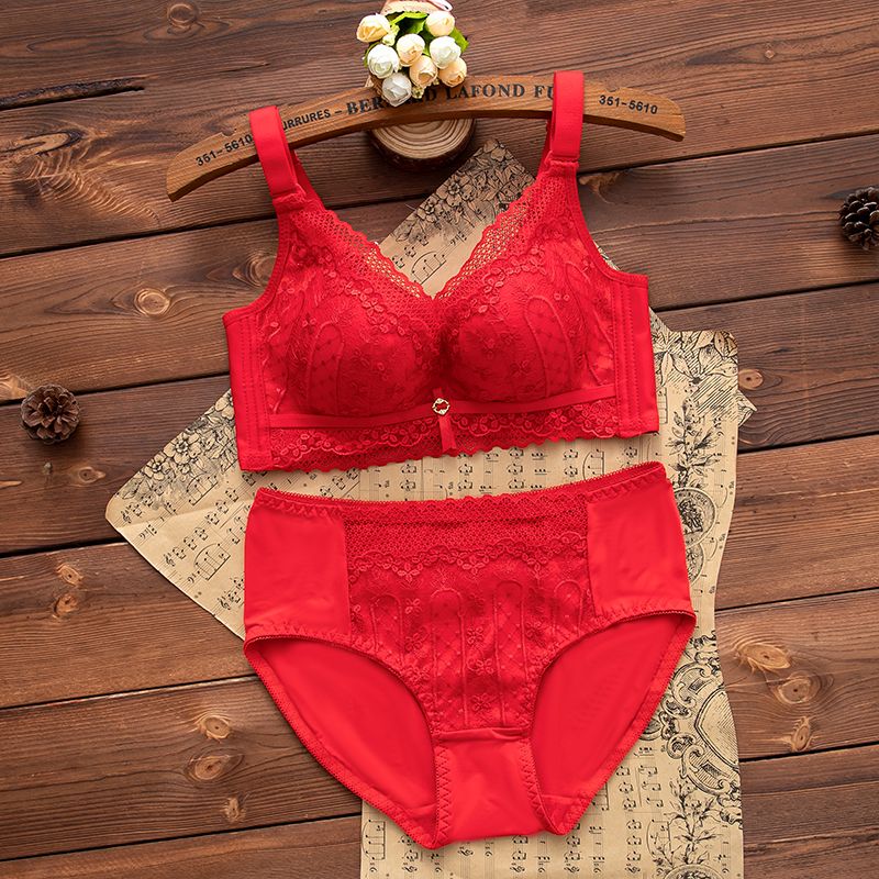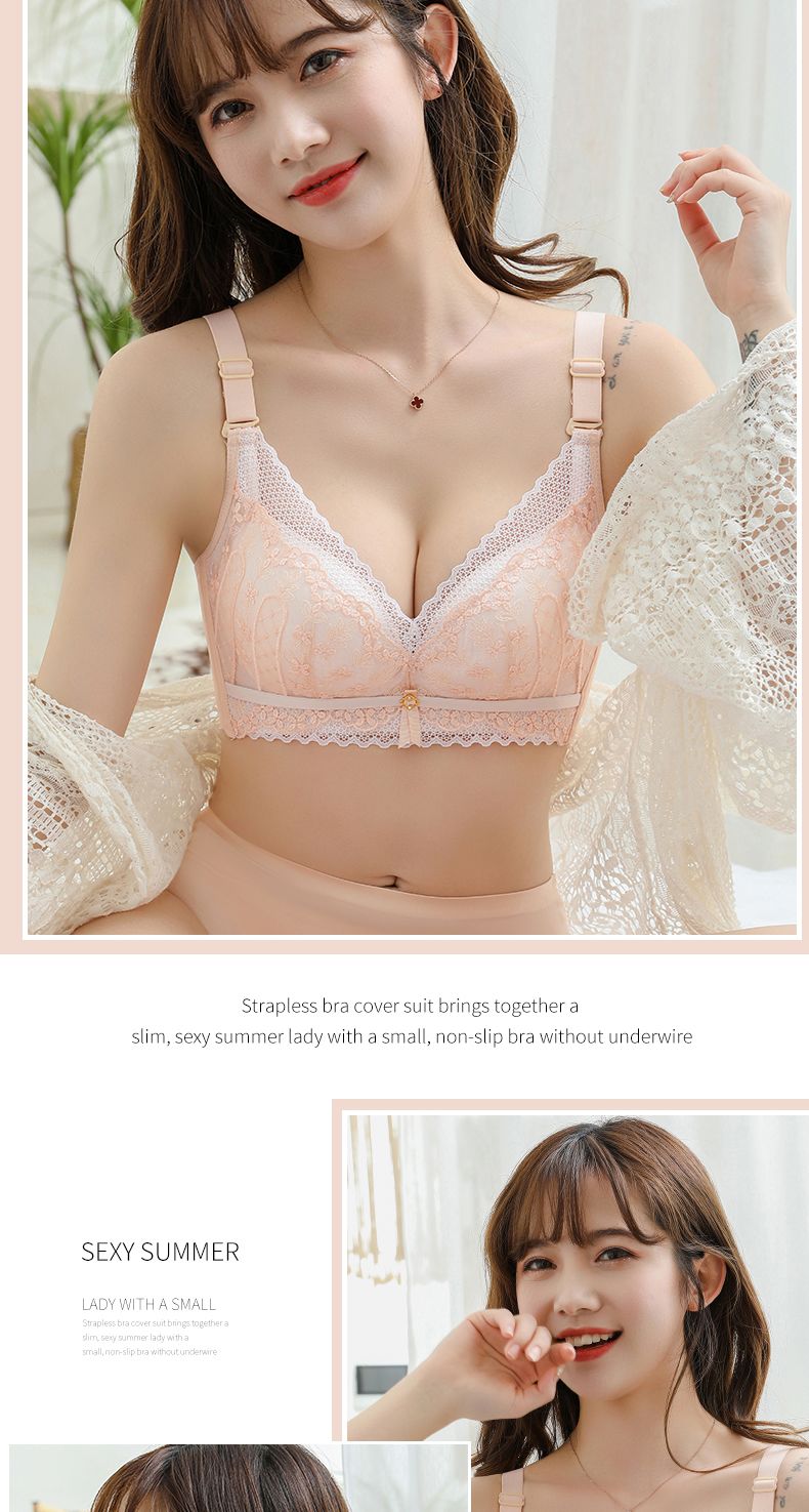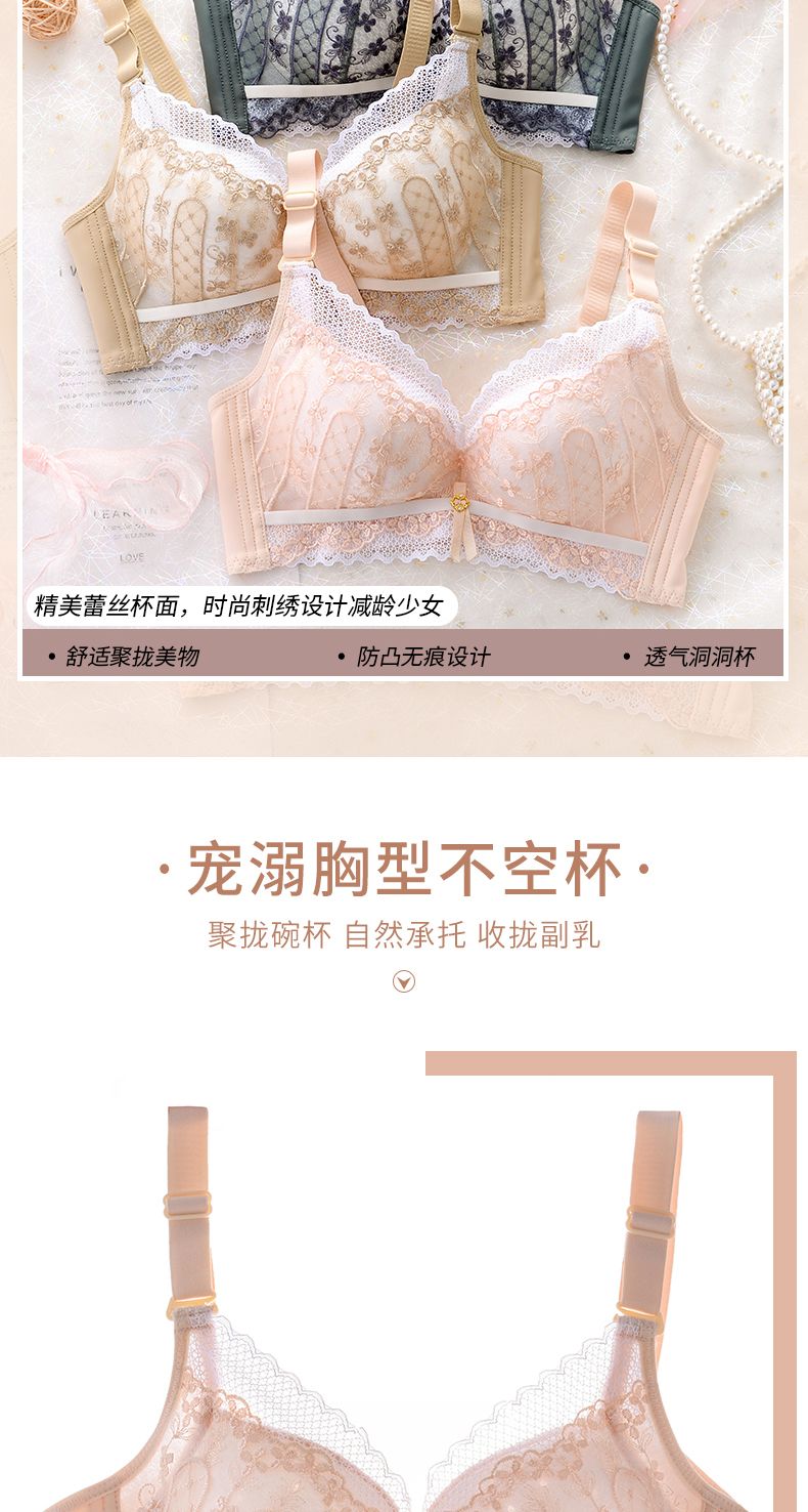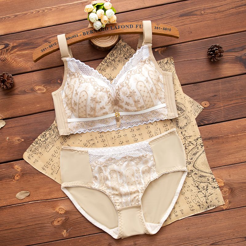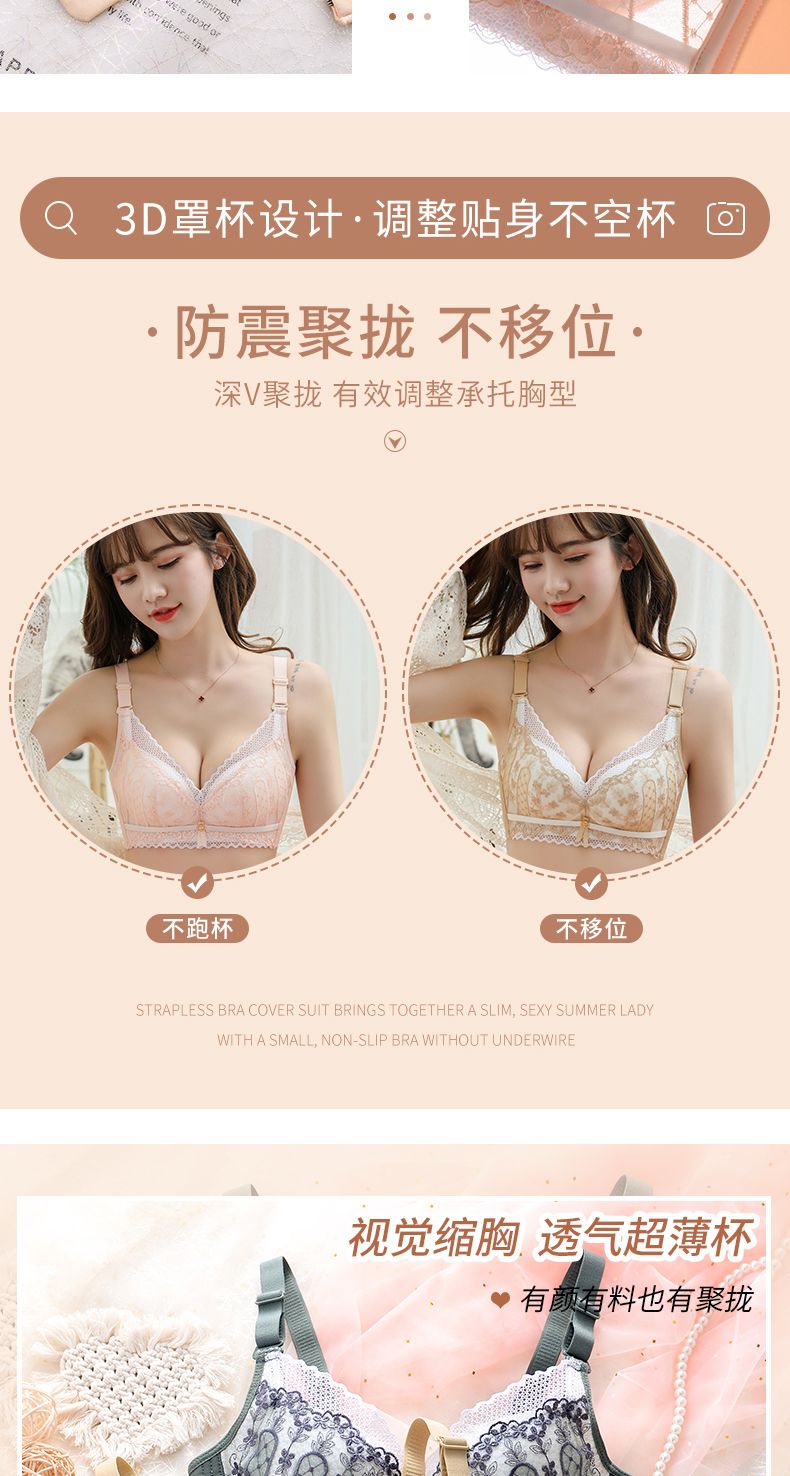 无磁内衣内裤套装女中厚薄款蕾丝无钢圈聚拢调整型文胸小胸罩上托
