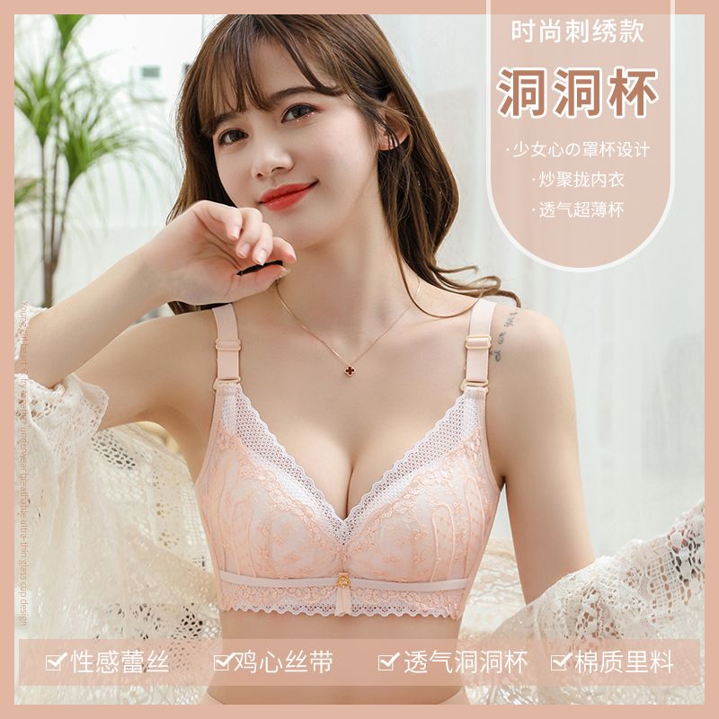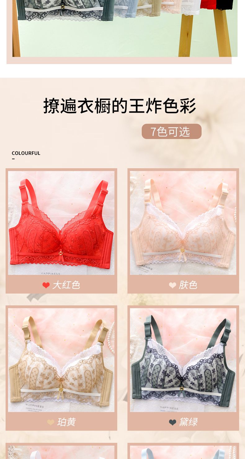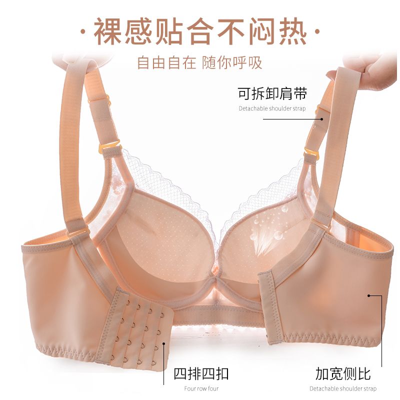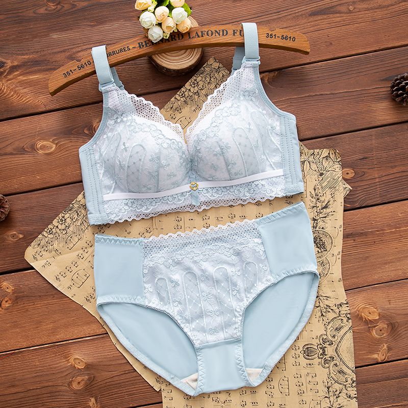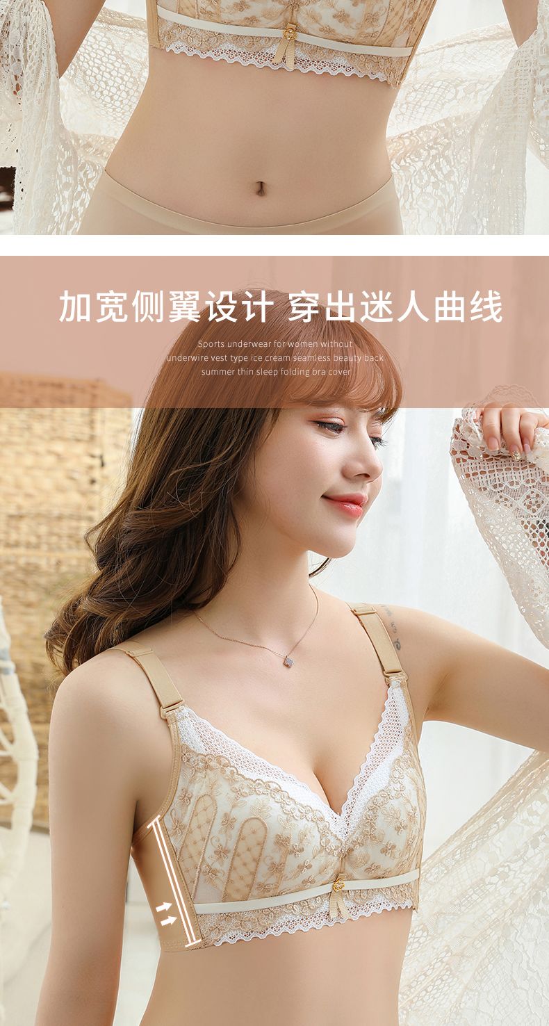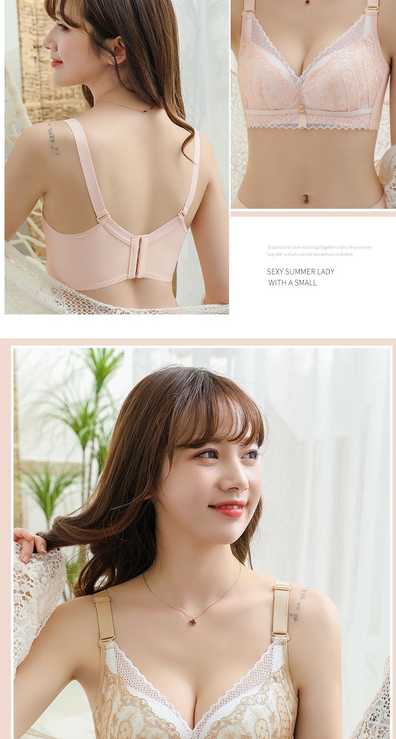 无磁内衣内裤套装女中厚薄款蕾丝无钢圈聚拢调整型文胸小胸罩上托