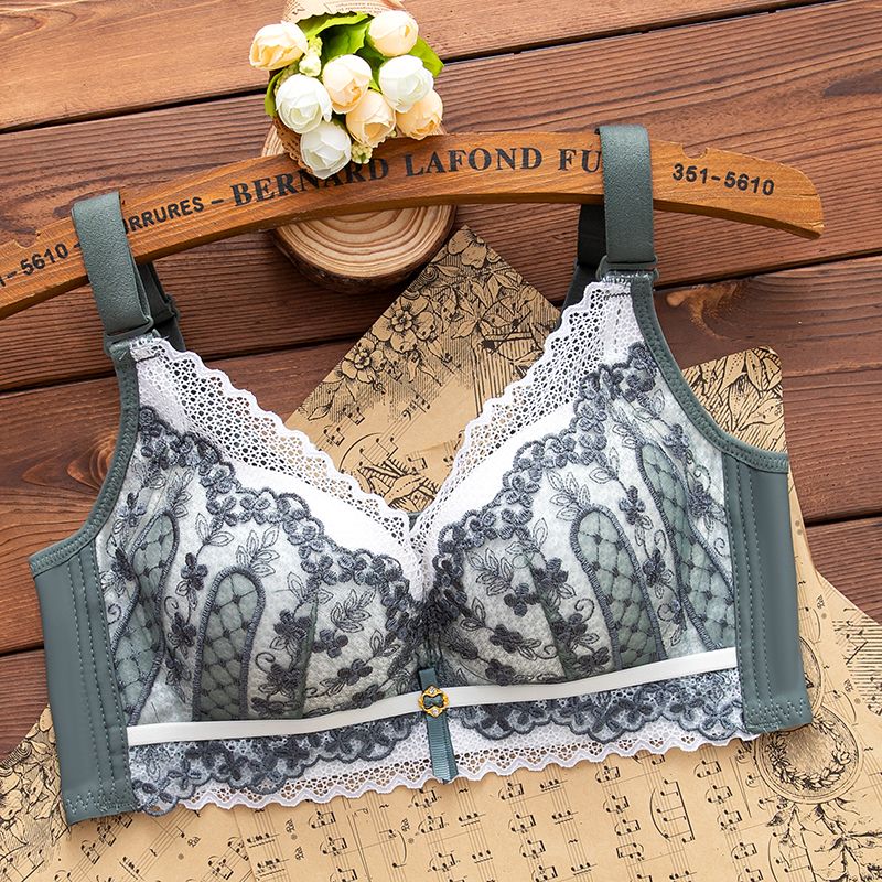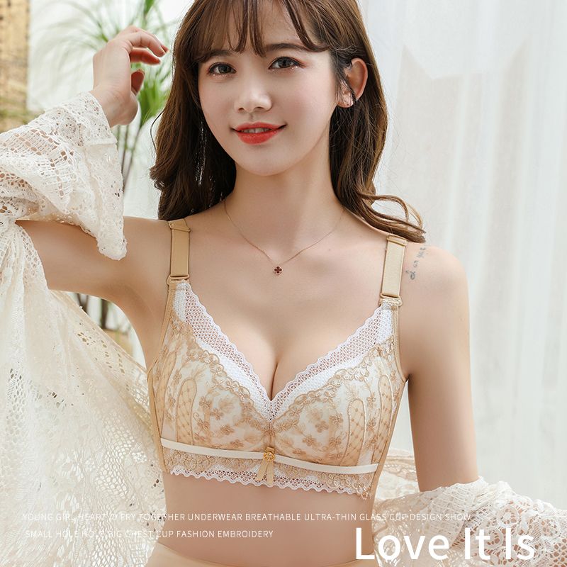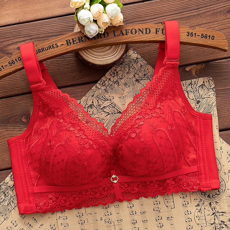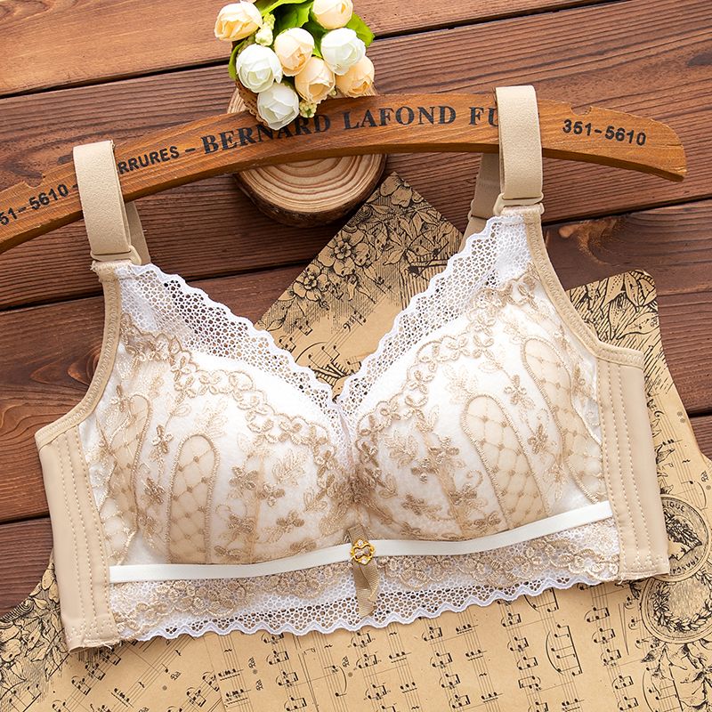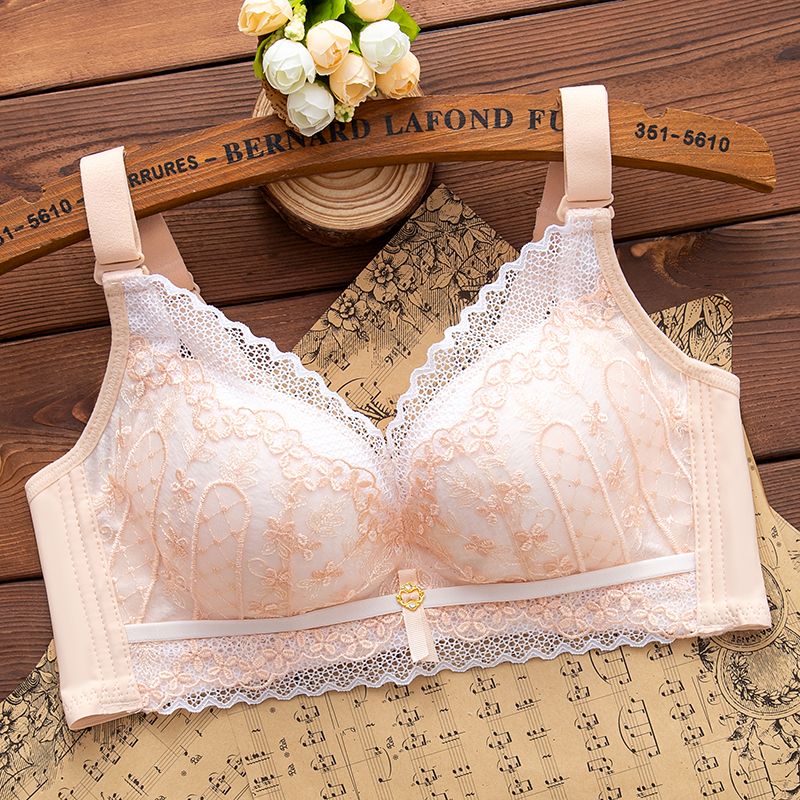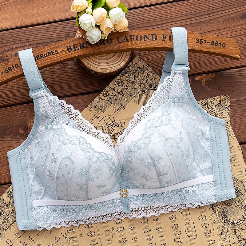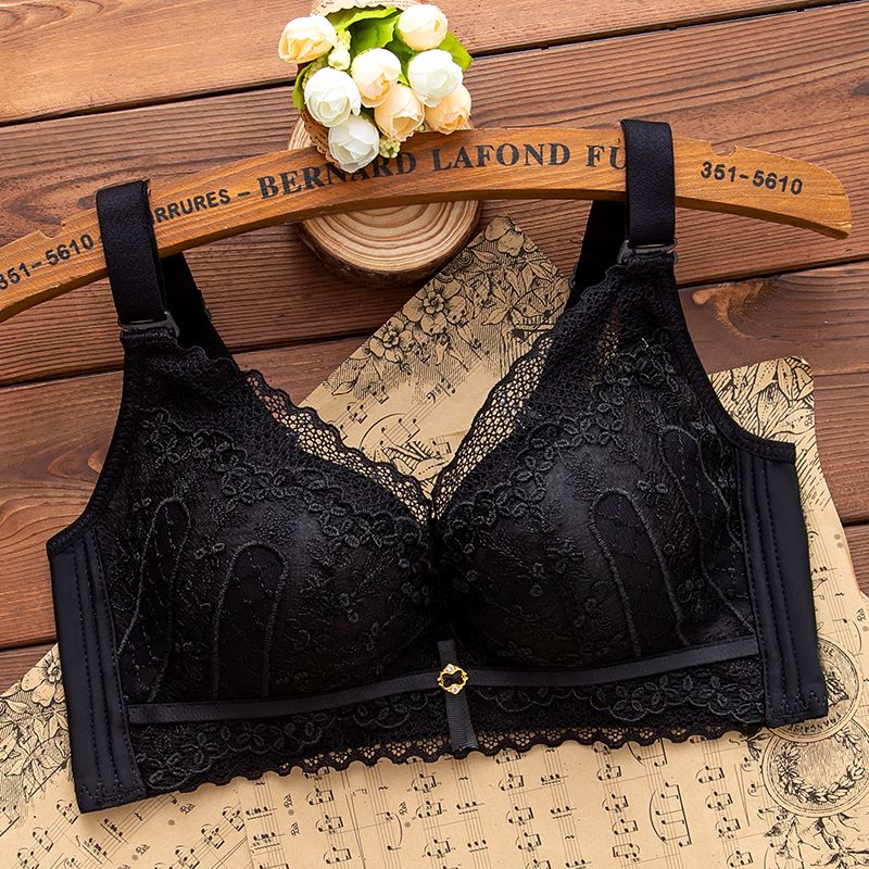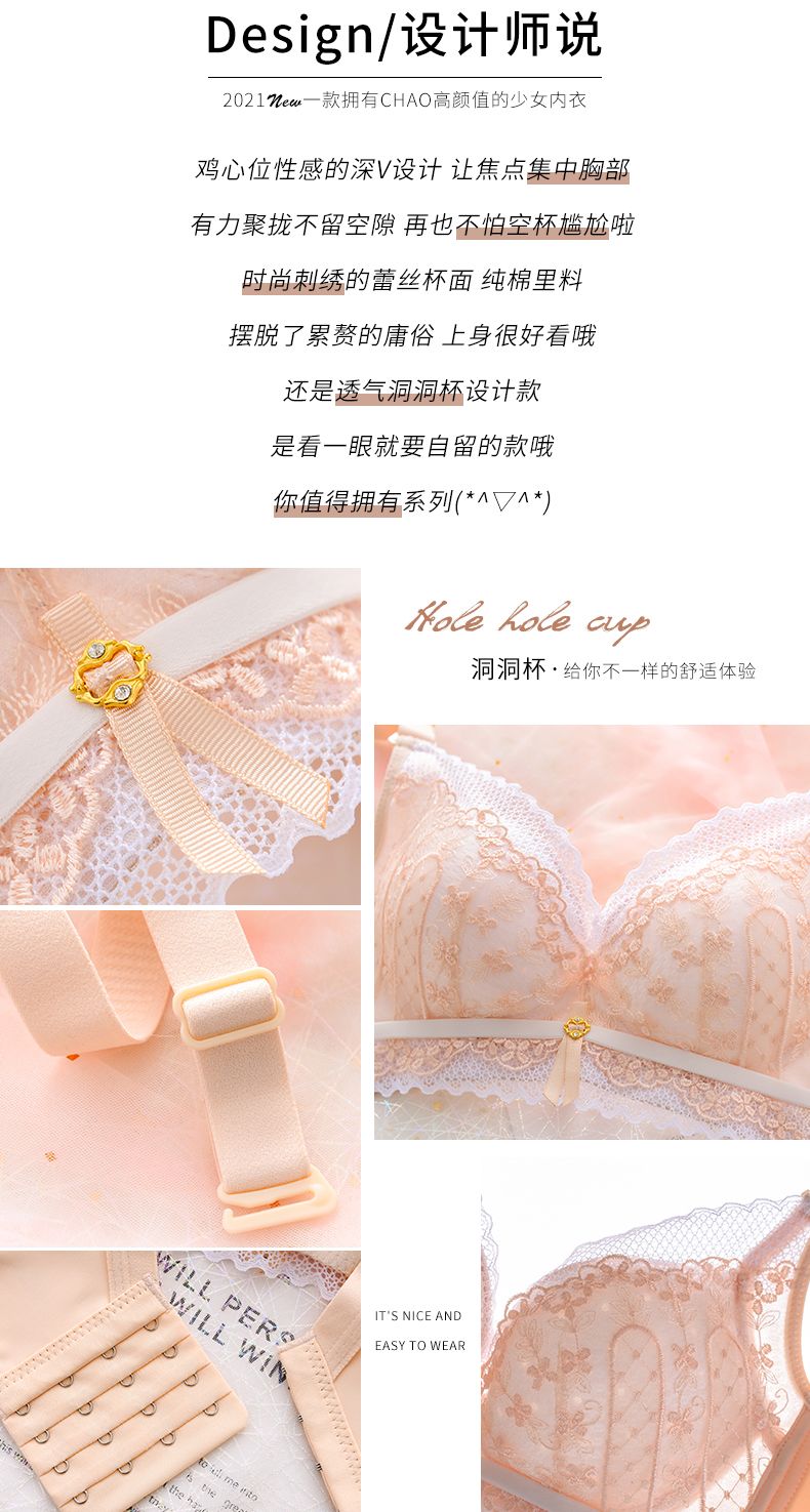 无磁内衣内裤套装女中厚薄款蕾丝无钢圈聚拢调整型文胸小胸罩上托