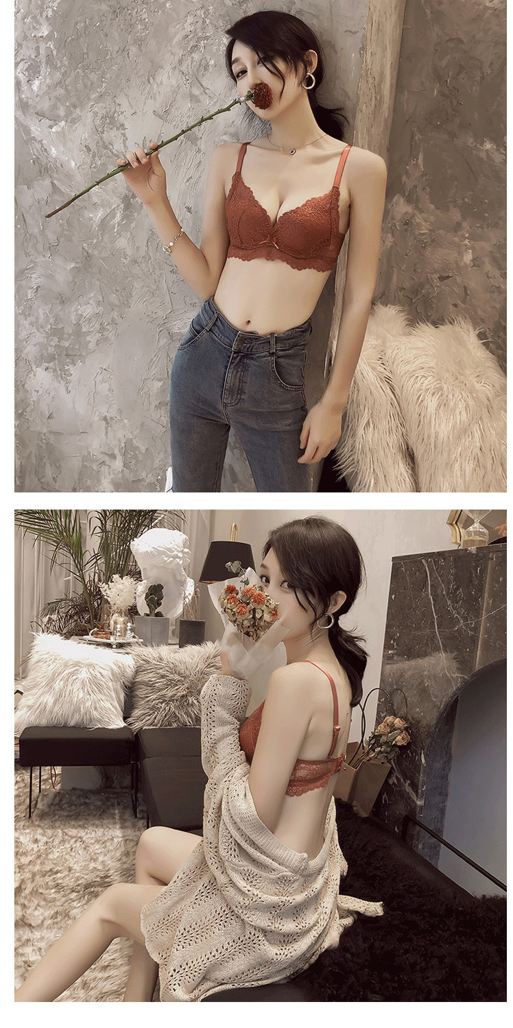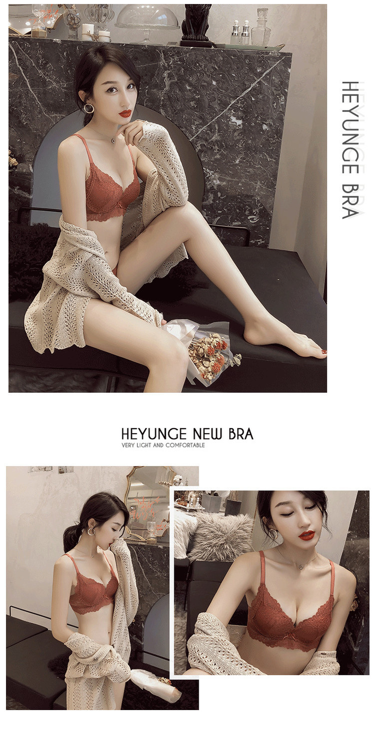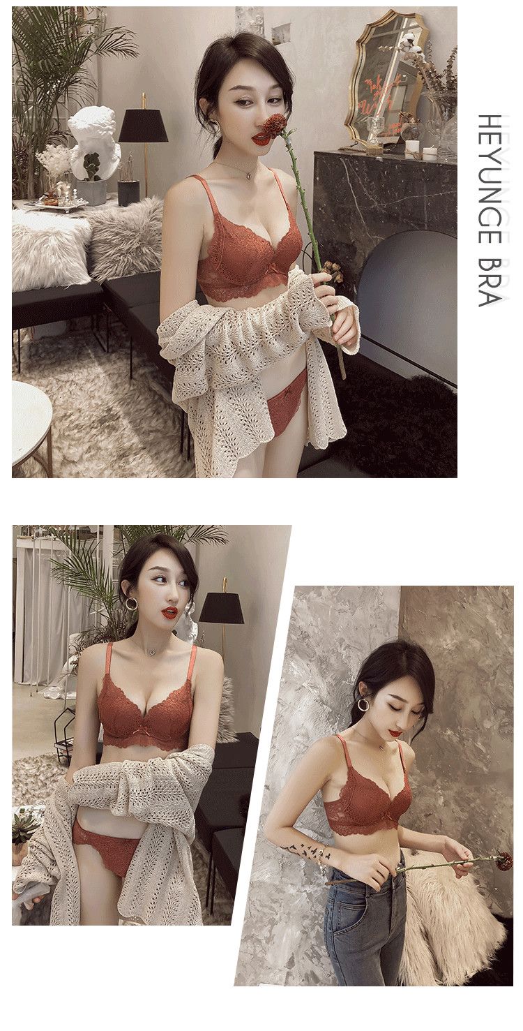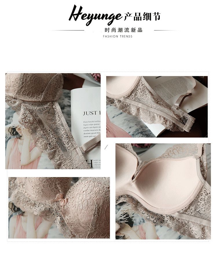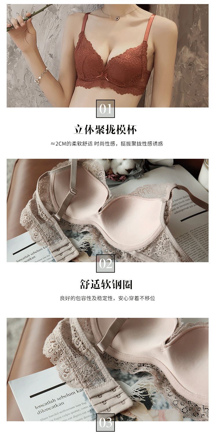 无钢圈内衣裤套装女小胸罩聚拢收副乳上托调整型性感蕾丝加厚文胸