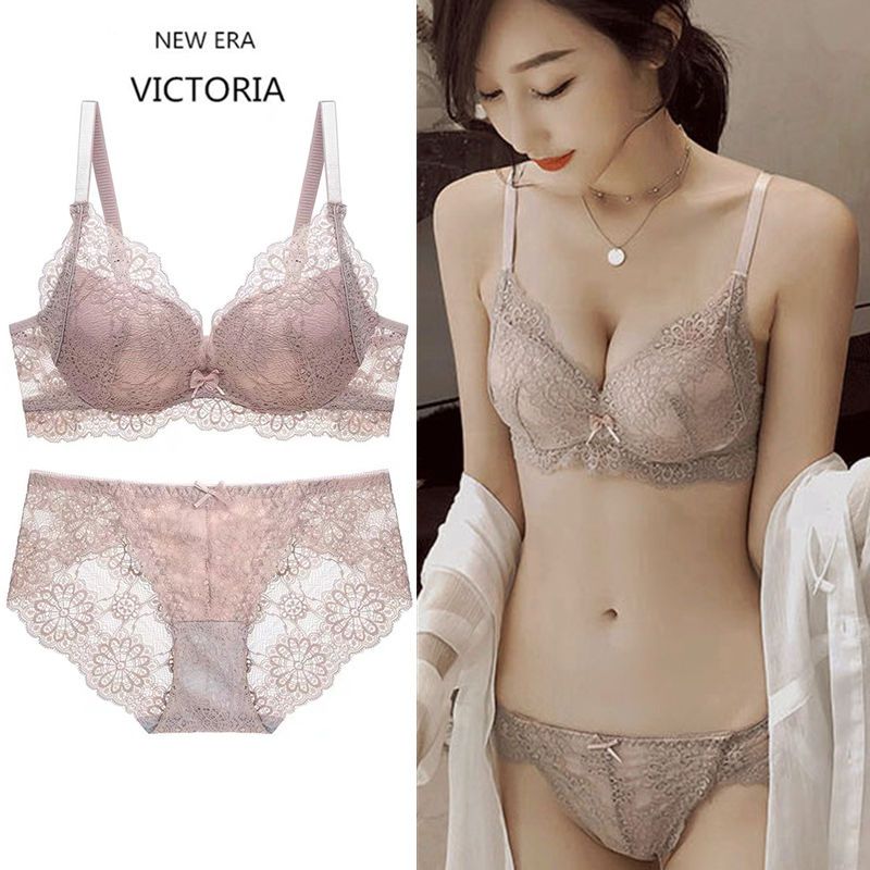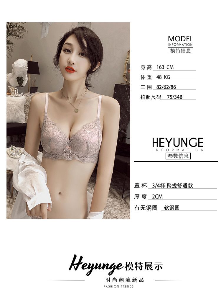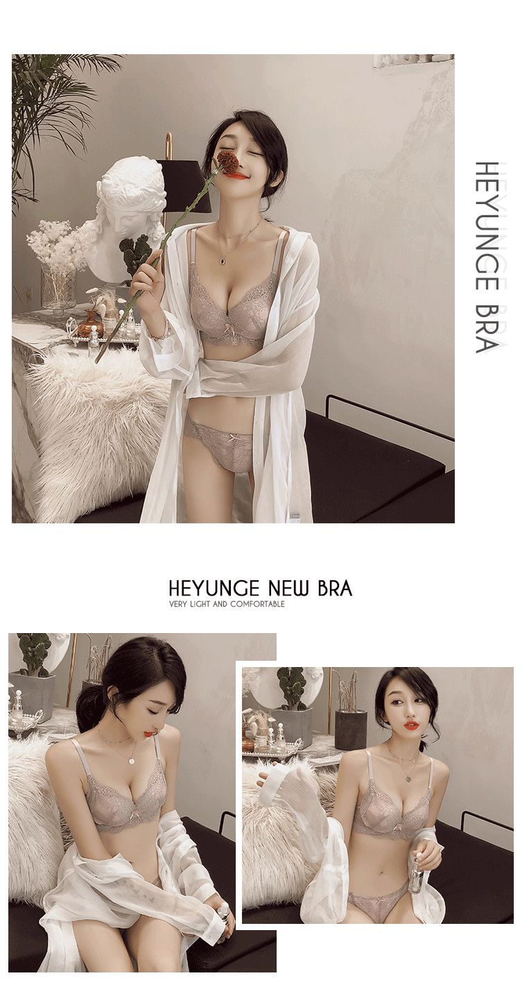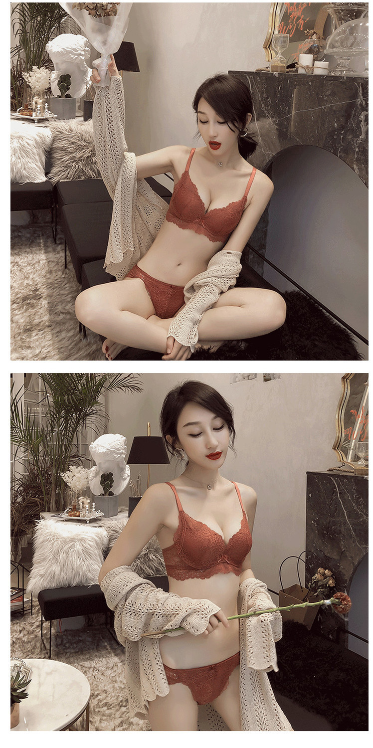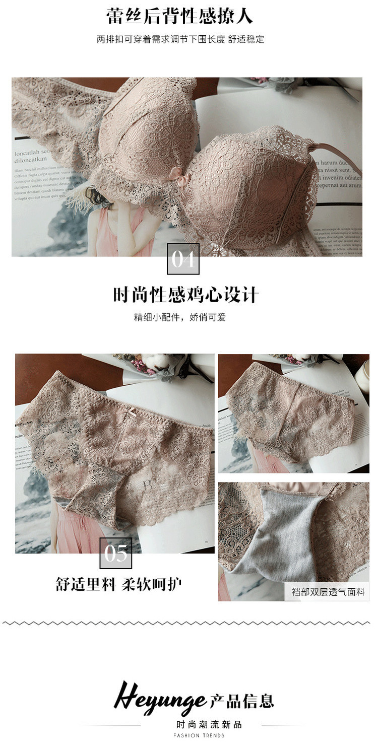 无钢圈内衣裤套装女小胸罩聚拢收副乳上托调整型性感蕾丝加厚文胸