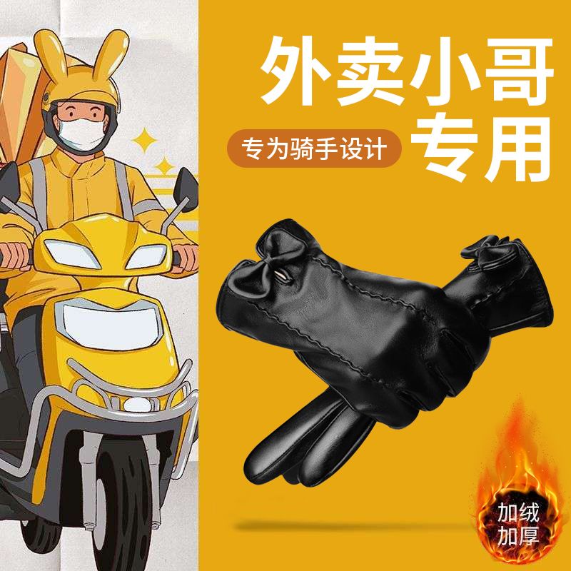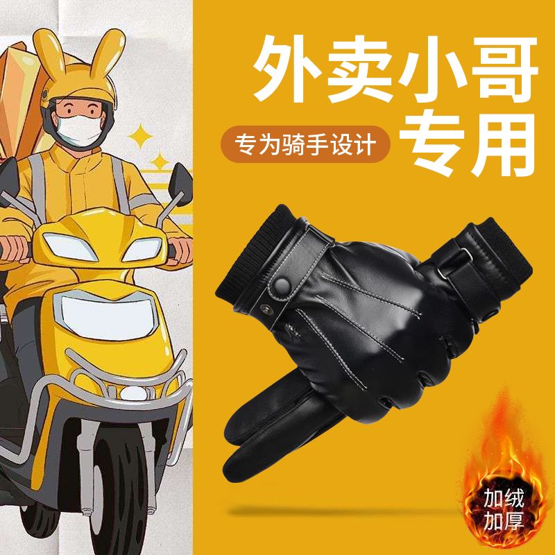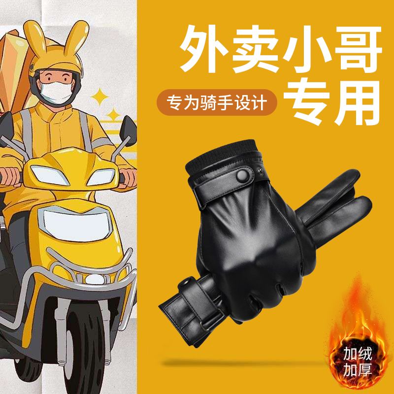 外卖手套专用冬季五指加绒保暖防水可触屏骑手骑行电动车防风防寒