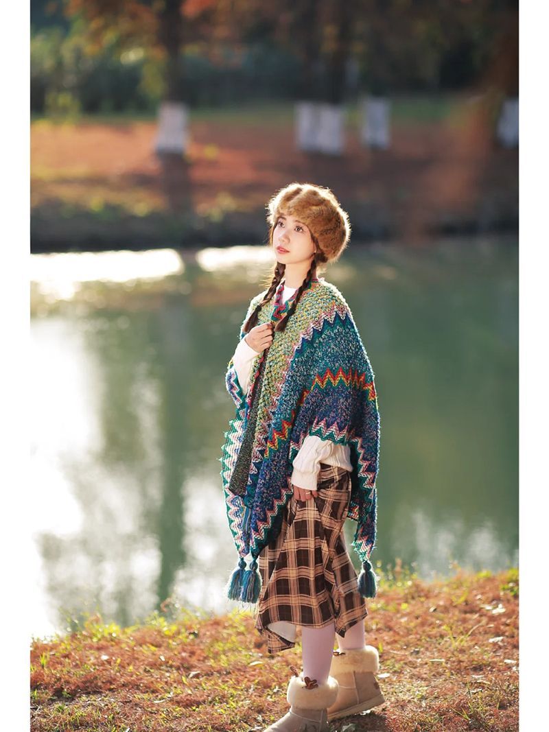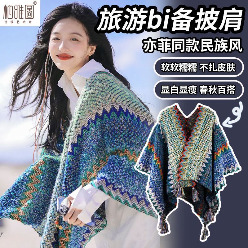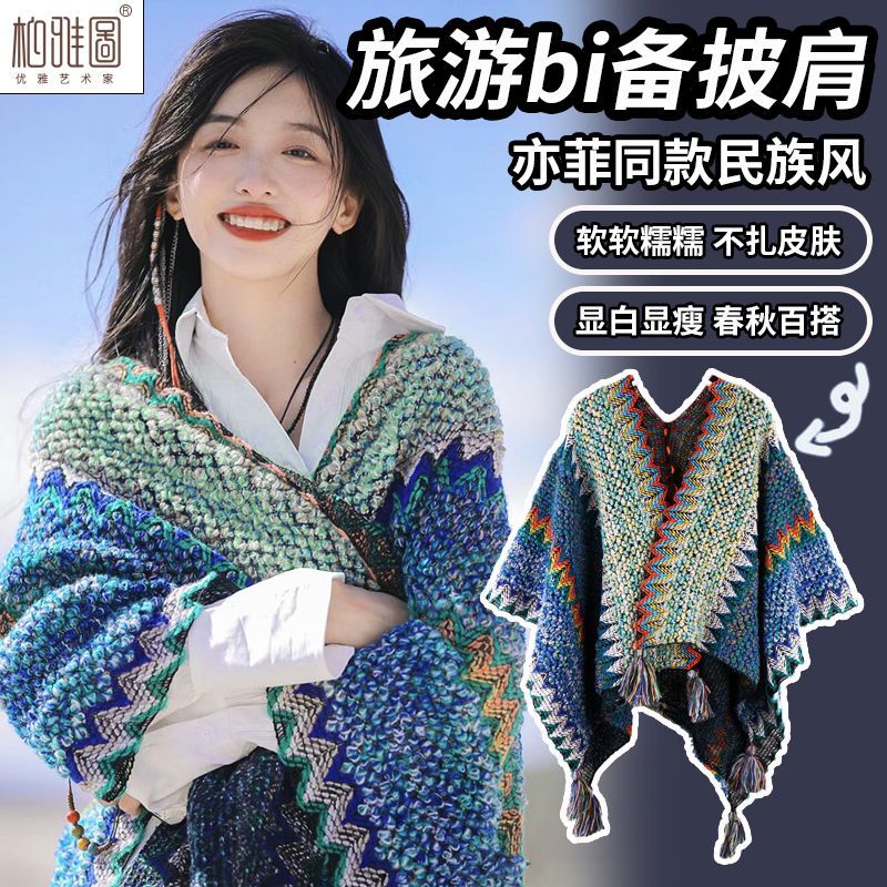 柏雅图特色民族风披肩云南度假旅游拍照穿搭西藏草原披风斗篷外搭
