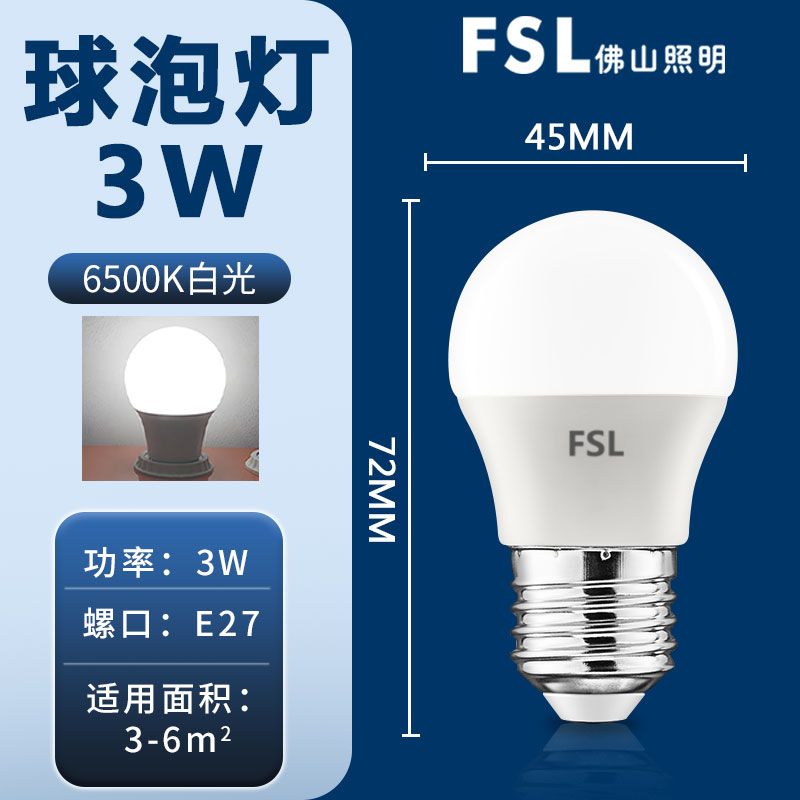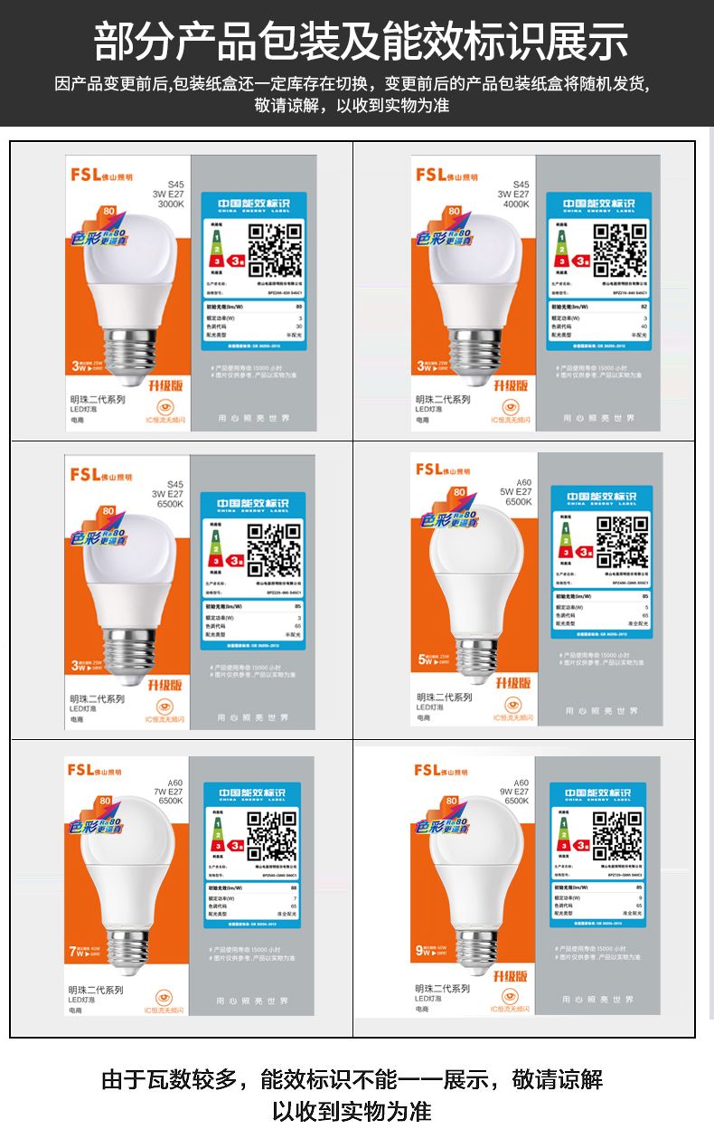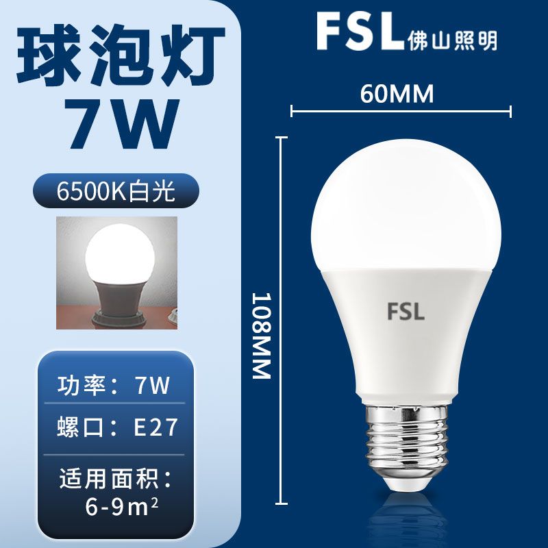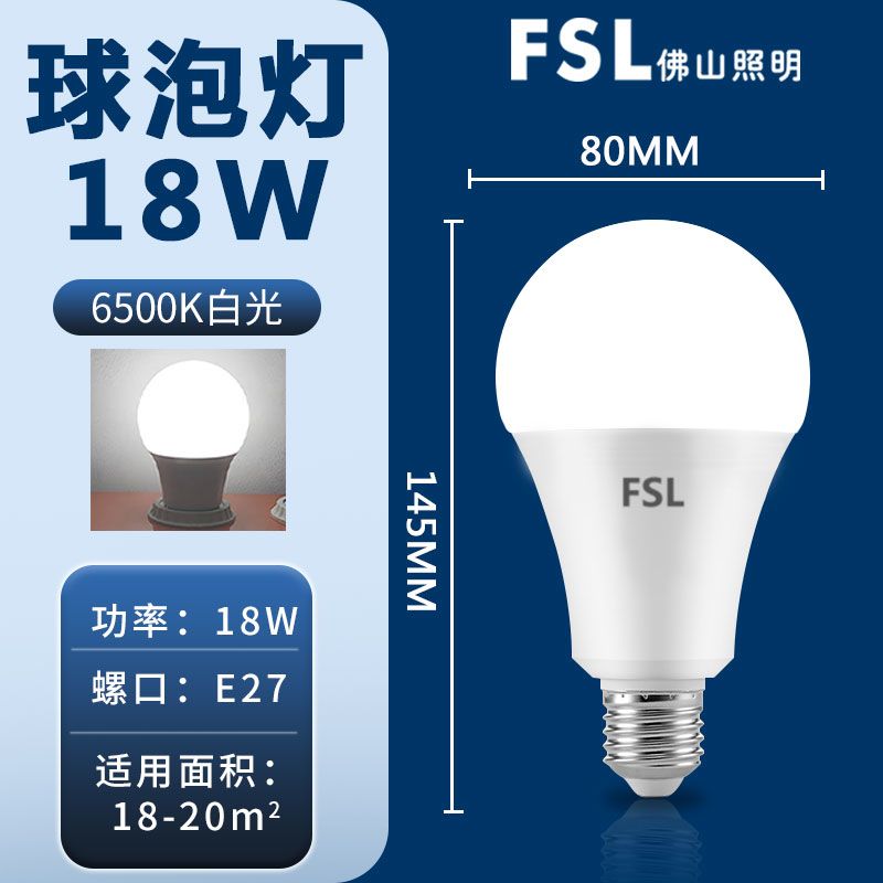 FSL佛山照明LED灯泡超亮省电护眼灯E27螺口大功率球泡节能白光泡