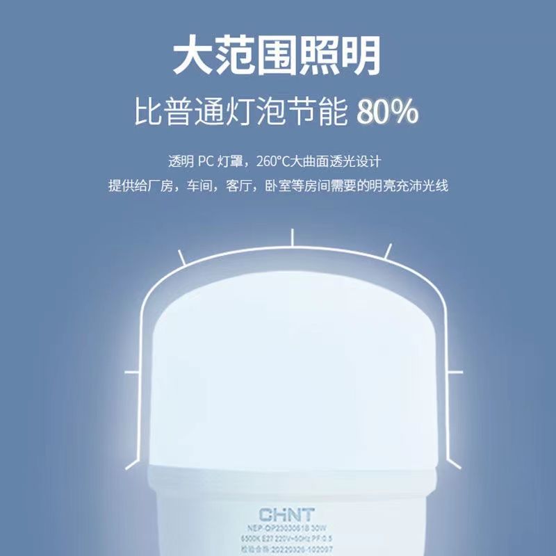 正泰照明LED灯泡球泡单灯超亮护眼节能家用省电E27螺口白光大功率