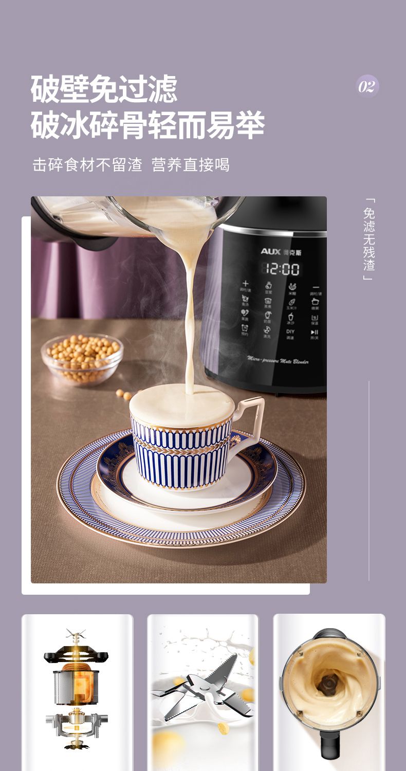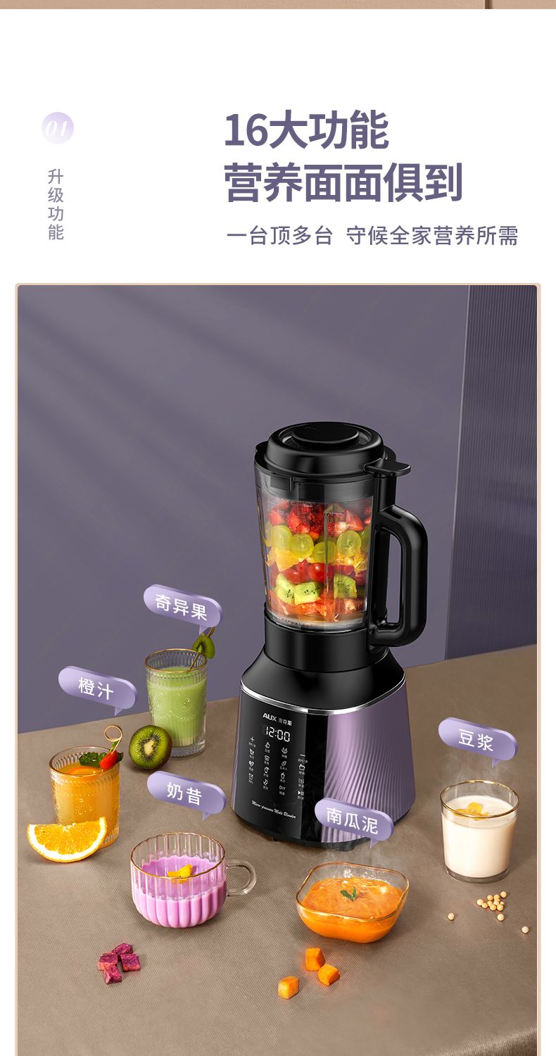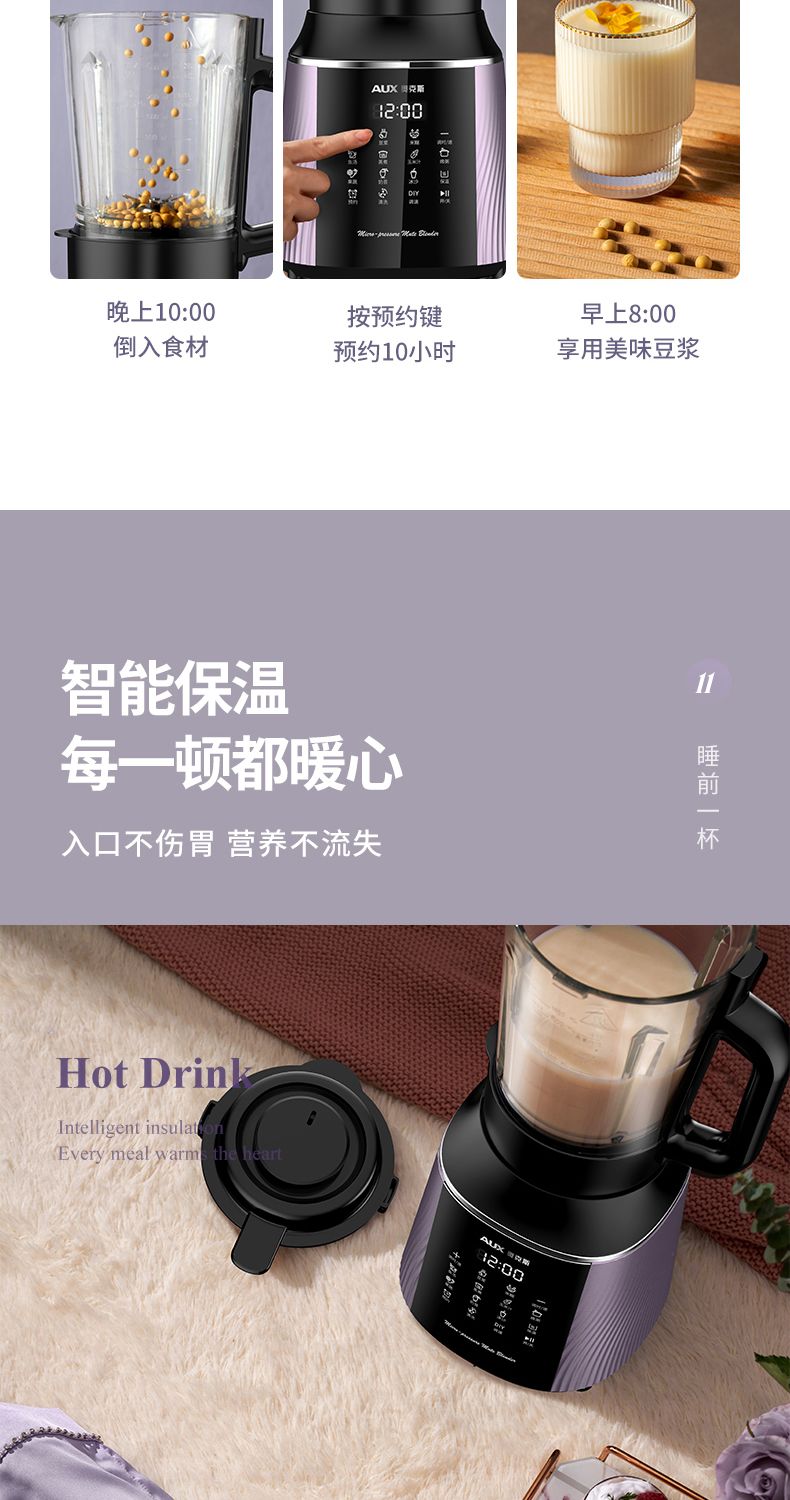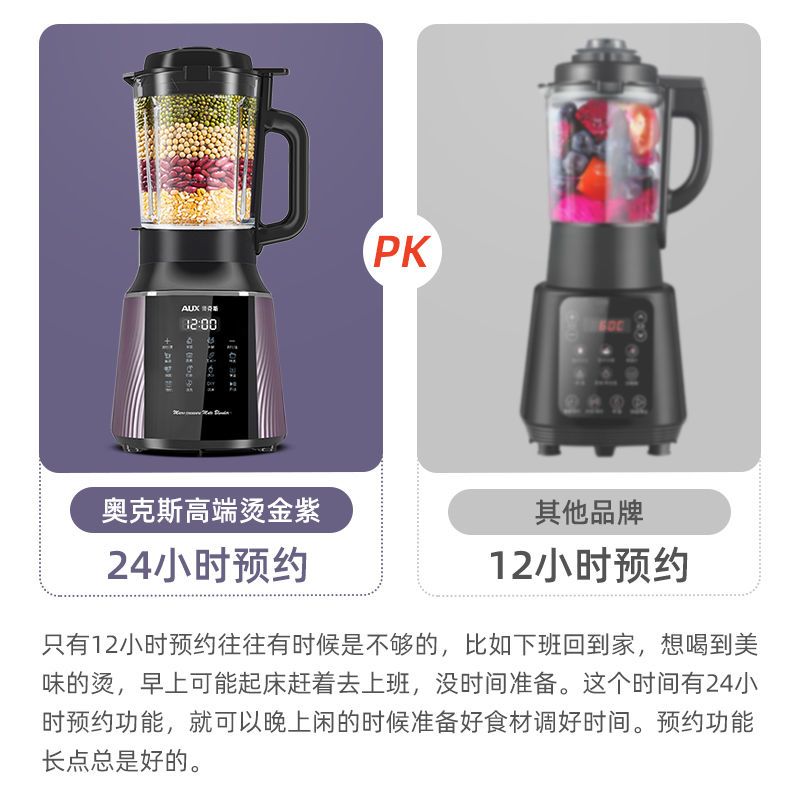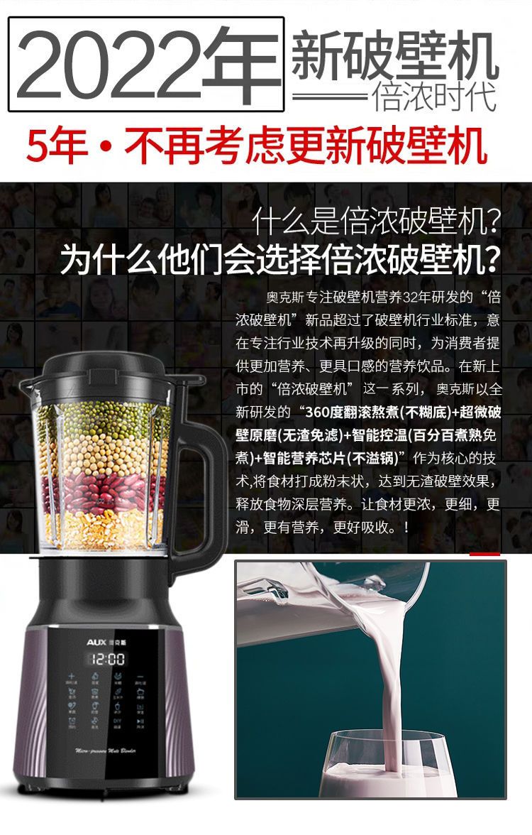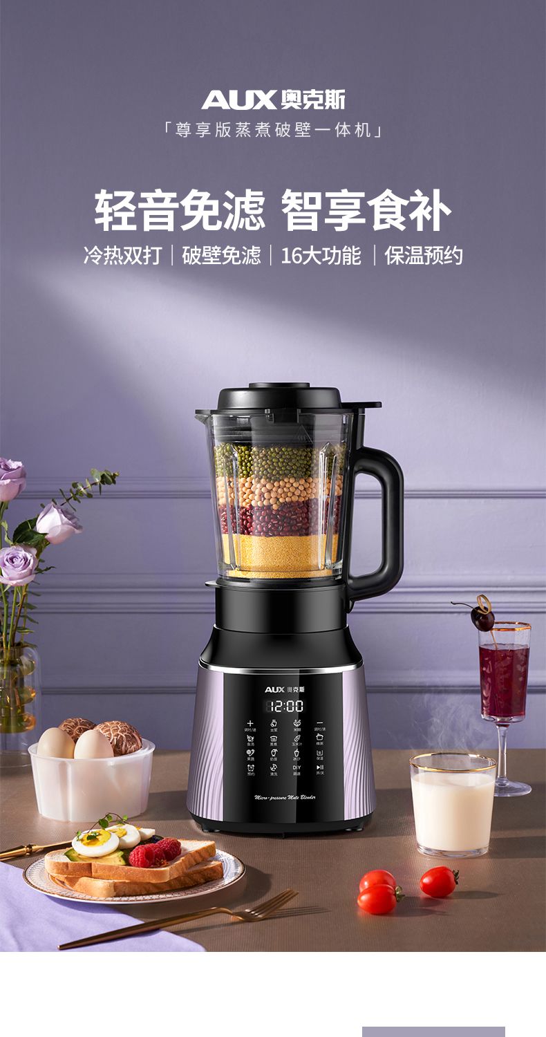 奥克斯破壁机加热家用全自动豆浆机多功能无渣免滤榨汁机料理机