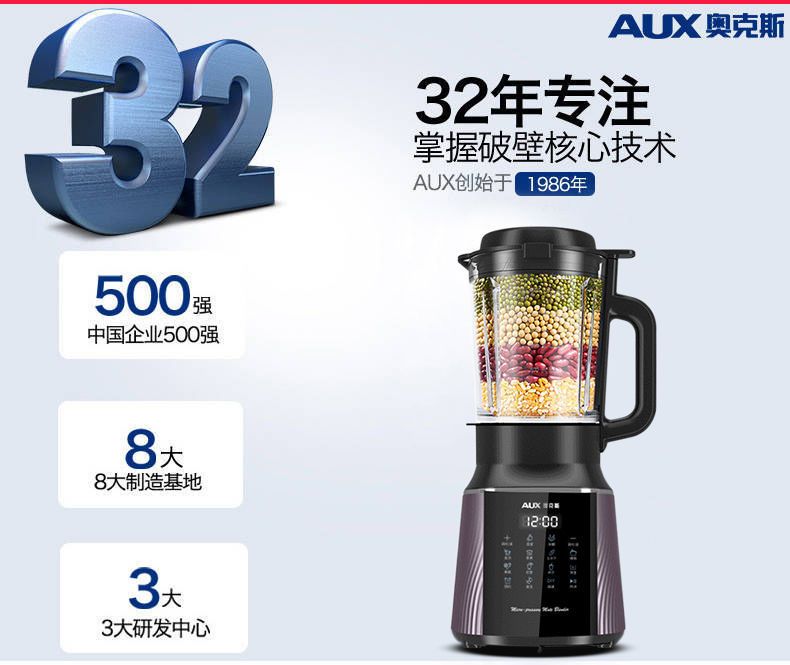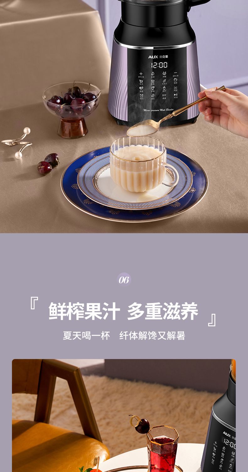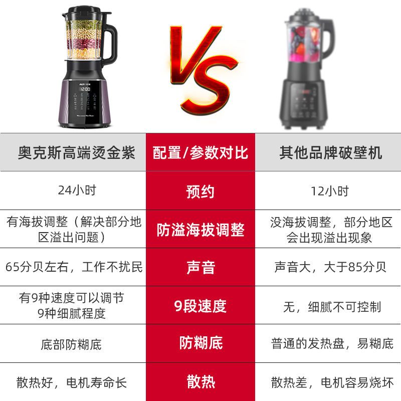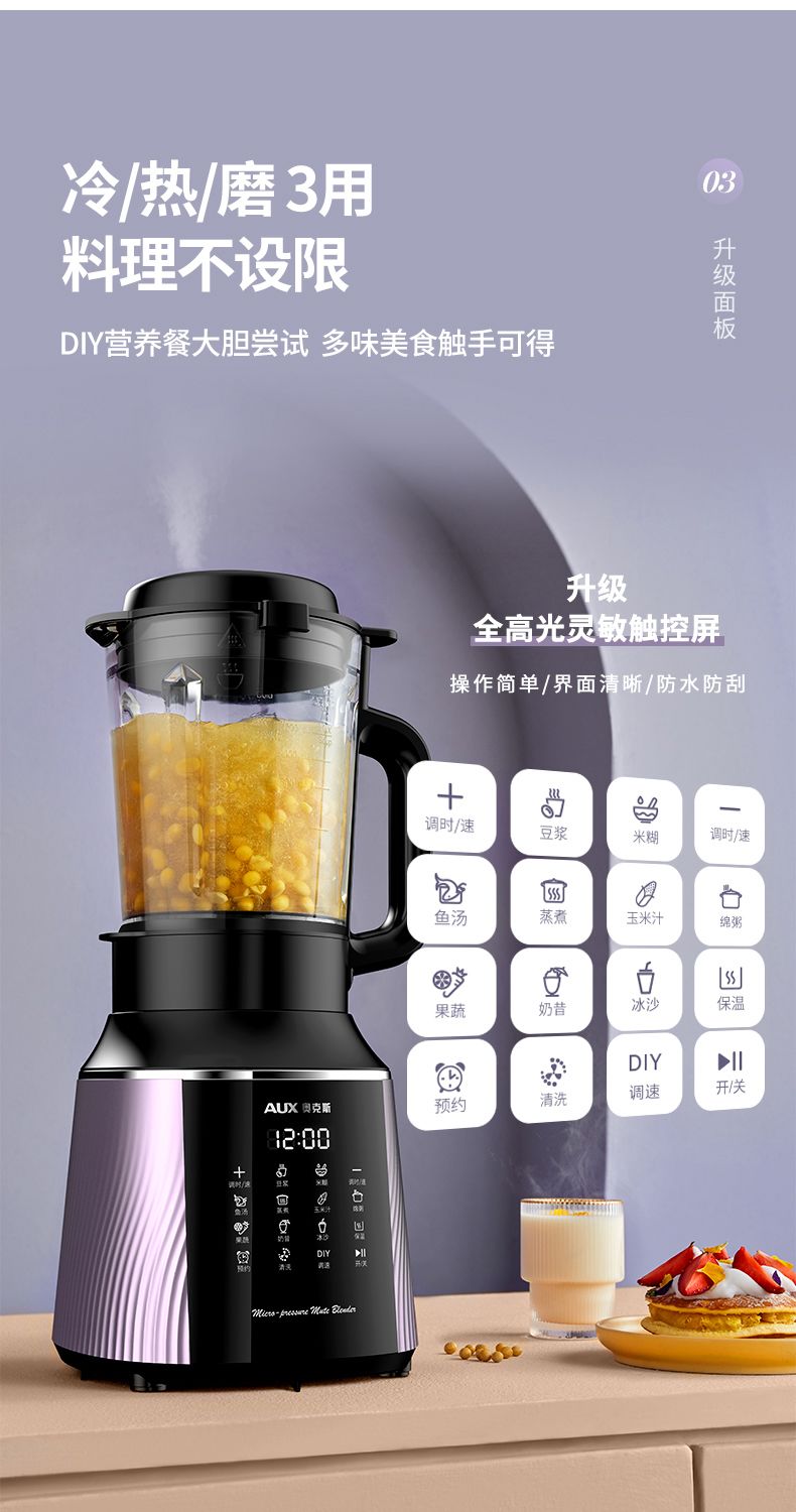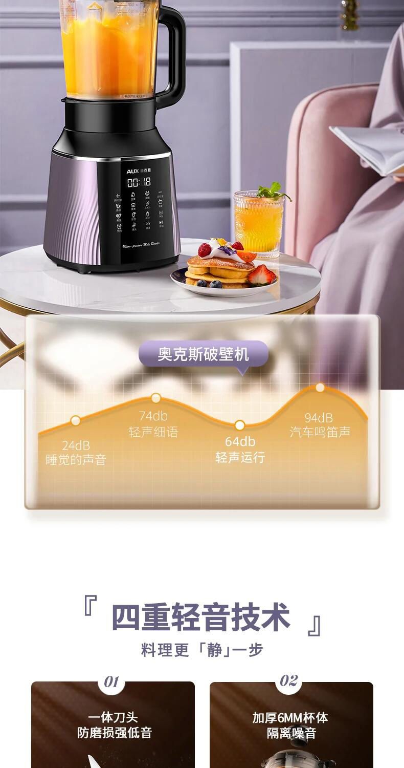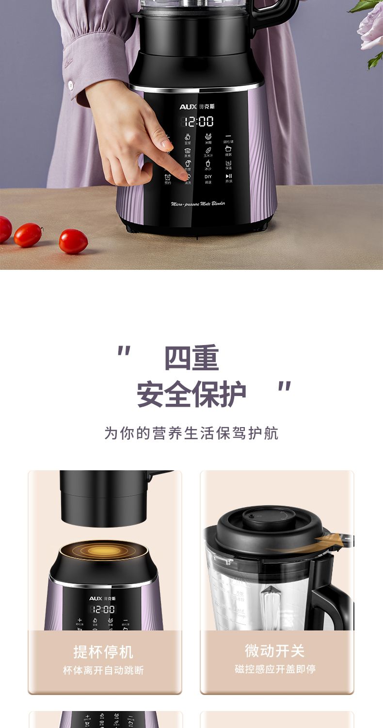 奥克斯破壁机加热家用全自动豆浆机多功能无渣免滤榨汁机料理机