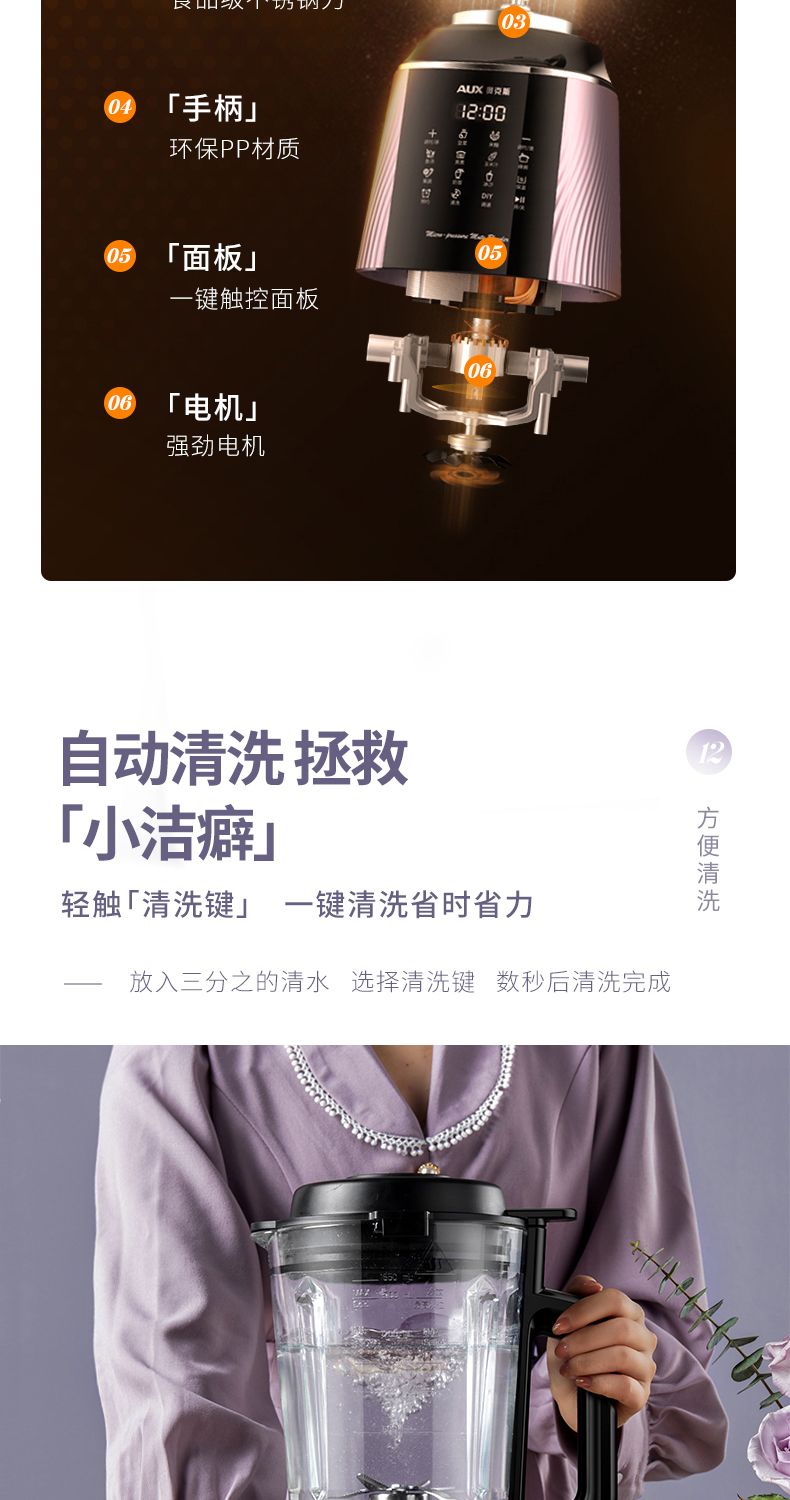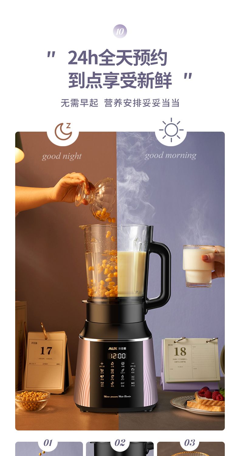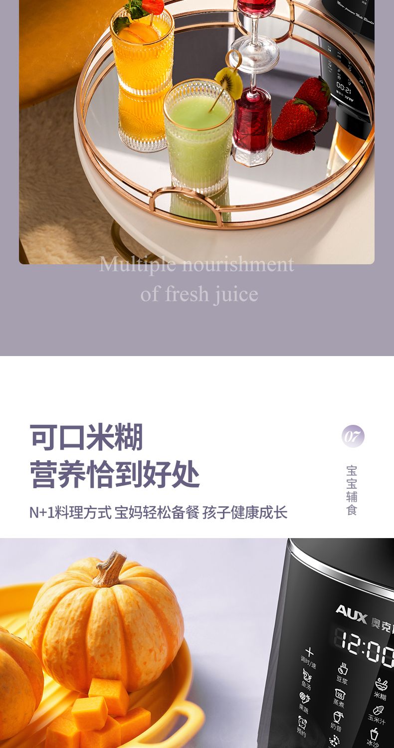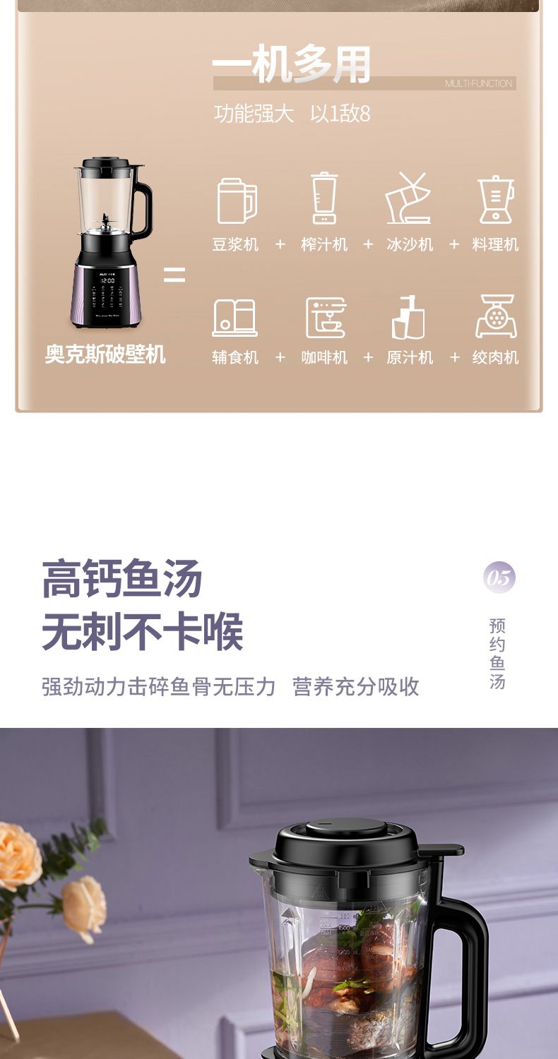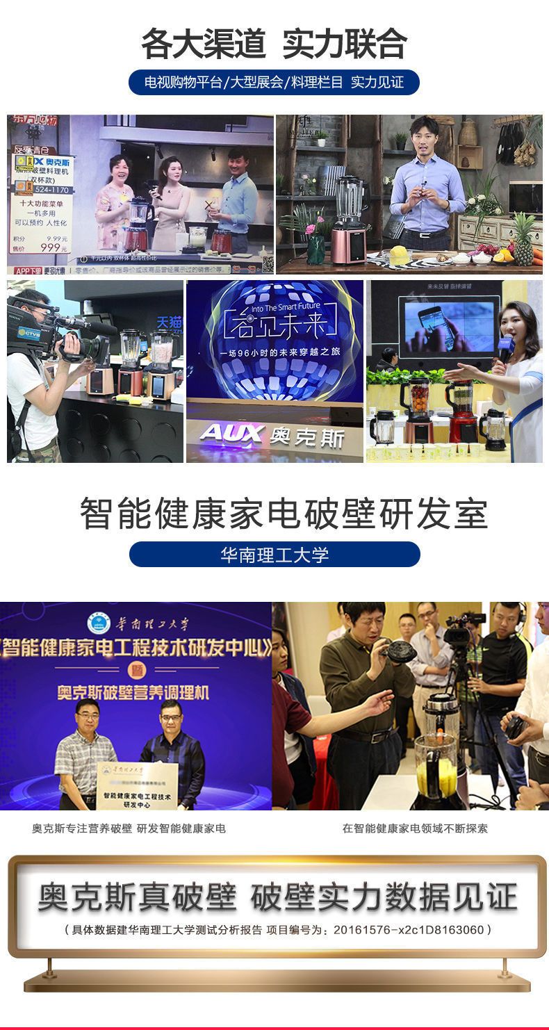 奥克斯破壁机加热家用全自动豆浆机多功能无渣免滤榨汁机料理机