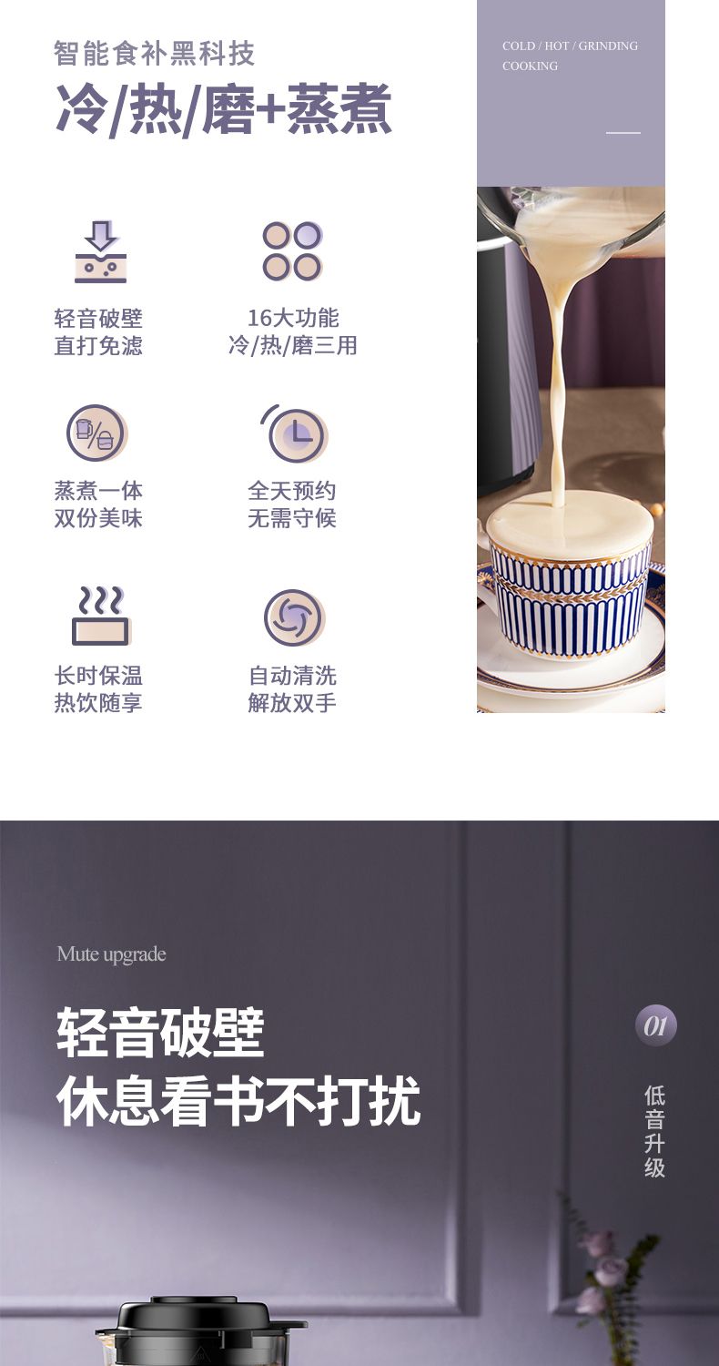 | upgraded bronzing purple [mute broken wall] gift original steamer(升级款烫金紫【静音破壁】赠送原装蒸笼) | USD $73.41 | 999999 piece available |
