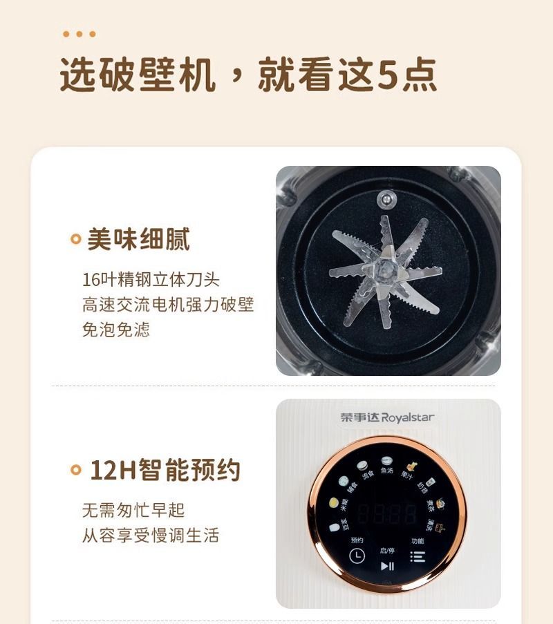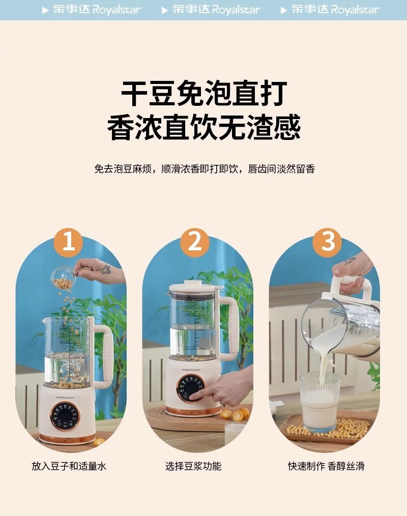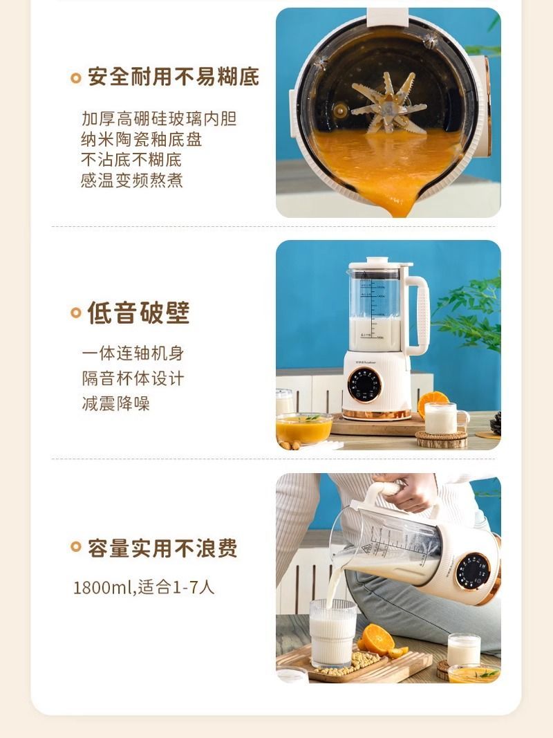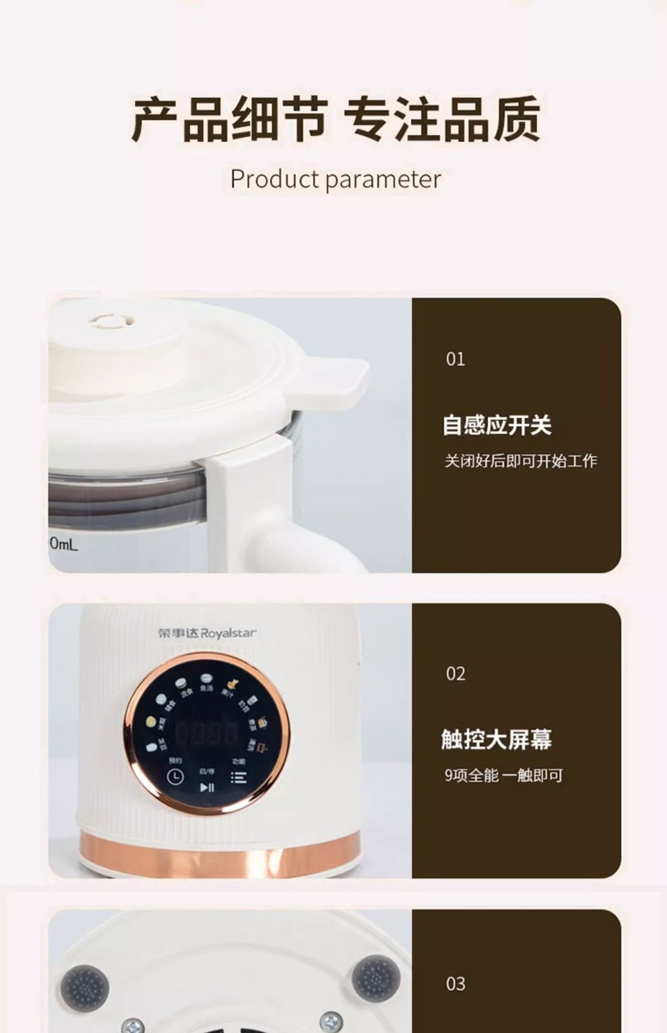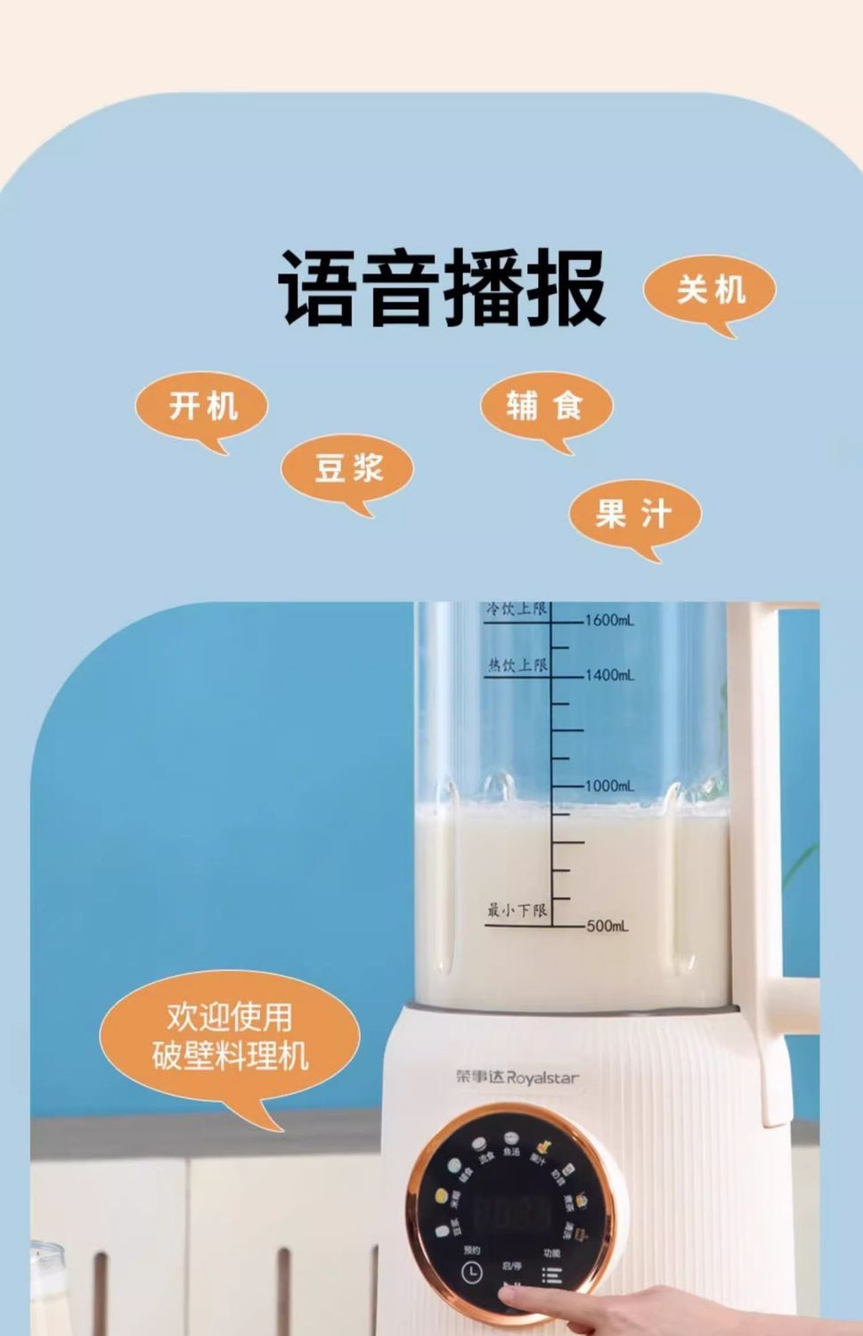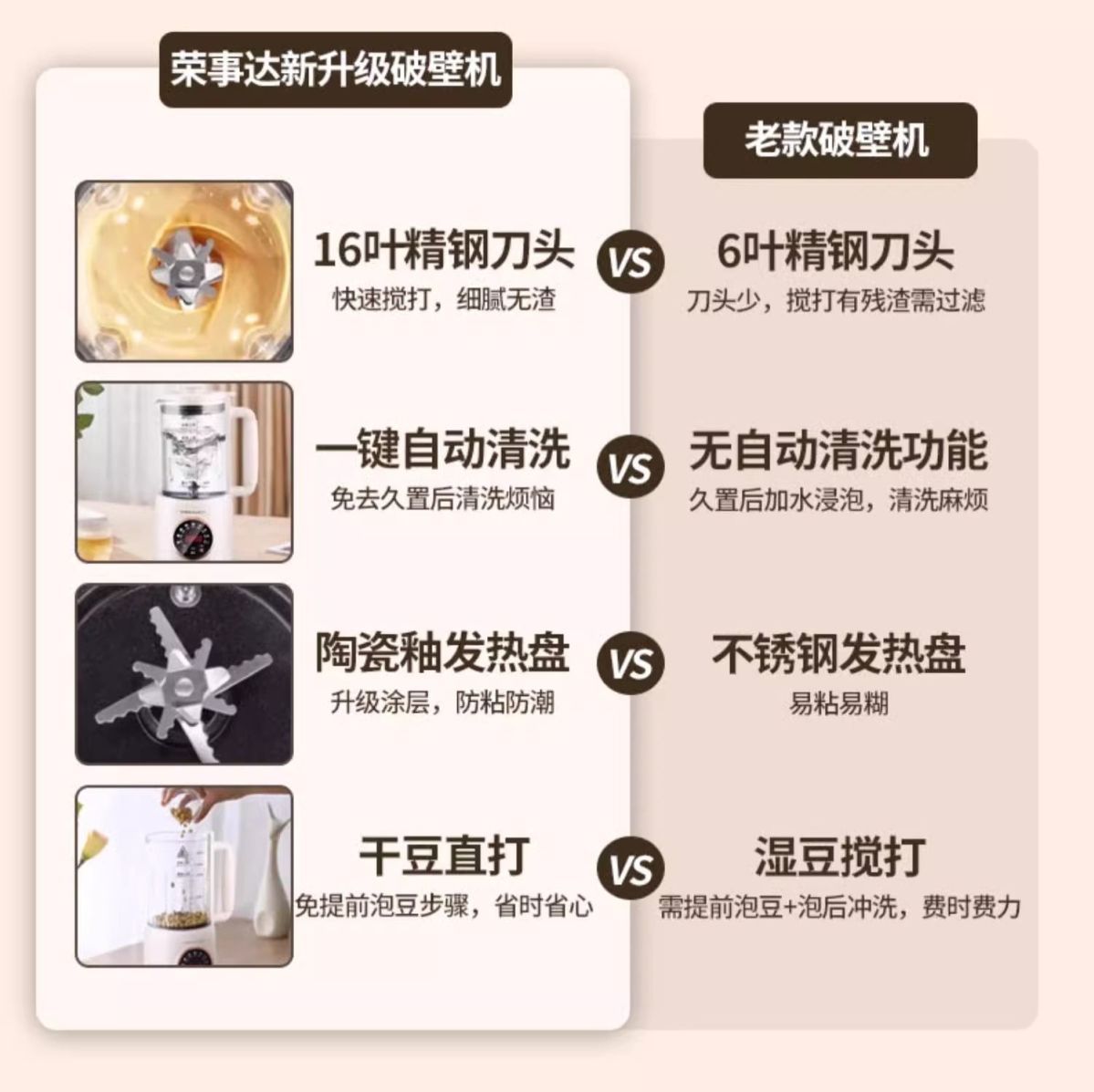 荣事达多功能破壁机新款豆浆机家用全自动加热免滤果蔬榨汁辅食机