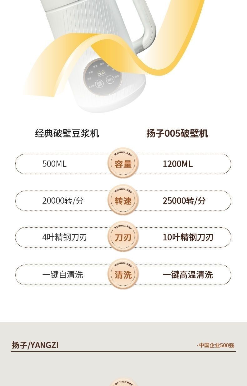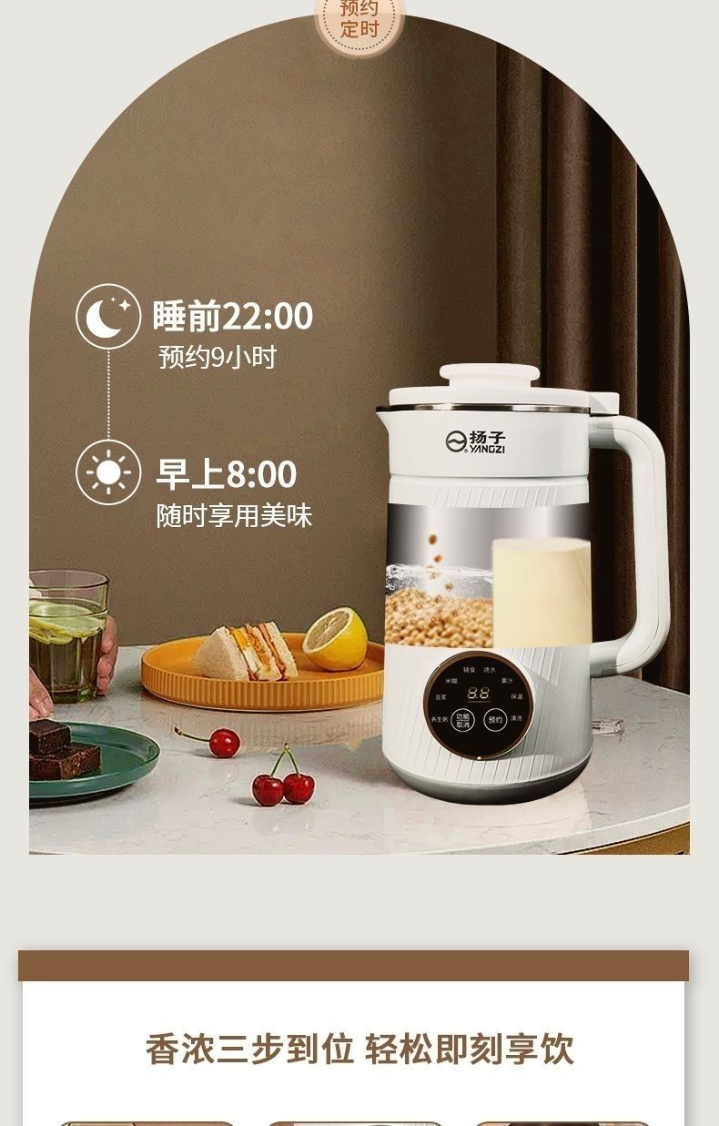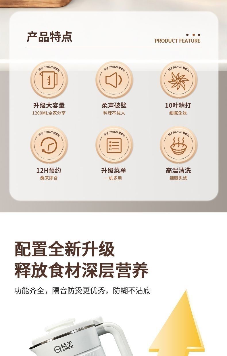 扬子智能破壁机家用全自动静音免滤榨汁多功能豆浆机家用辅食料理