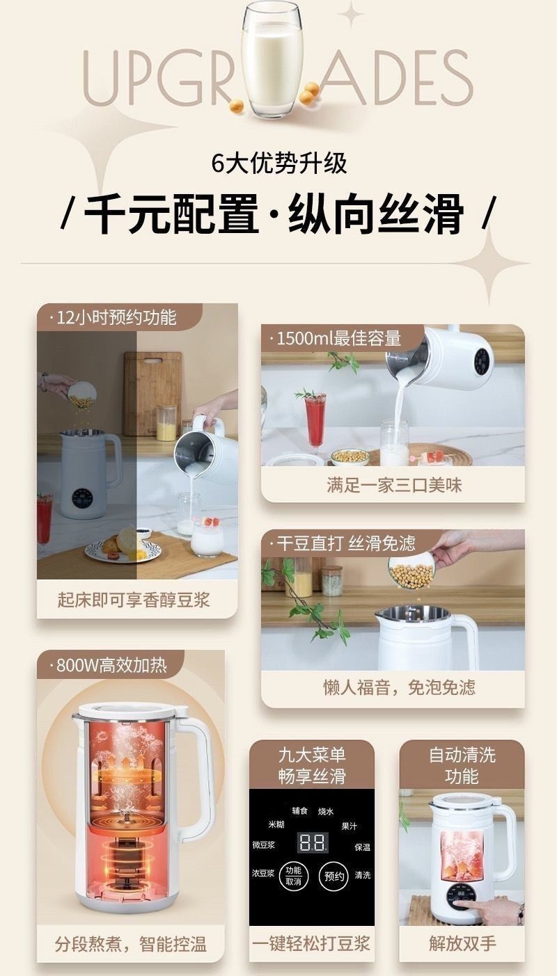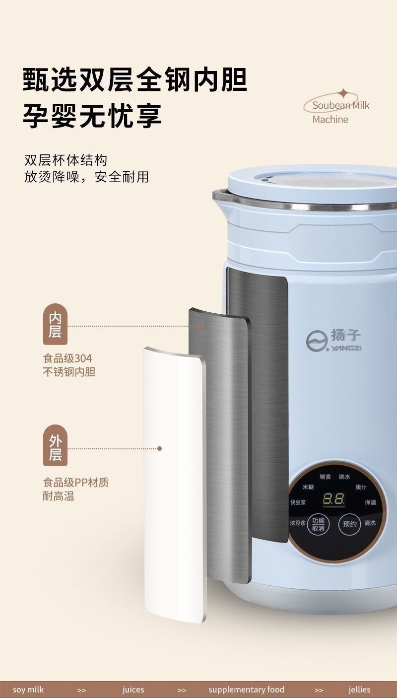扬子正品破壁豆浆机家用辅食机静音多功能加热免过滤全自动料理机