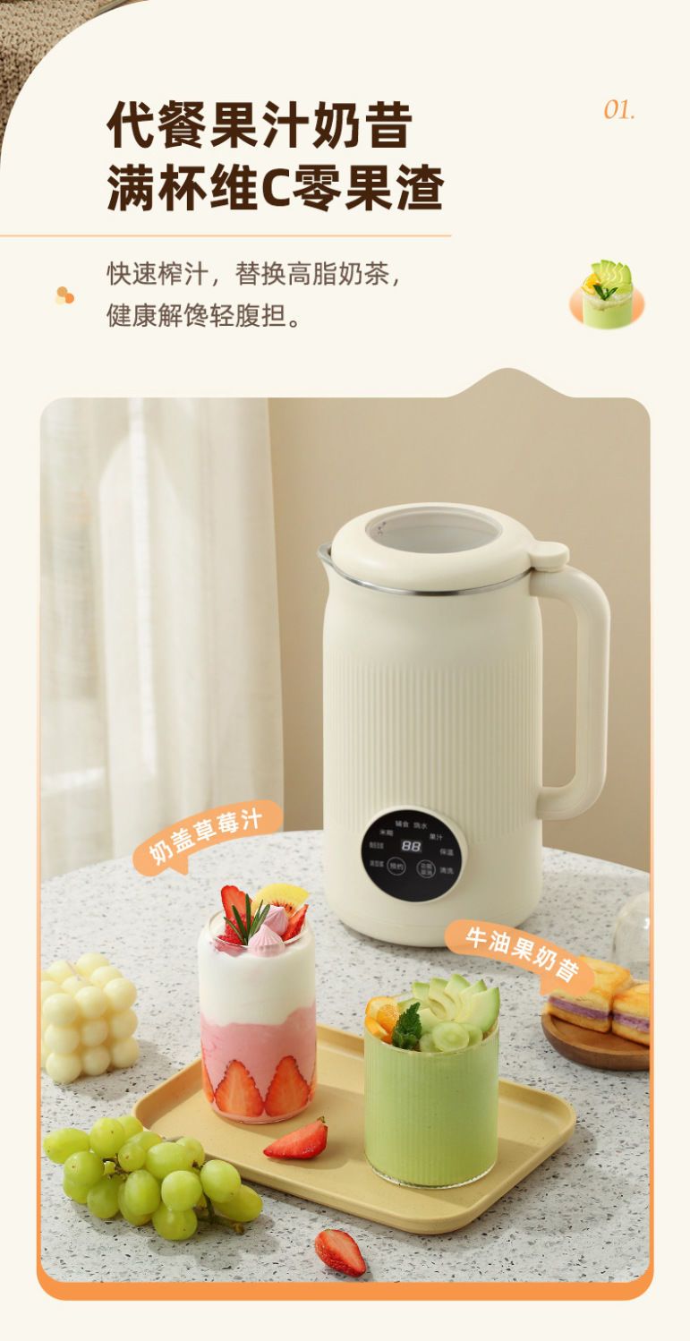 德国破壁dj全自动加热机免过滤免煮豆浆机家用型无渣多功能料理机