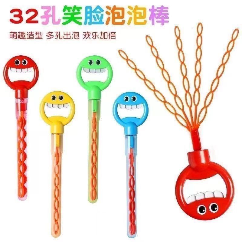 32孔可爱笑脸泡泡新款收放儿童大量多倍出泡吹泡泡玩具户外孩童