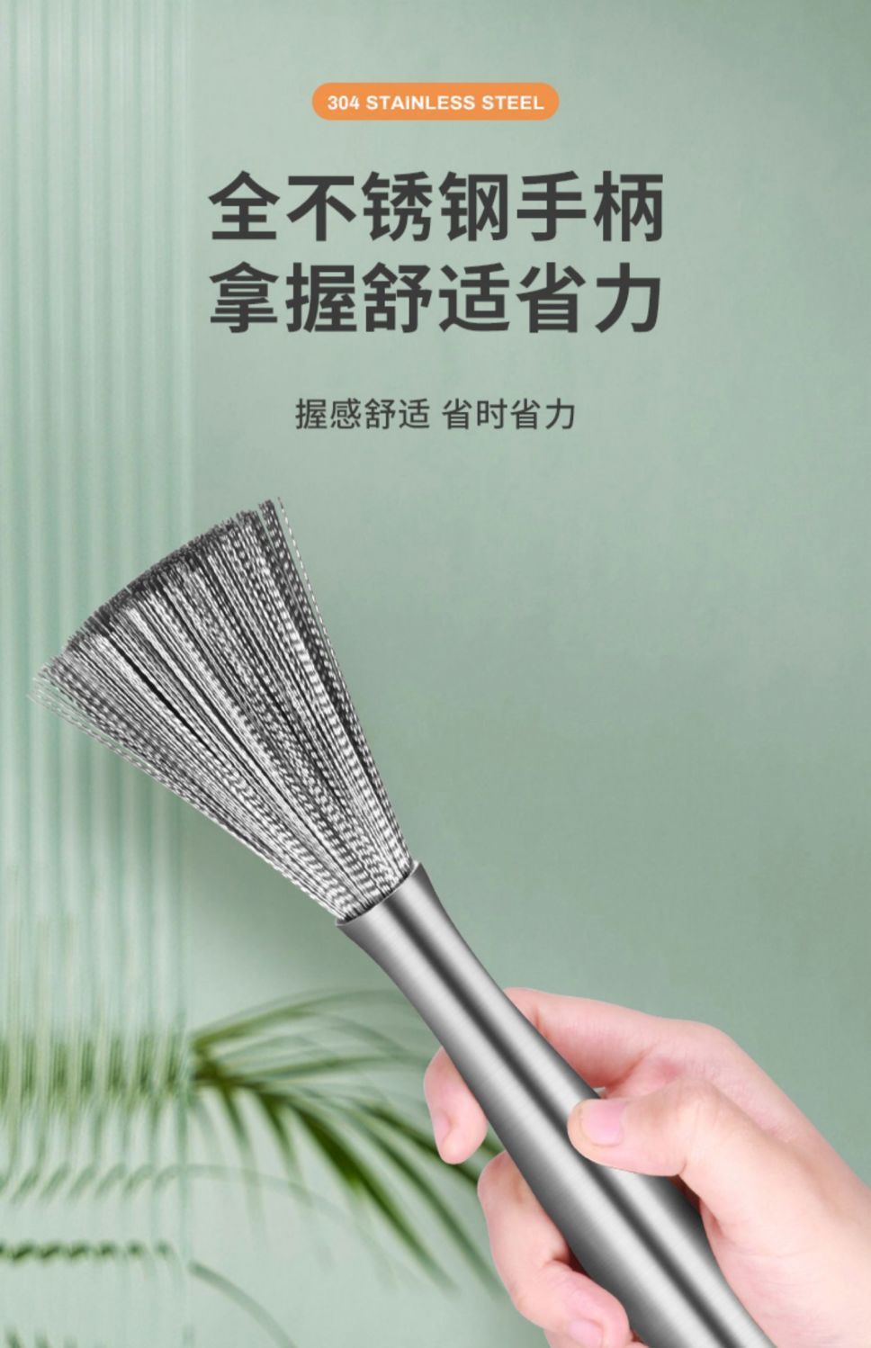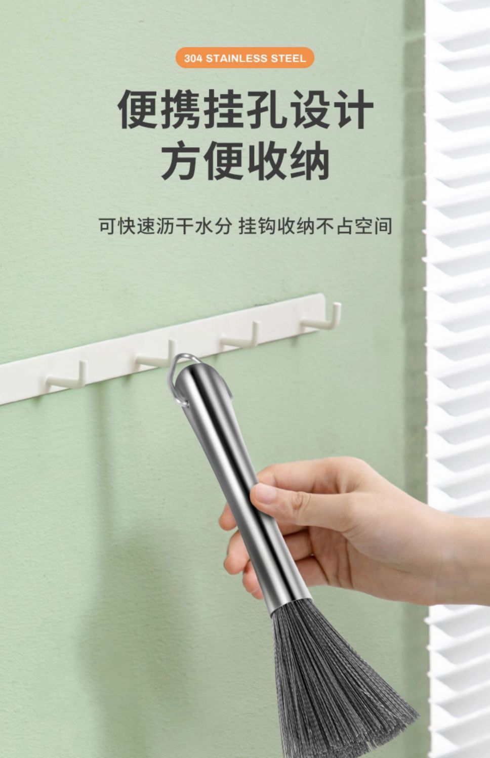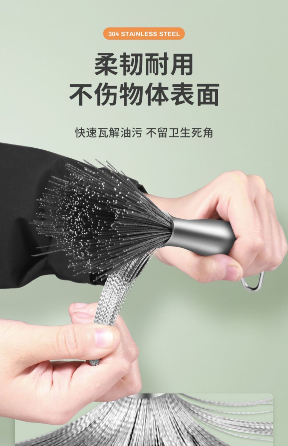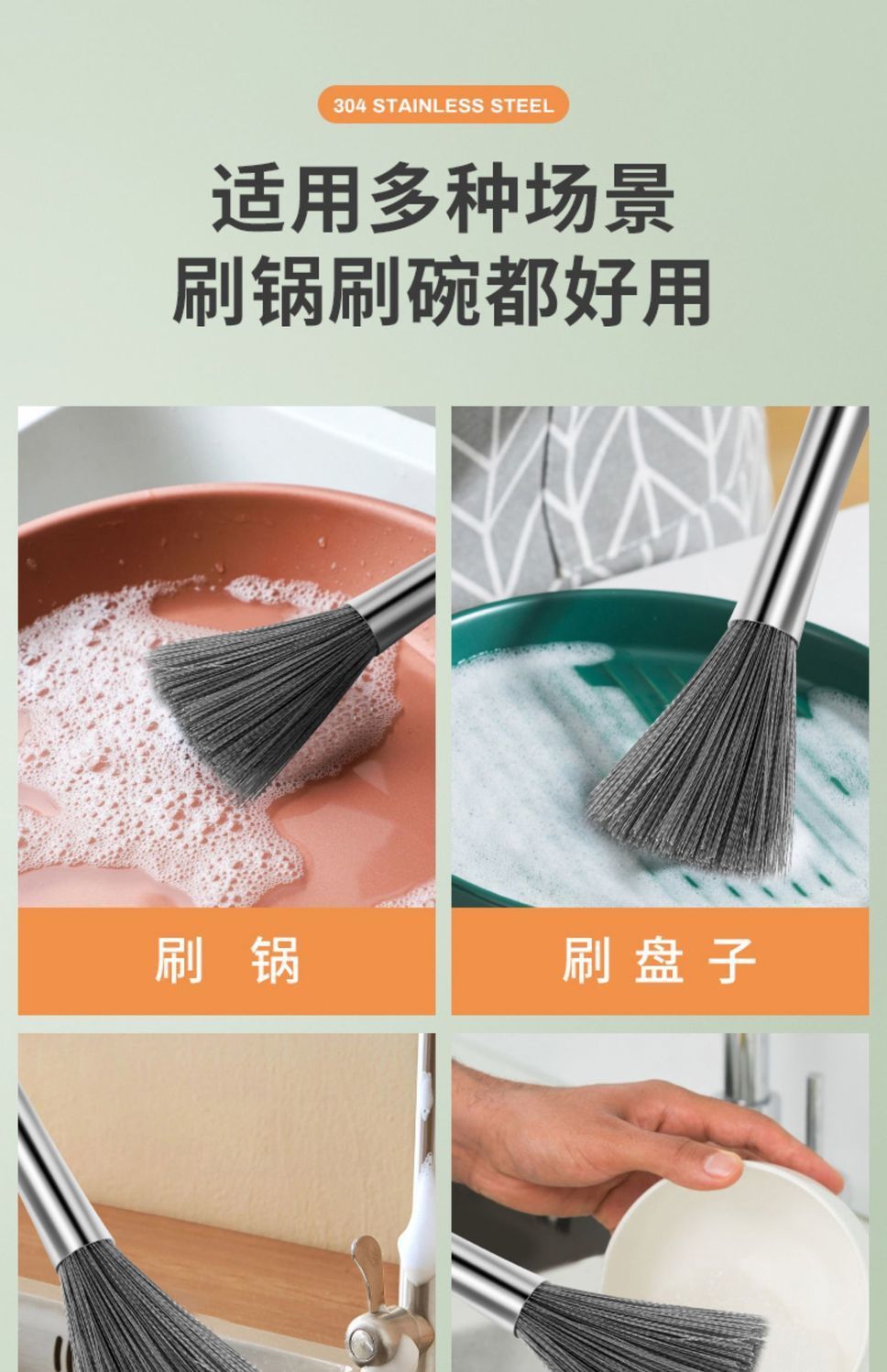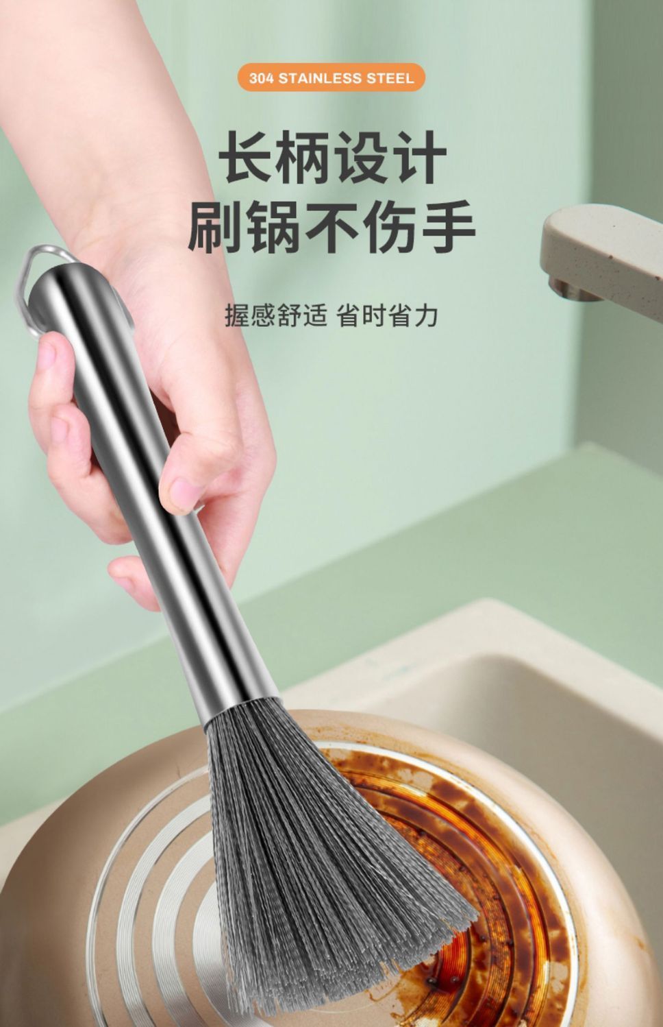 304不锈钢锅刷厨房钢丝刷长柄可挂式清洁去油污刷子洗锅刷锅神器