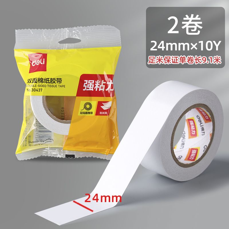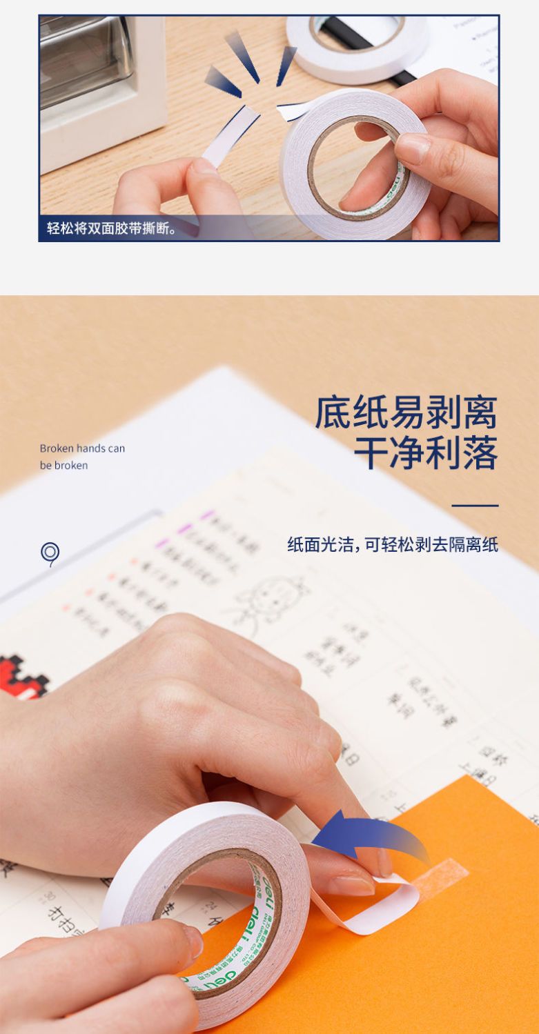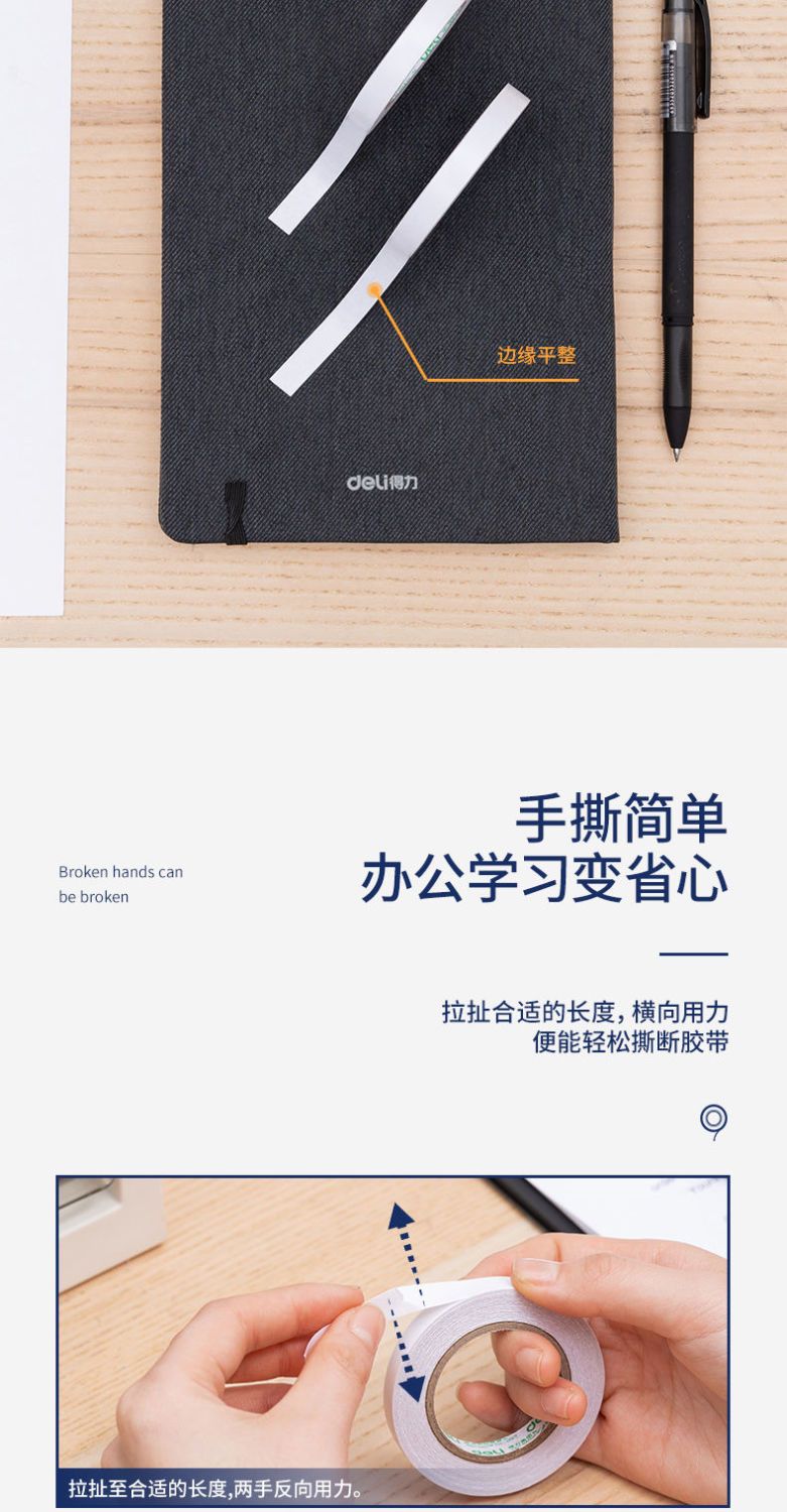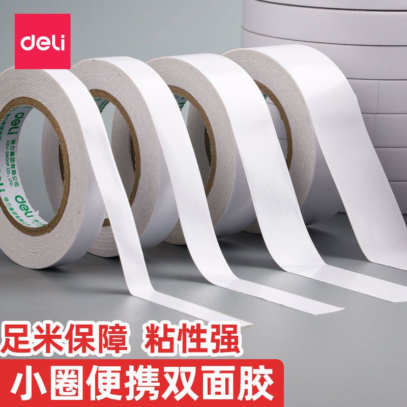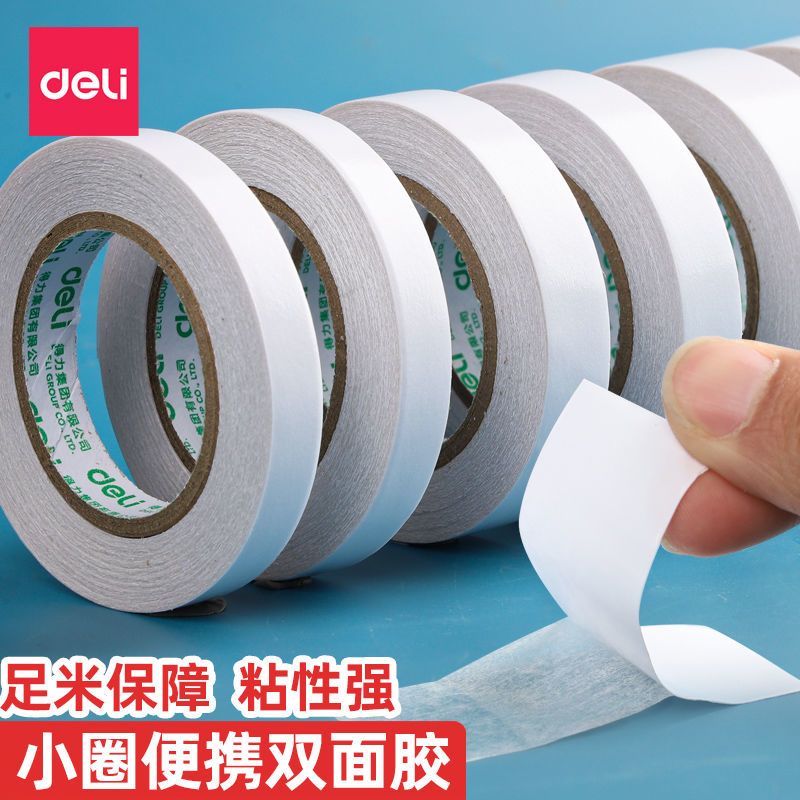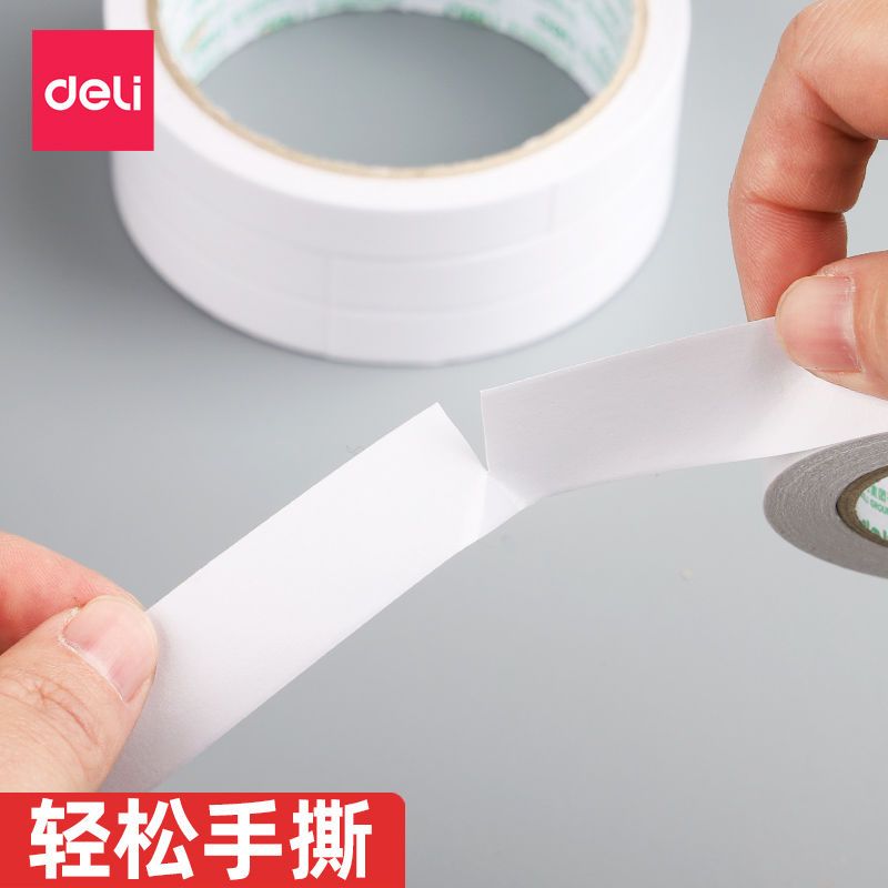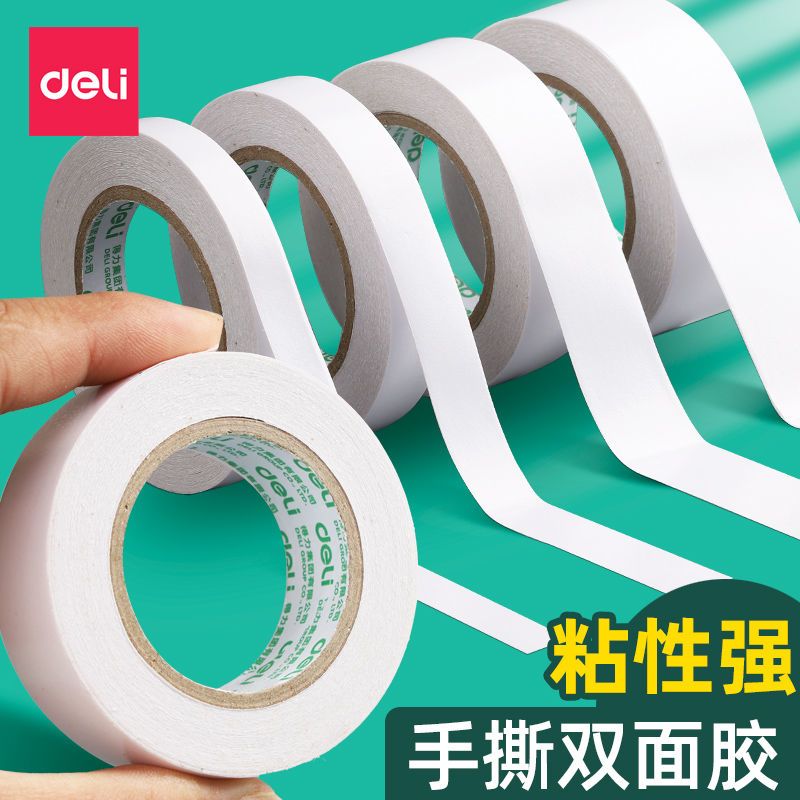 得力双面胶高粘度强力可撕式双面胶带两面粘贴学生手工专用胶贴