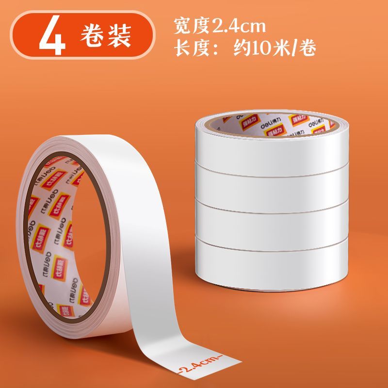 得力双面胶学生手工棉纸胶带幼儿园强力高粘透明超薄手撕纸质胶布