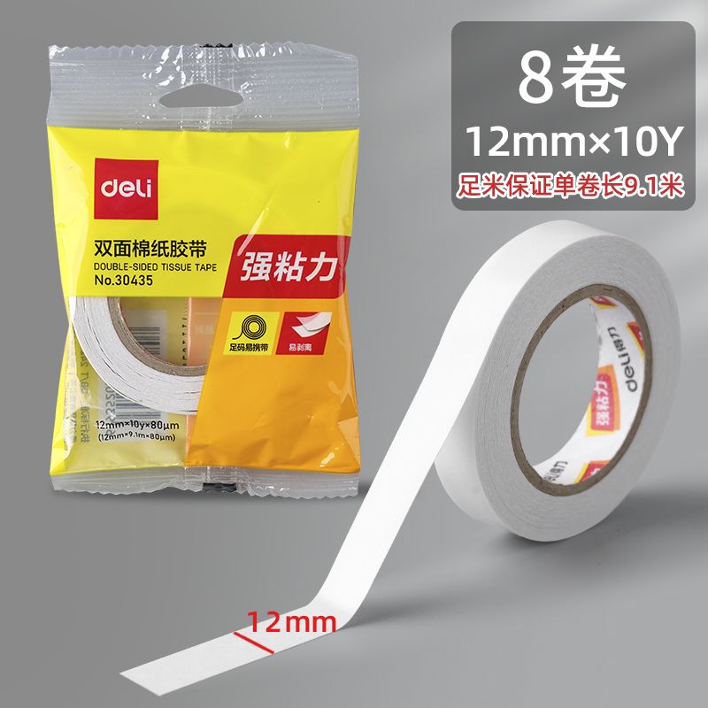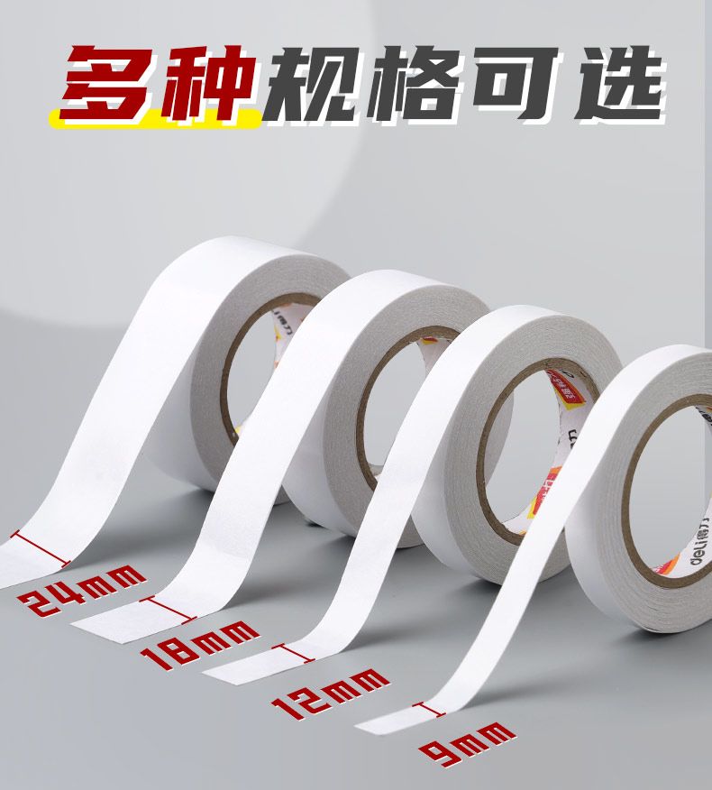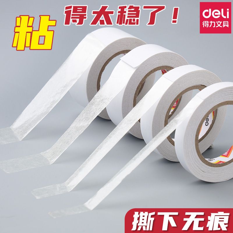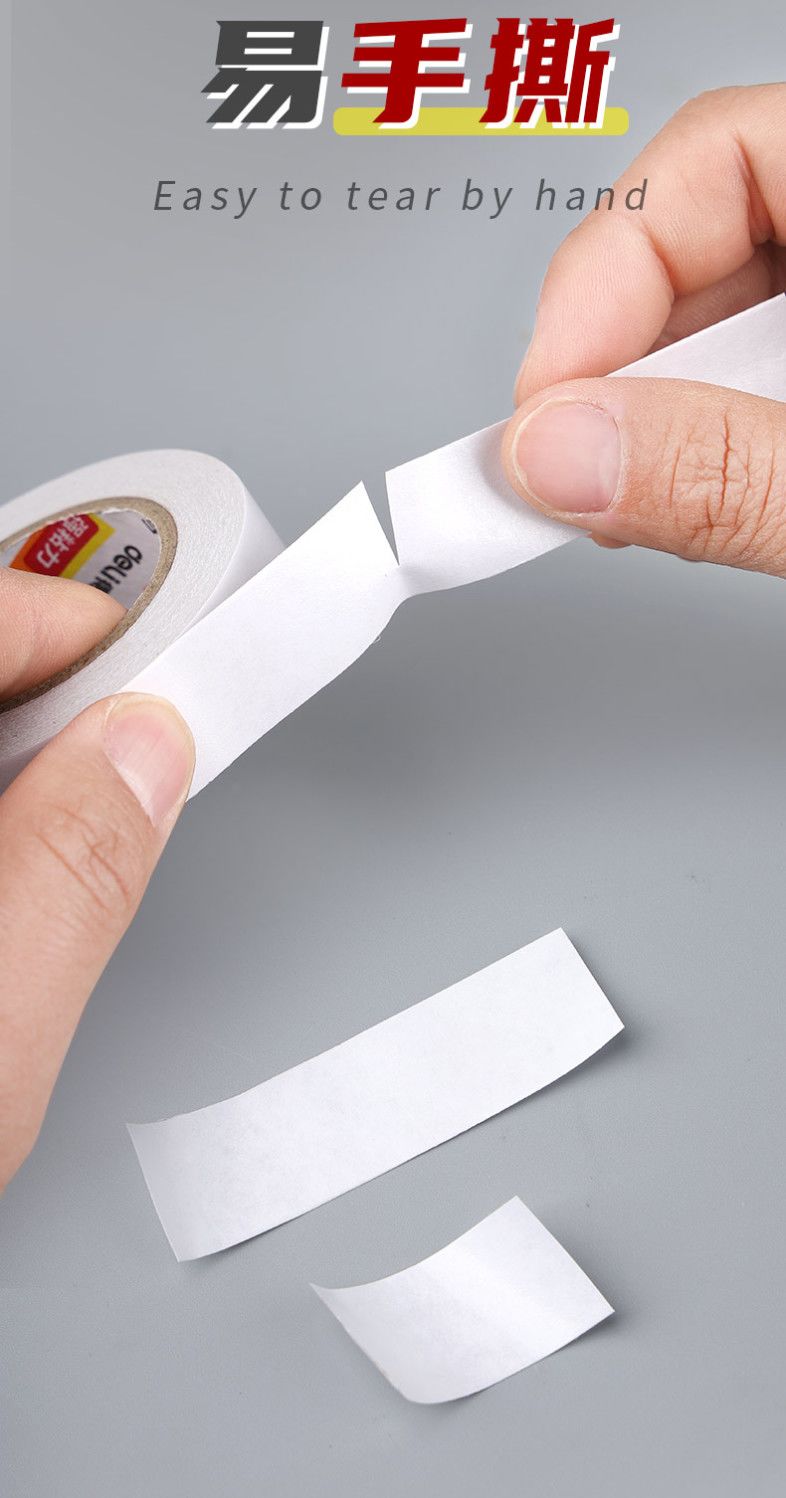 得力双面胶超强粘力学生手工专用不留痕可撕式手撕强力胶带办公用