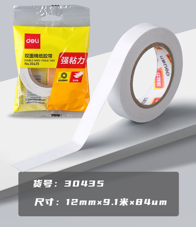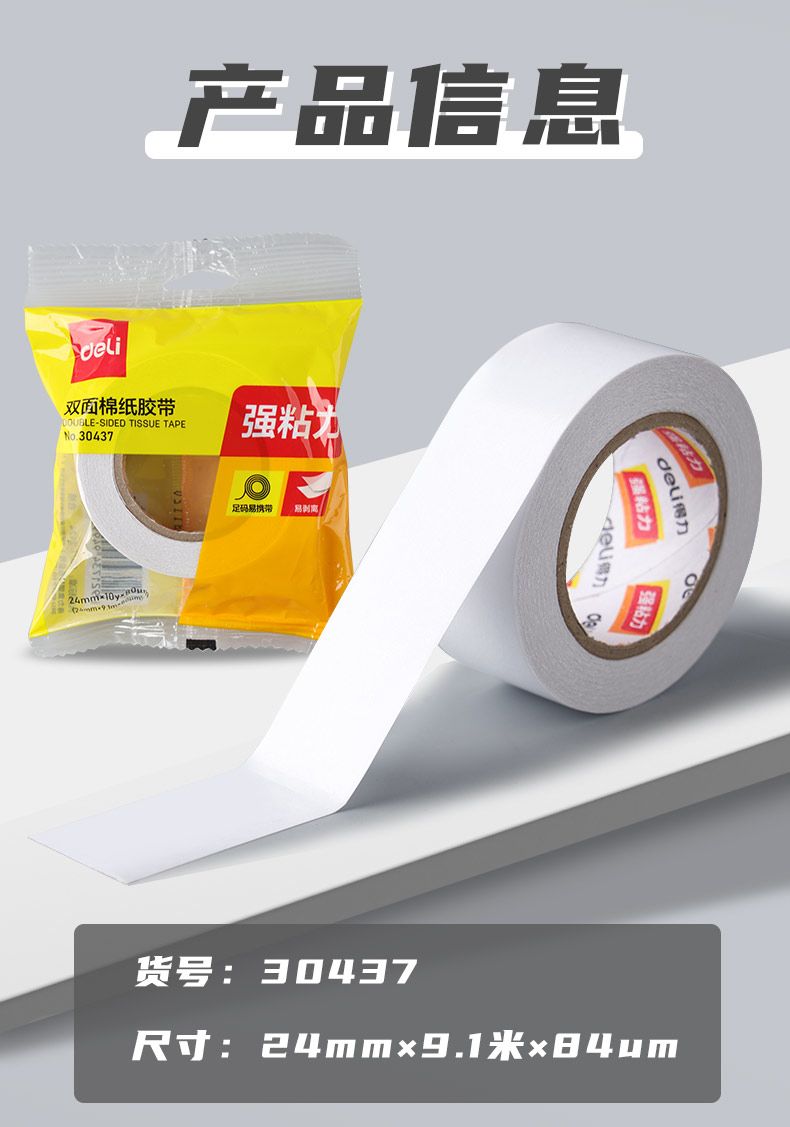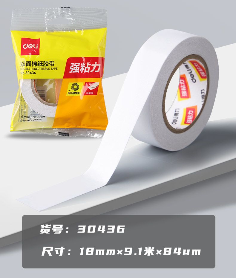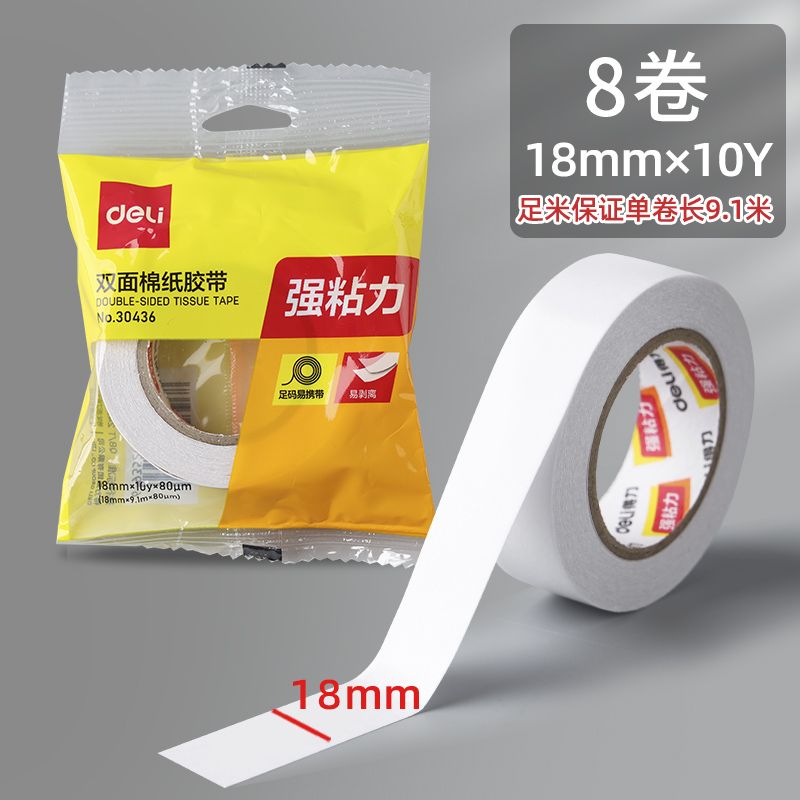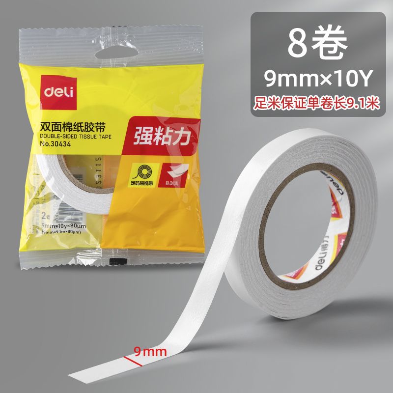 得力双面胶超强粘力学生手工专用不留痕可撕式手撕强力胶带办公用