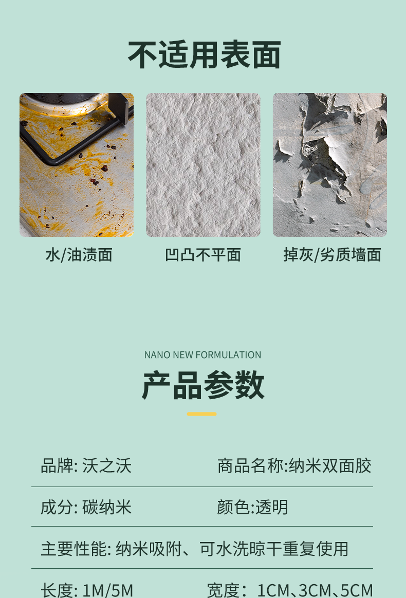沃之沃魔力纳米胶带超粘双面胶墙面固定不留痕透明万能纳米双面胶