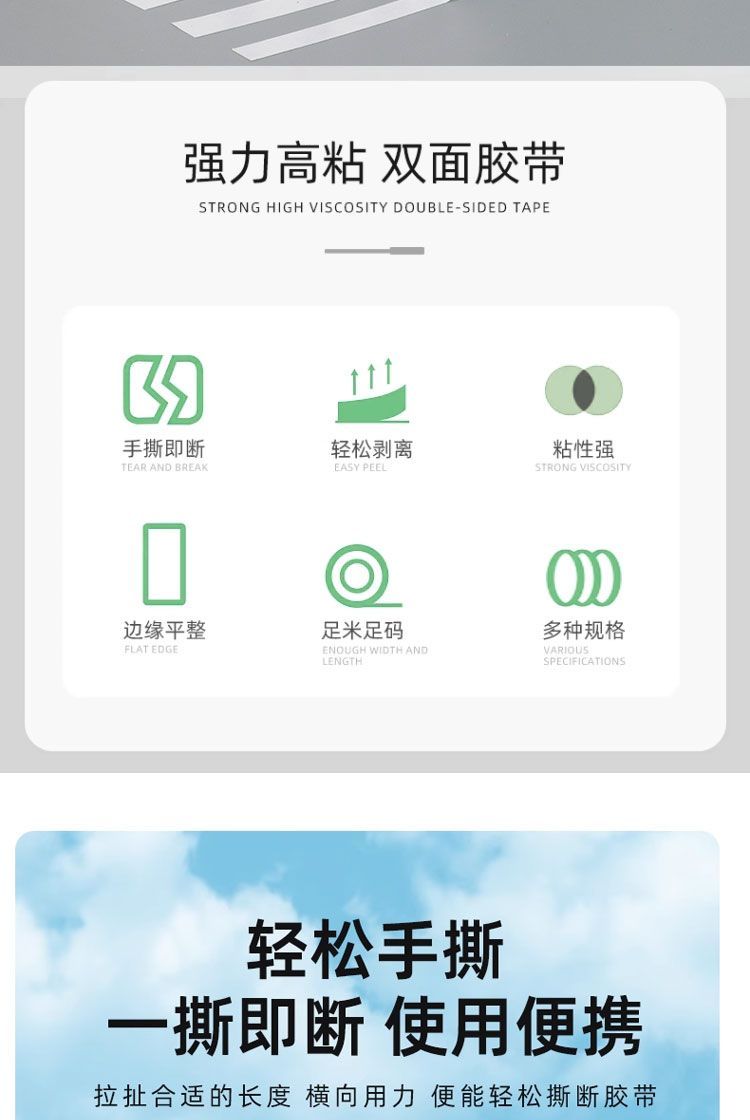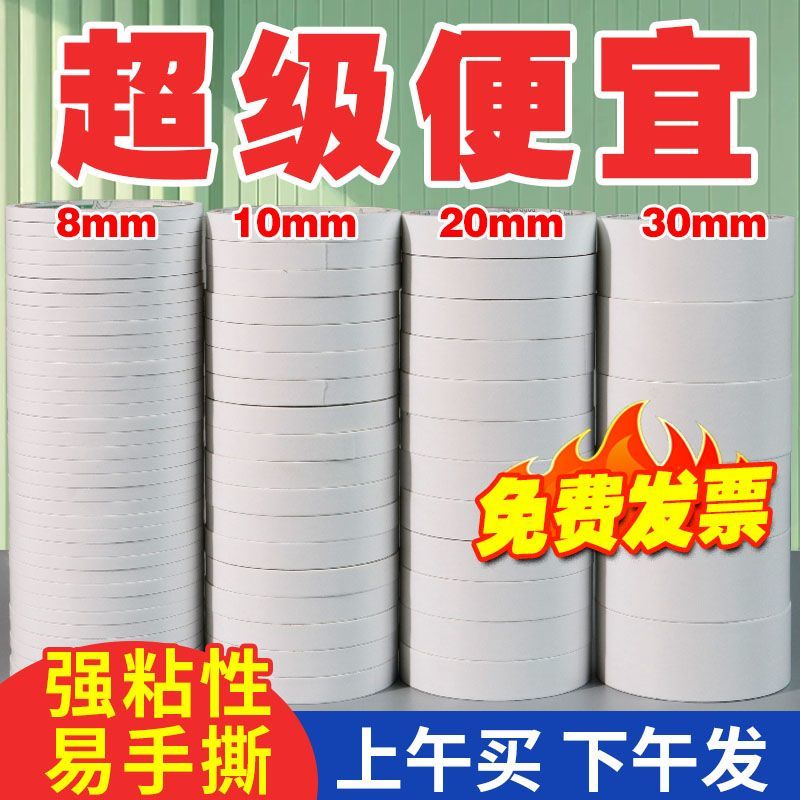 强力双面胶棉纸胶带学生手工办公透明超薄幼儿园高粘度批发胶布