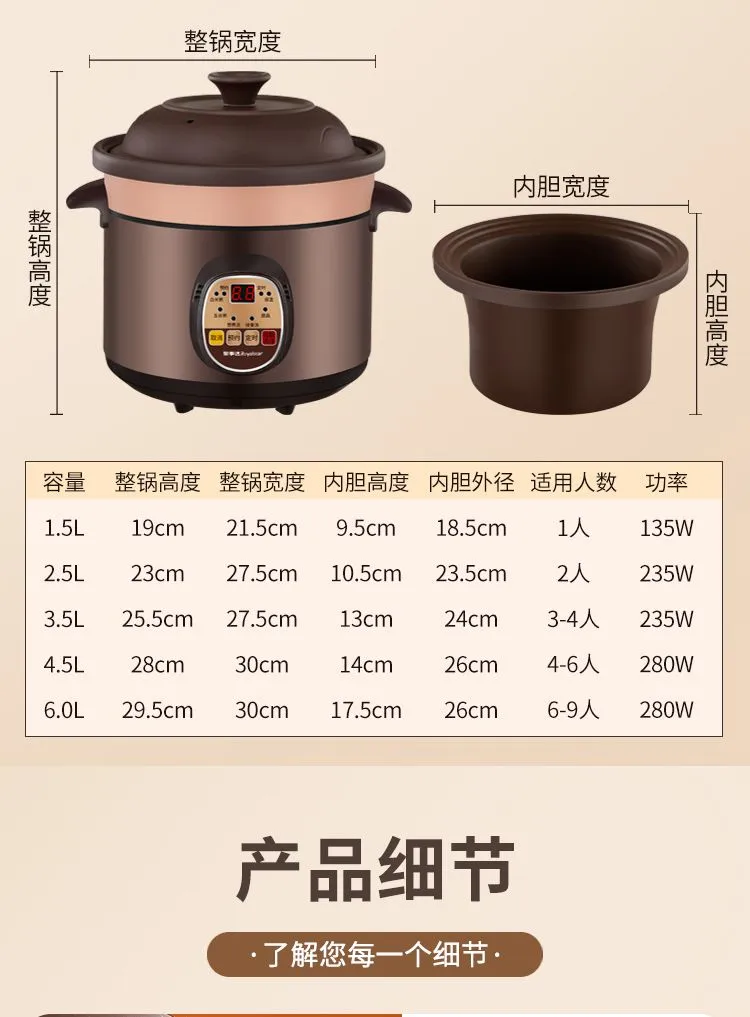 荣事达紫砂电炖锅全自动家用煲汤陶瓷电砂锅煮粥炖汤炖盅养生汤锅