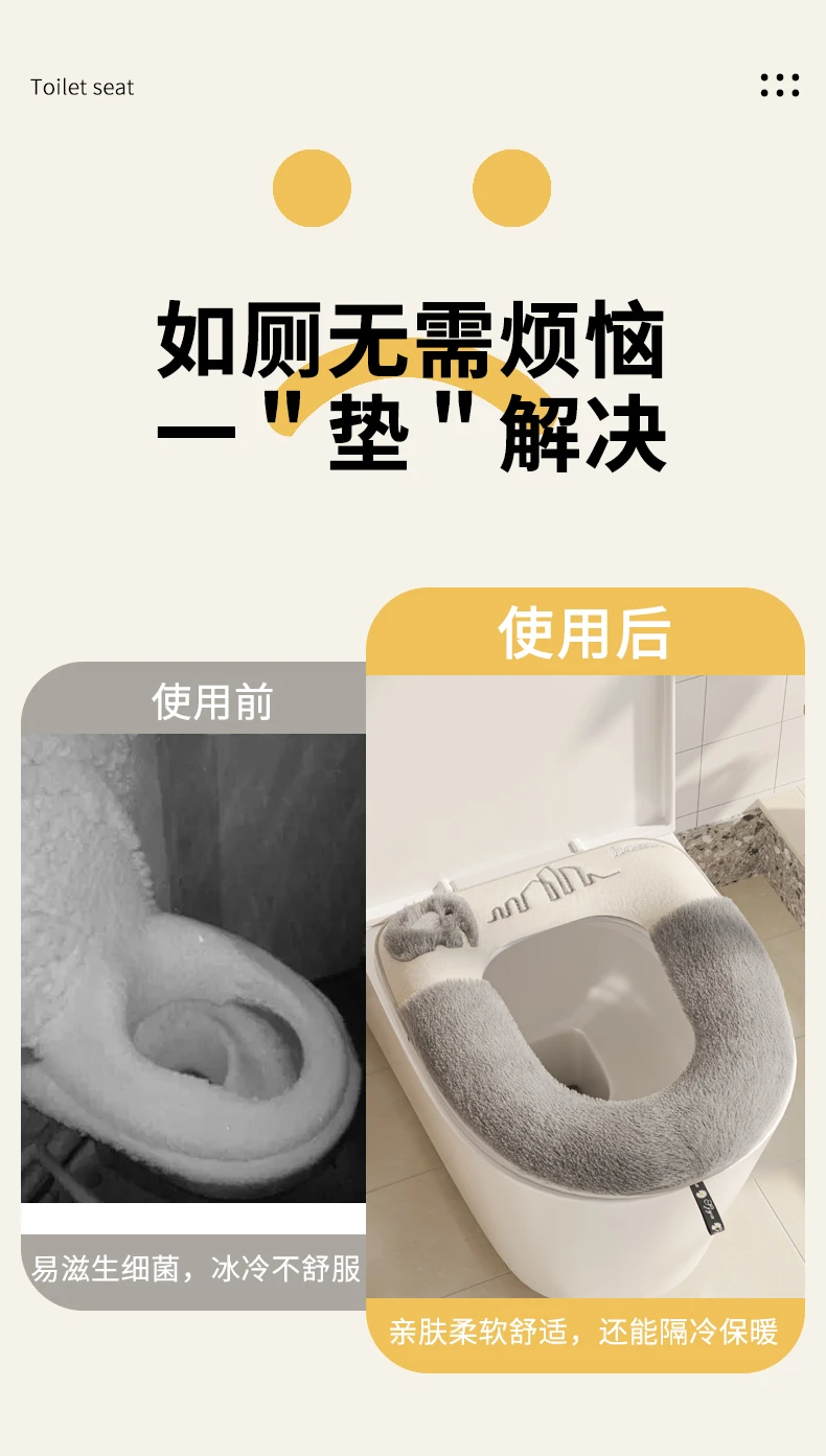 马桶坐垫家用冬季冬天粘扣款加厚坐便器套圈四季通用可爱马桶垫子