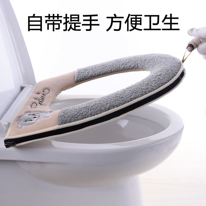 马桶坐垫家用加厚带提手坐便套加大通用坐便器垫子毛绒四季马桶垫