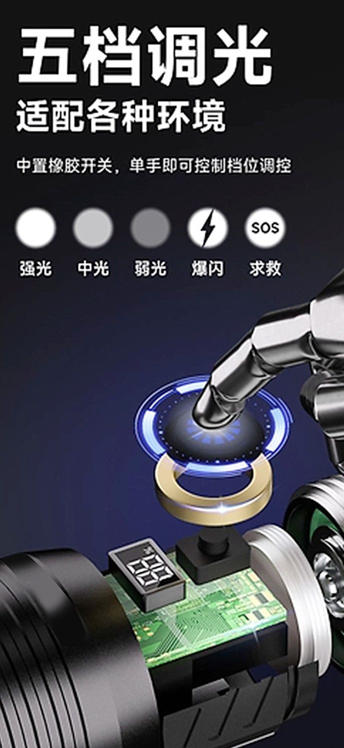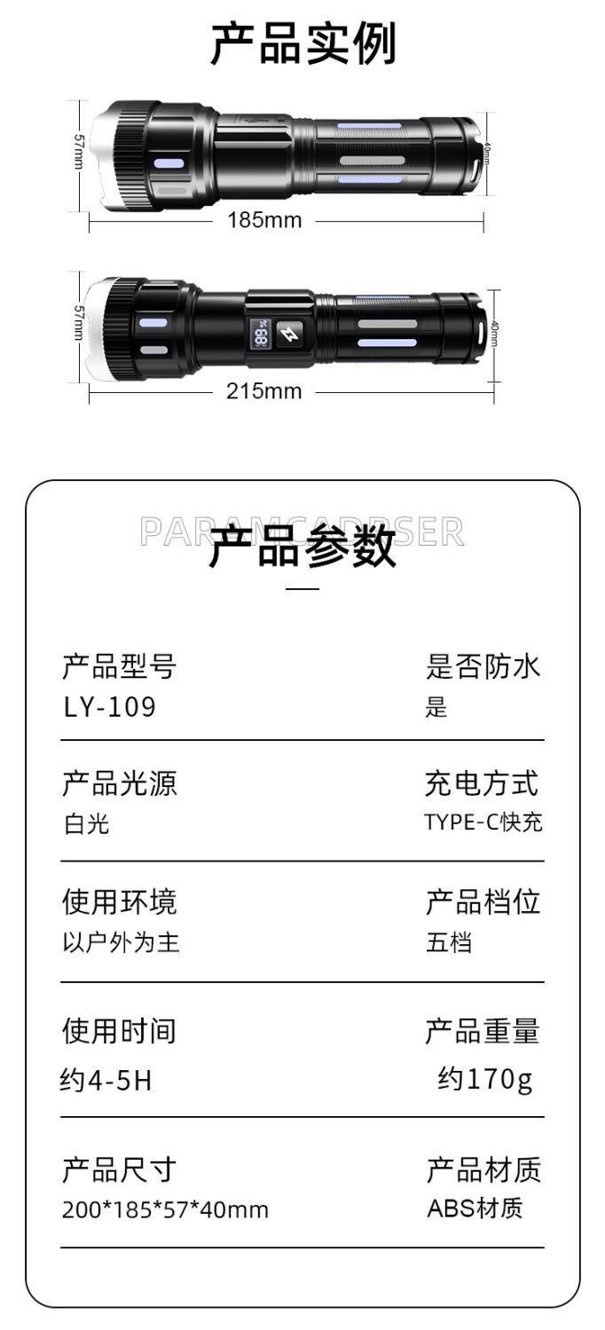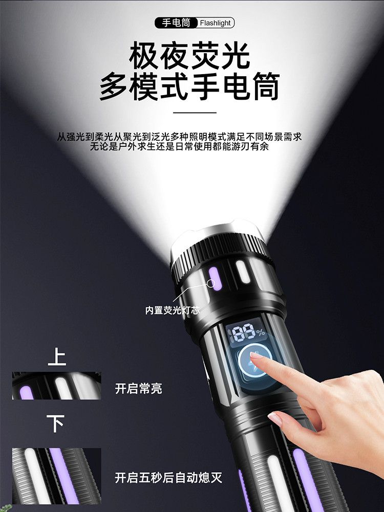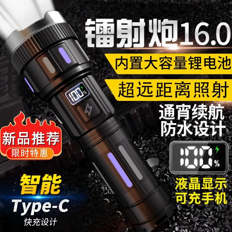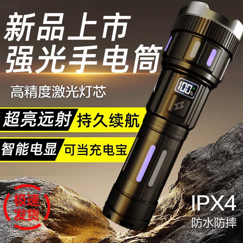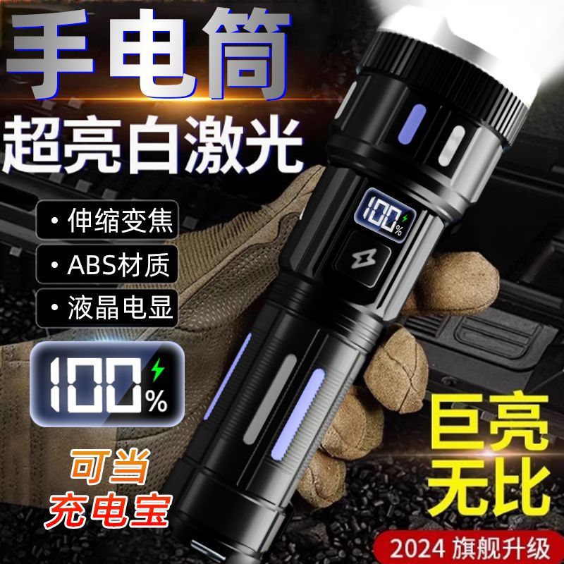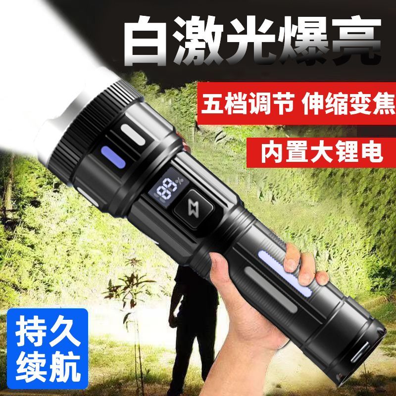 LED手电筒强光超亮可充电超长续航家用户外远射便携白激光