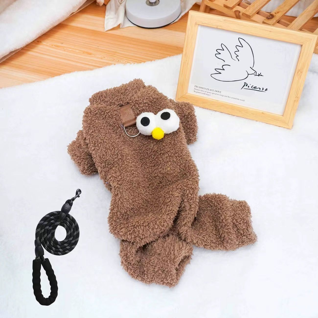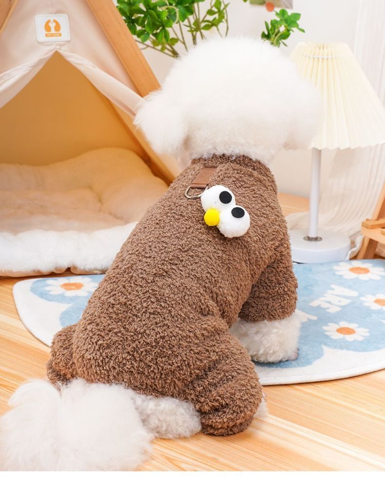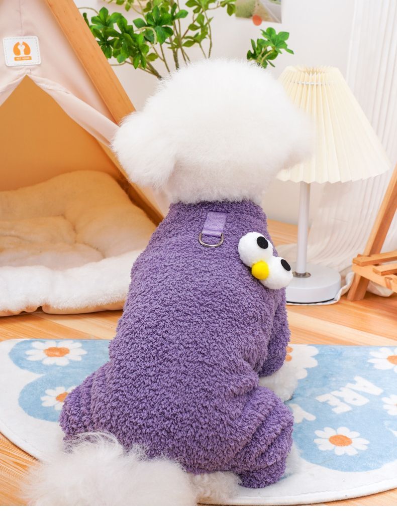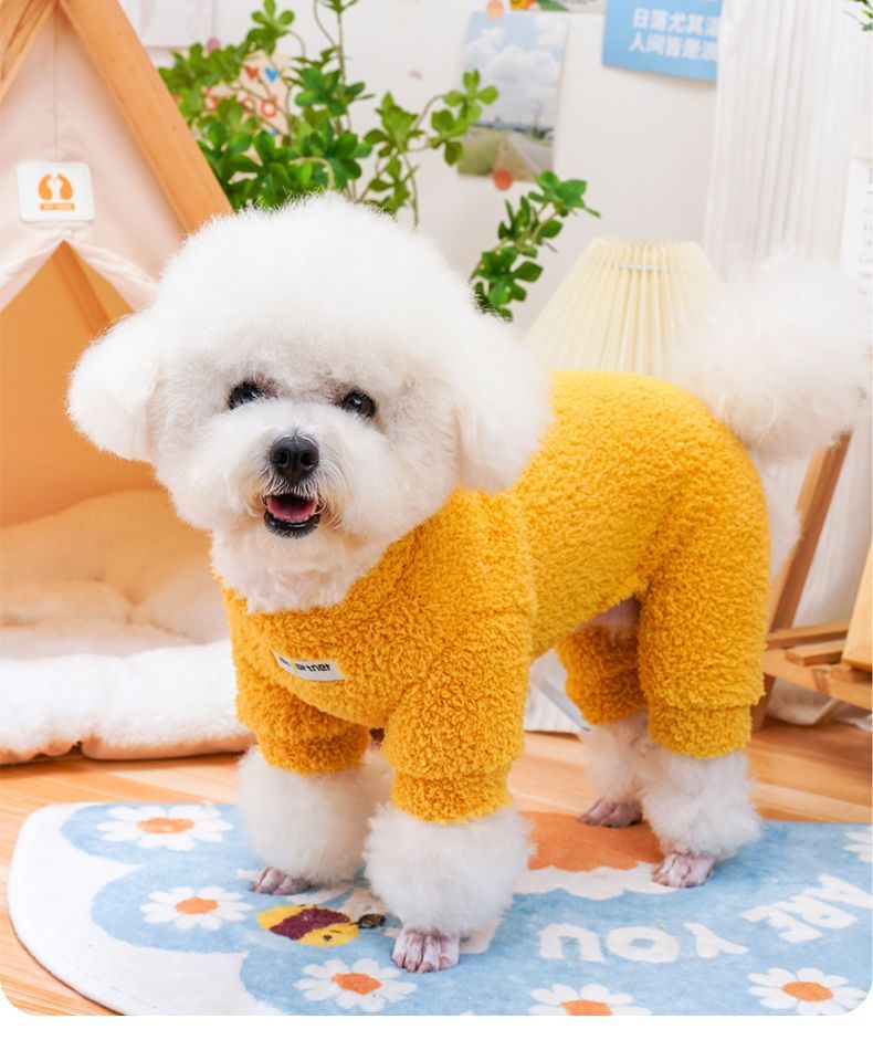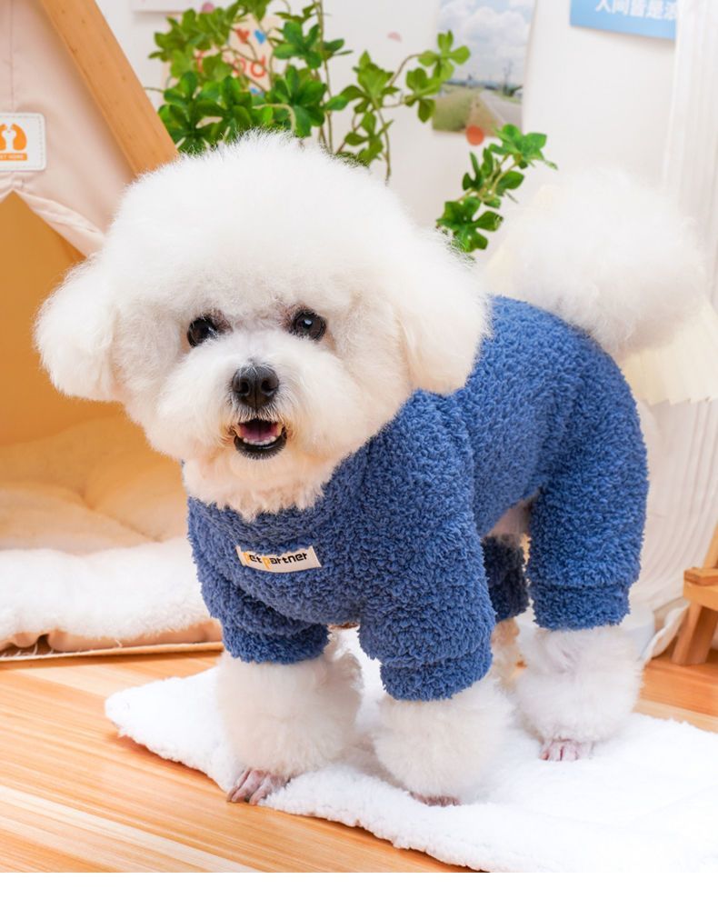 可牵引狗狗衣服秋冬款小型犬比熊泰迪雪纳瑞冬季保暖米粒绒四脚衣