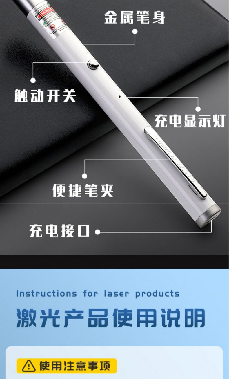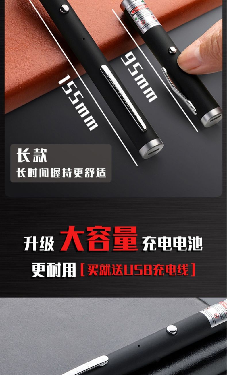 【工厂直发】激光笔红外线USB充电款手电筒镭射笔红光绿光售楼笔