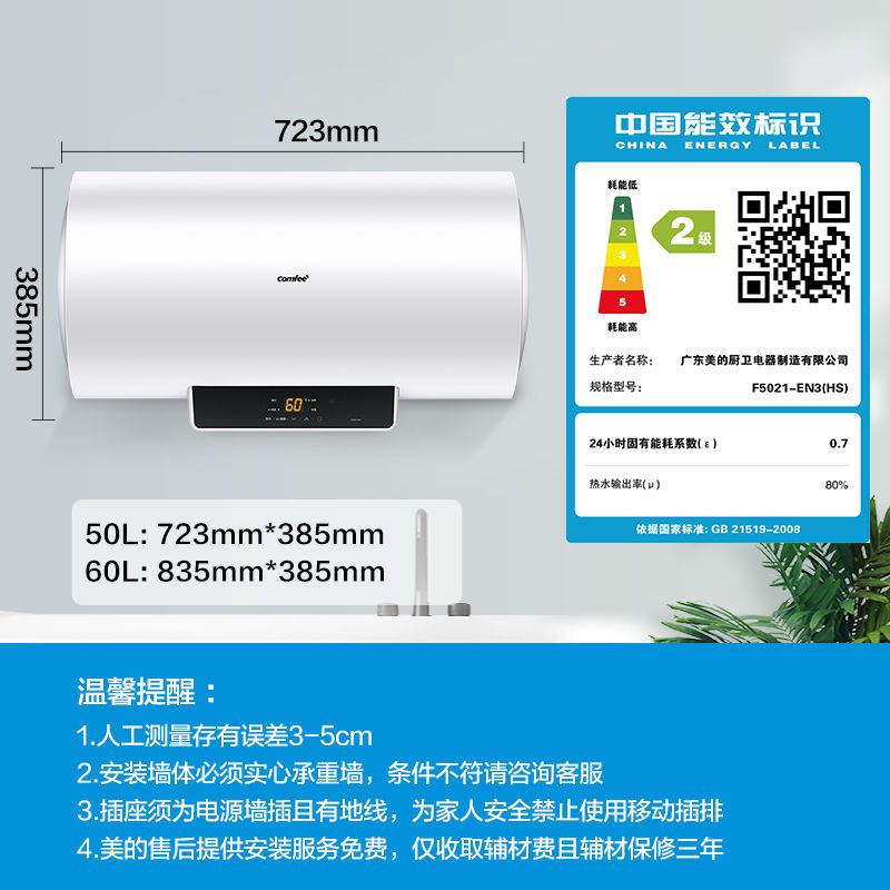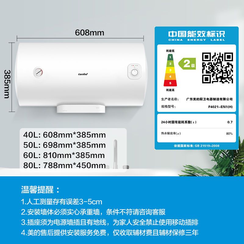 美的出品COMFEE热水器家用洗澡卫生间60升电热水器省电40升50升80