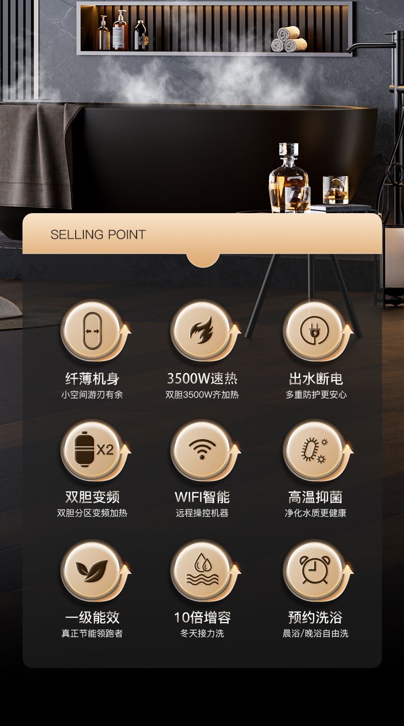 | 60 lift with wifi zhilian + water outlet power off + magnetized skin care wash(60升顶配WIFI智联+出水断电+磁化美肤洗) | USD $231.3 | 999999 piece available |