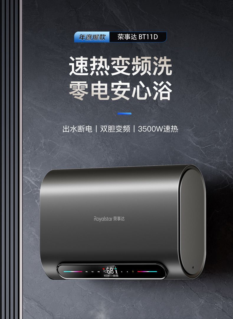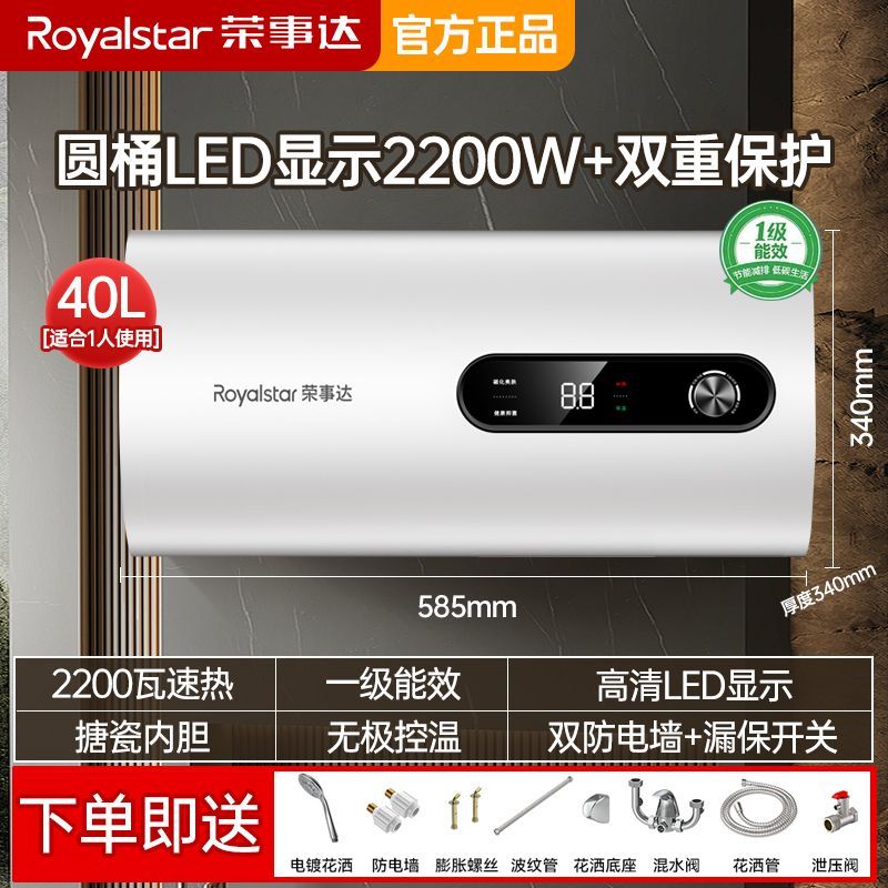 荣事达电热水器洗澡家用扁桶速热卫生间储水式40/50/60升一级能效