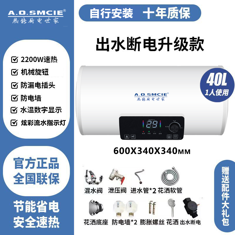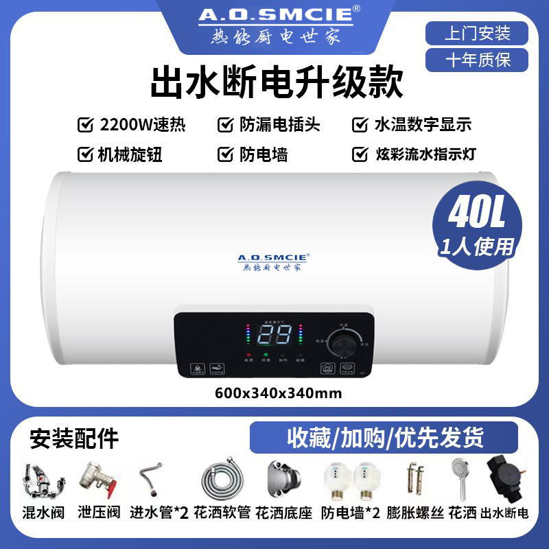 | 40 liters round barrel digital display type o water outlet power off o grade i energy efficiency(40升圆桶数显款o出水断电o一级能效) | USD $71.98 | 999999 piece available |
