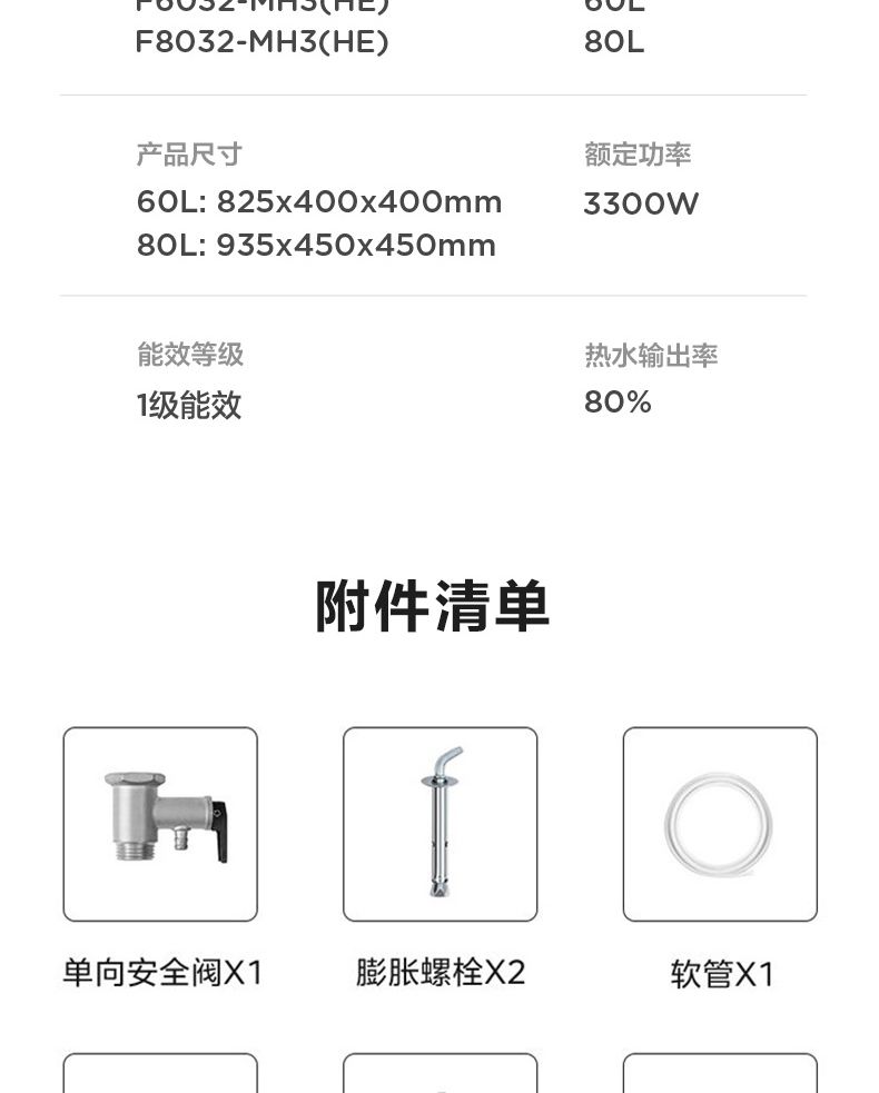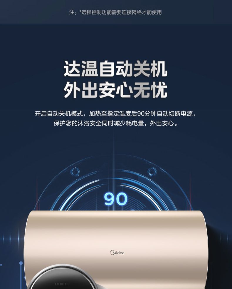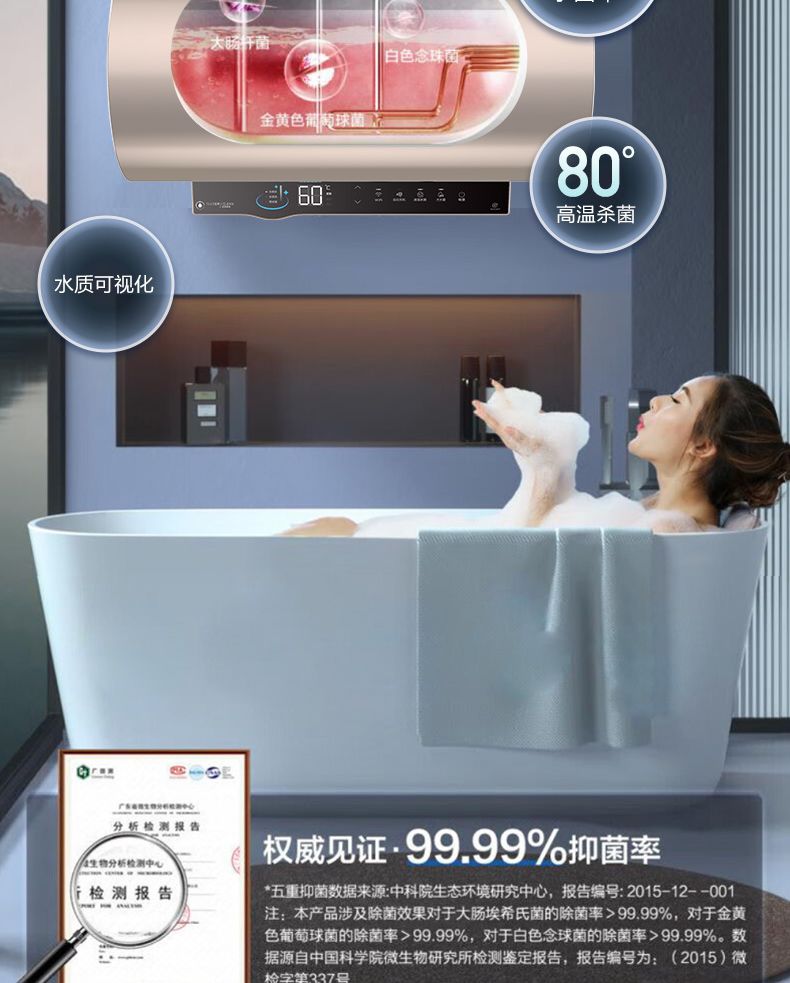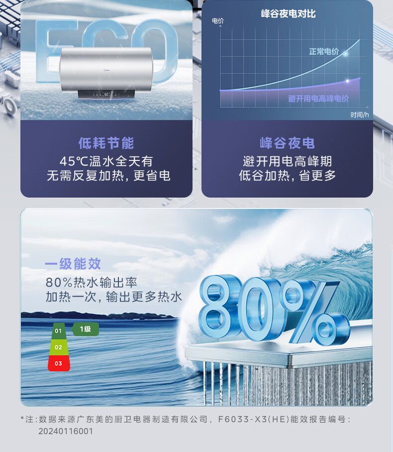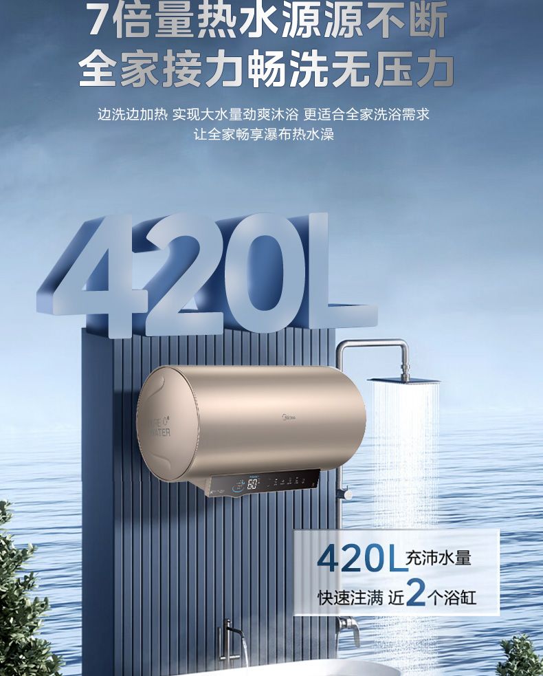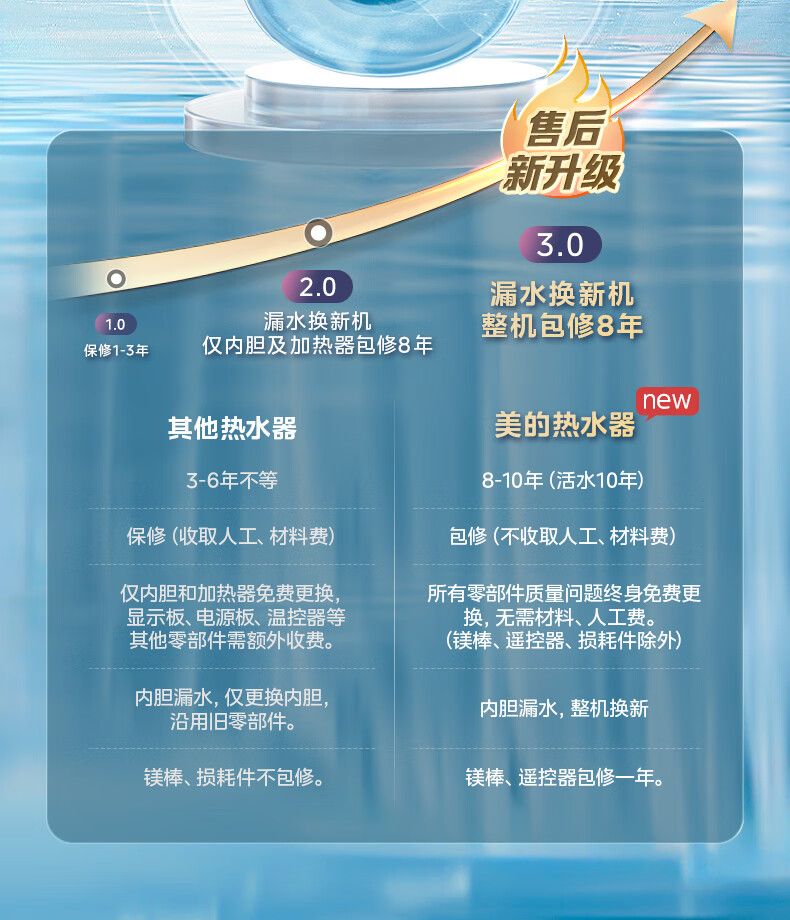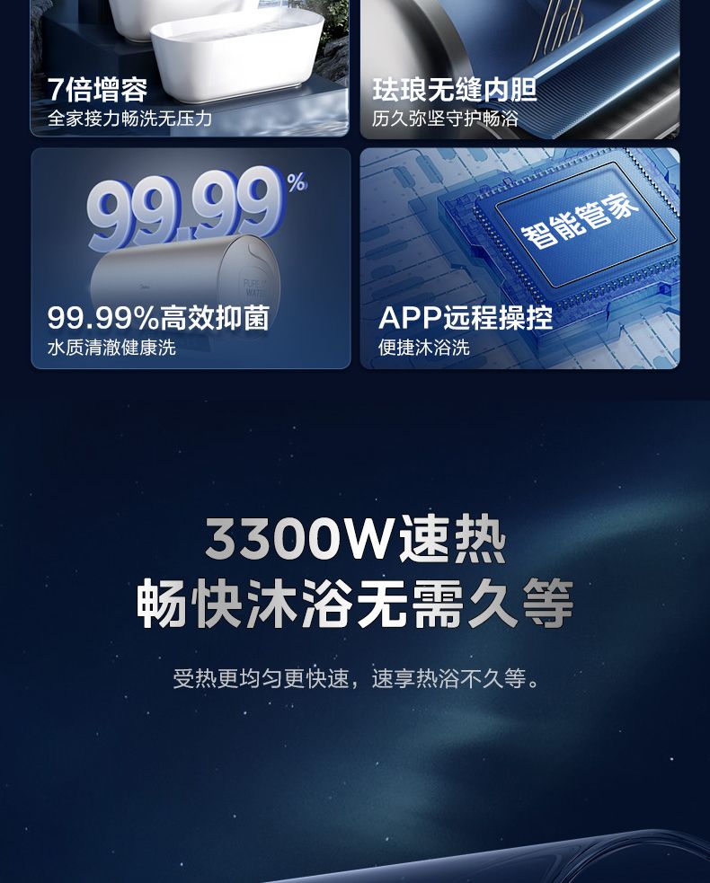 美的电热水器终身免换稀土镁棒水质可视3300W大功率60L/80L/100L