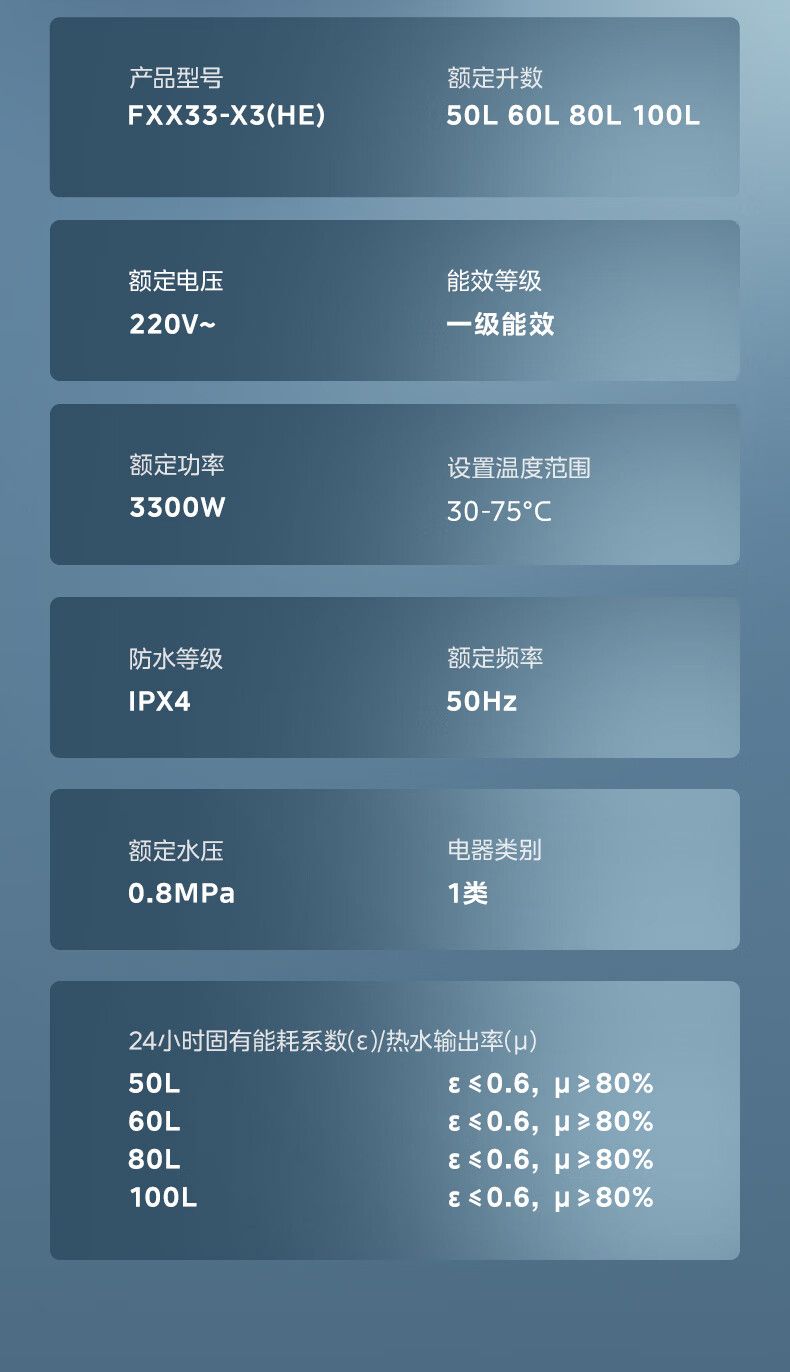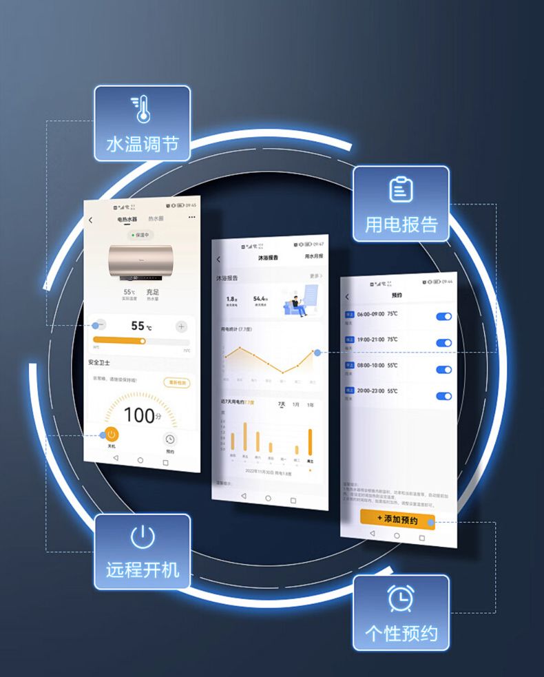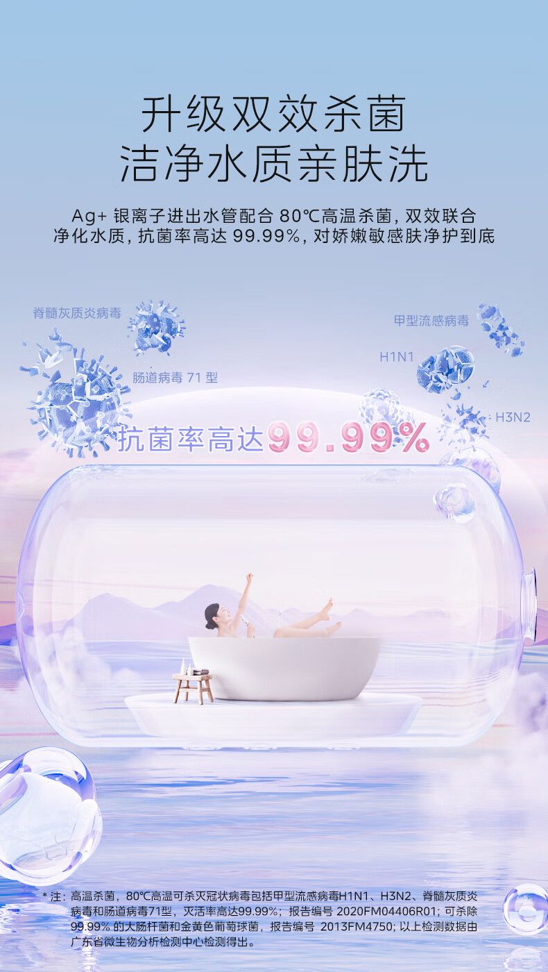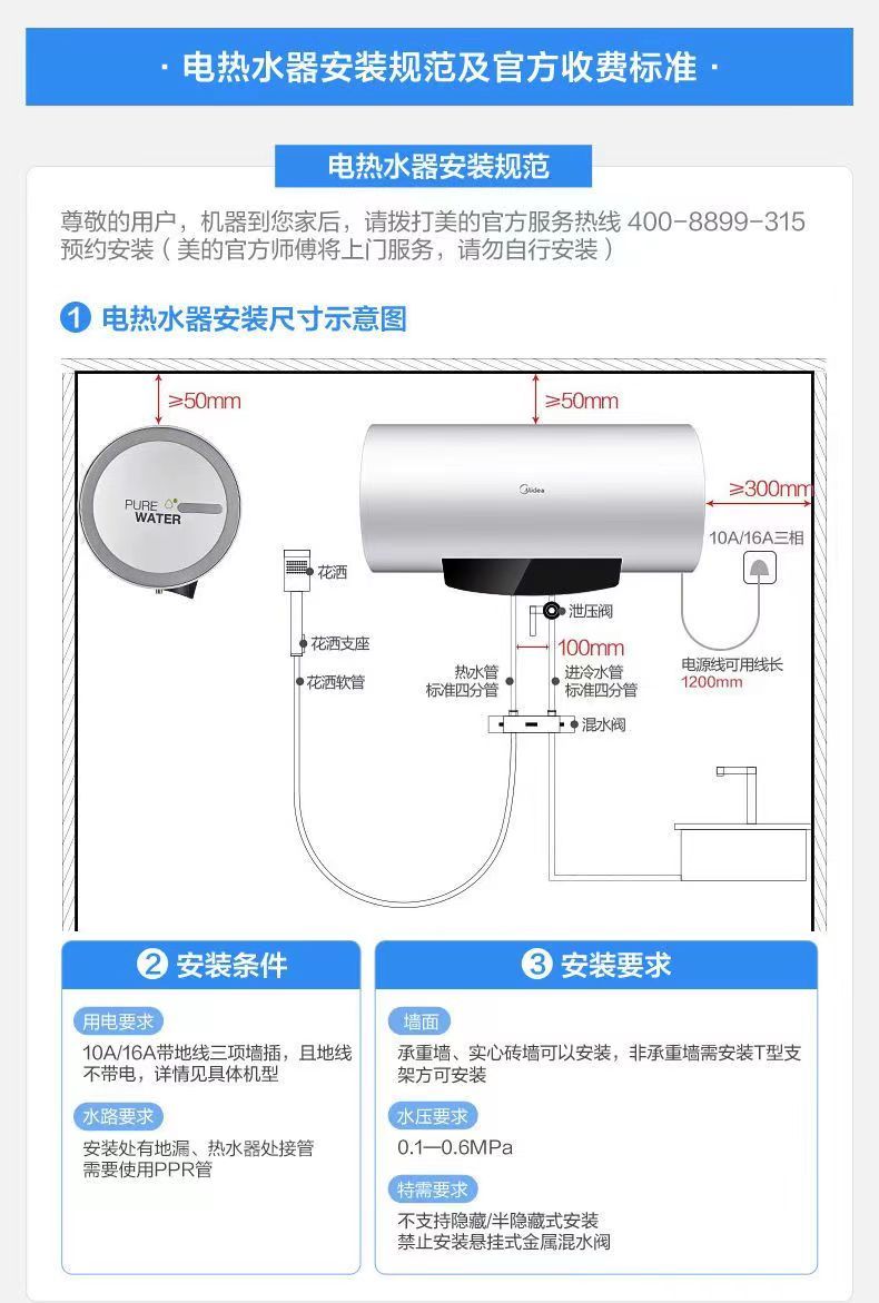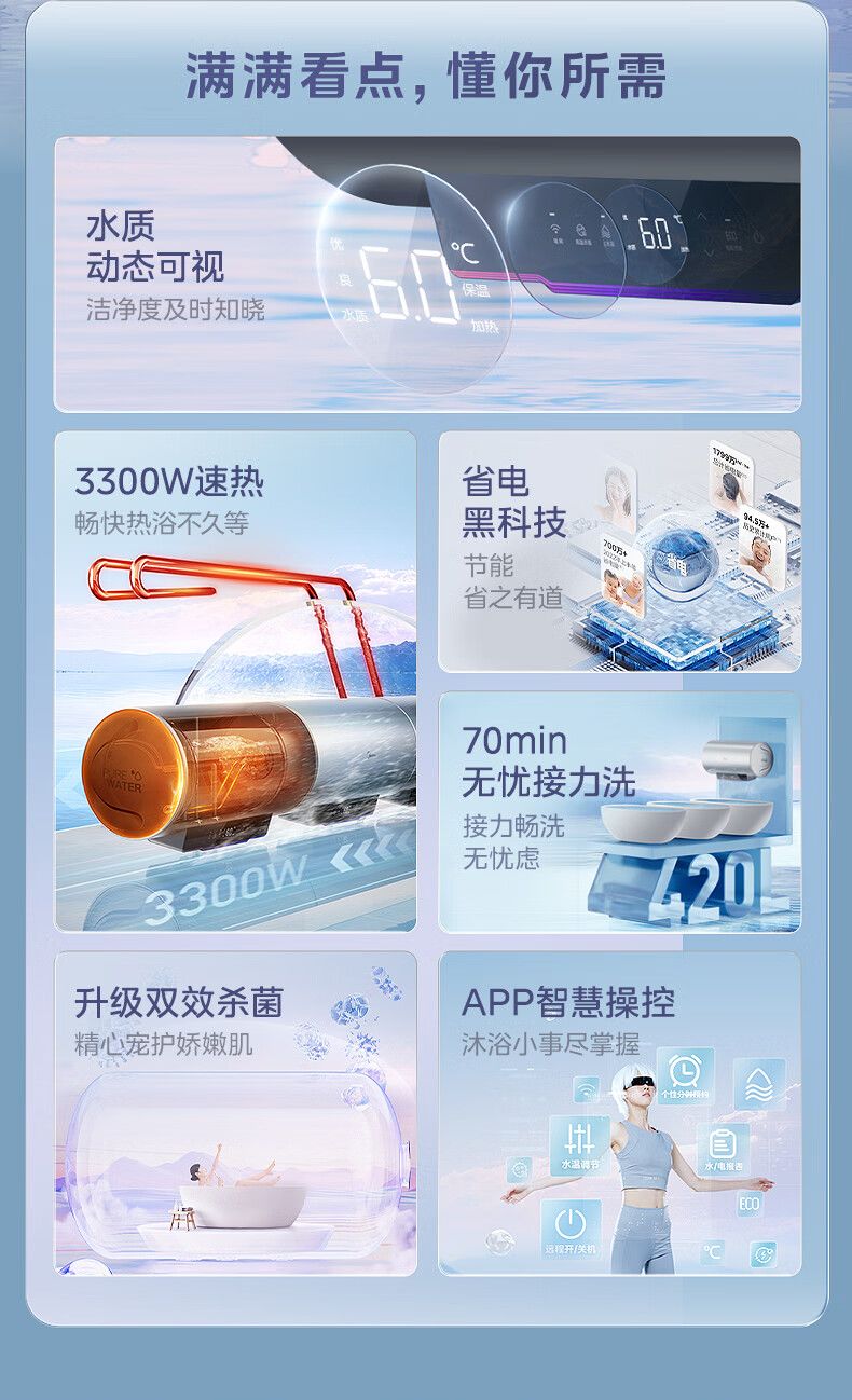 美的电热水器终身免换稀土镁棒水质可视3300W大功率60L/80L/100L