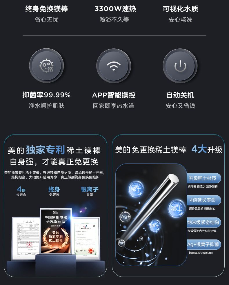 | life-free rare earth replacement magnesium bar 8-year warranty nationwide warranty(终身免换稀土镁棒 8年包修全国联保) | USD $472.4 | 999999 piece available |
