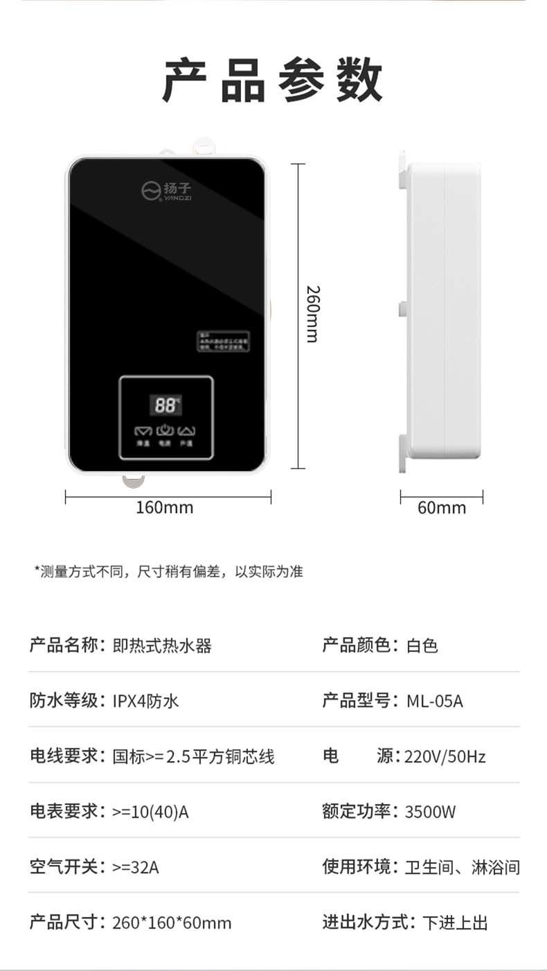 扬子即热式电热水器家用恒温速热洗澡神器出租房理发店小型过水热