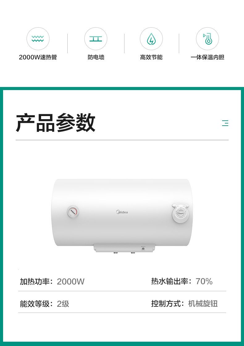| midea 60 liters energy saving lengthened anti-power wall-white(美的60升节能加长防电墙-白色款) | USD $117.96 | 999999 piece available |