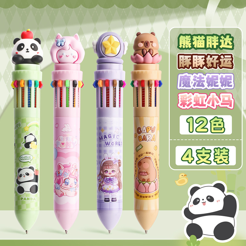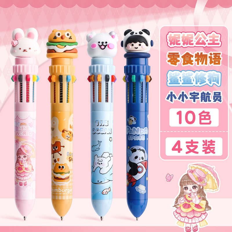 多功能按动多色合一圆珠笔小学生卡通做笔记标记用手账彩色中性笔