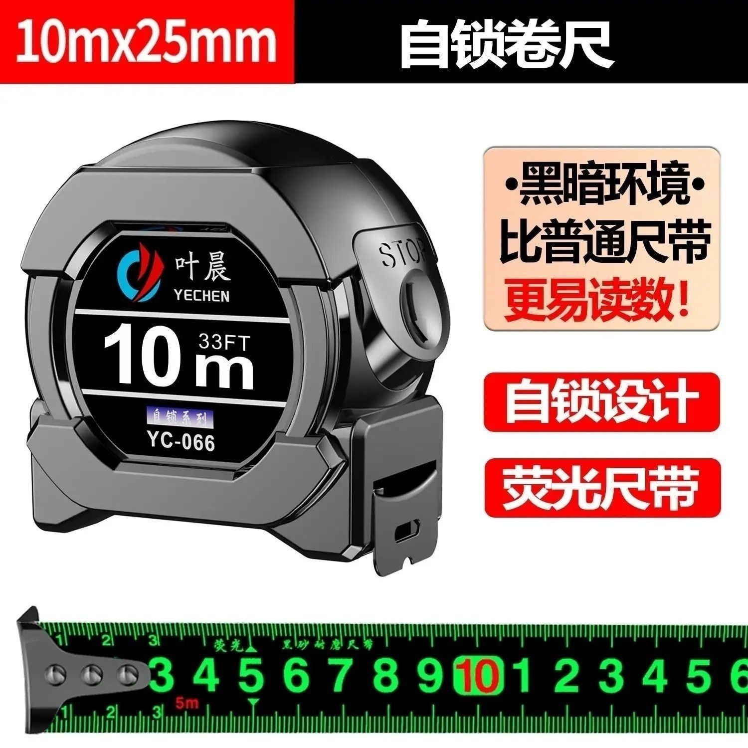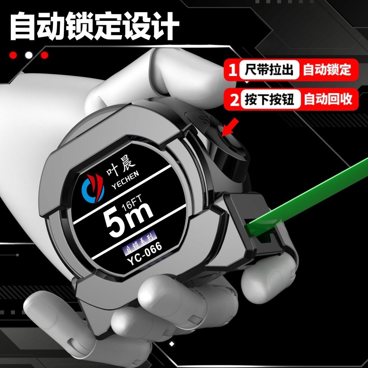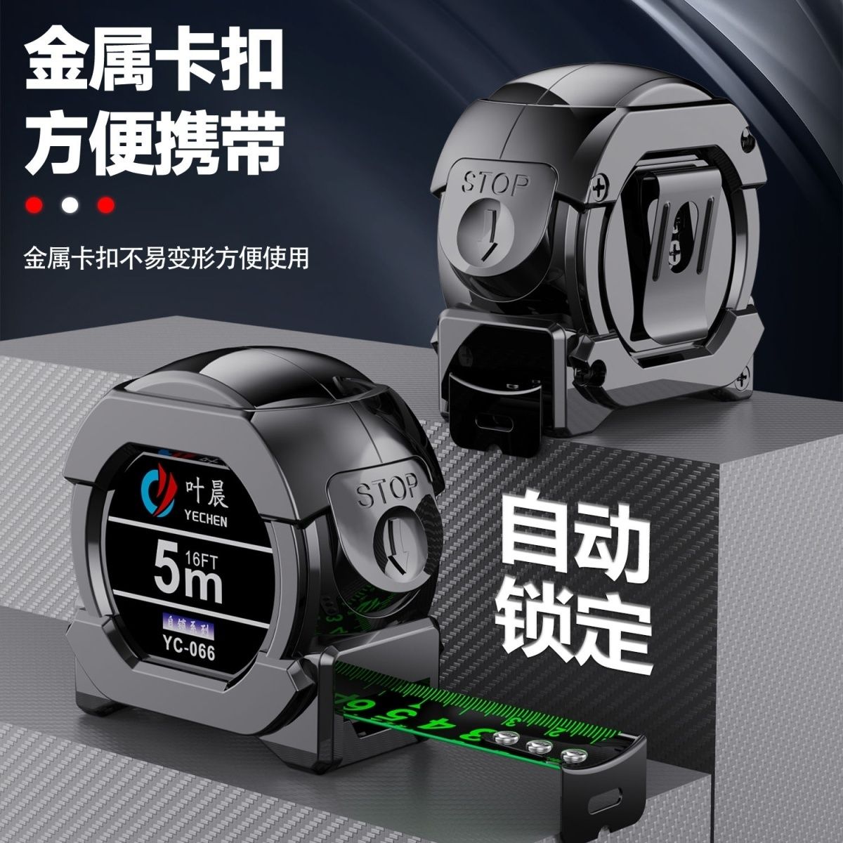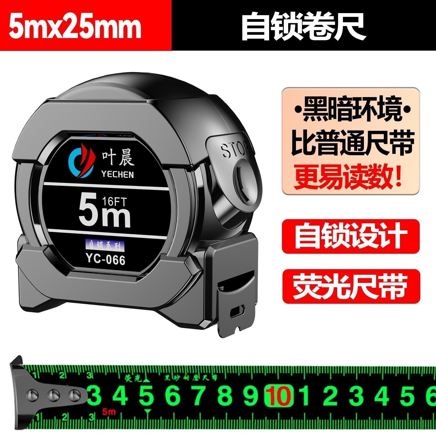 黑科技自动锁定荧光尺带高档卷尺5米7.5米10米加厚耐磨高精度盒尺