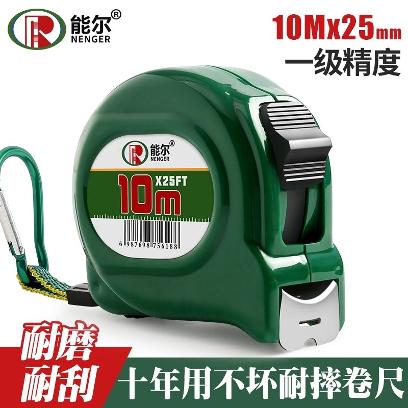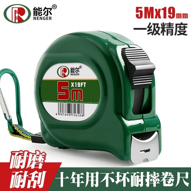 能尔高档苹果绿卷尺5米加宽7.5米10米加厚耐磨不锈钢尺米尺高精度